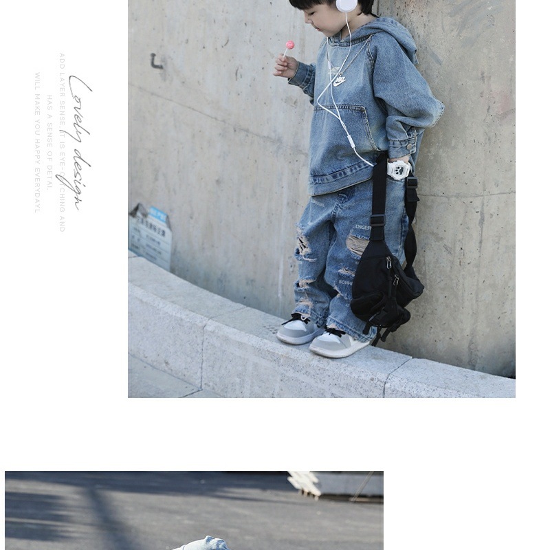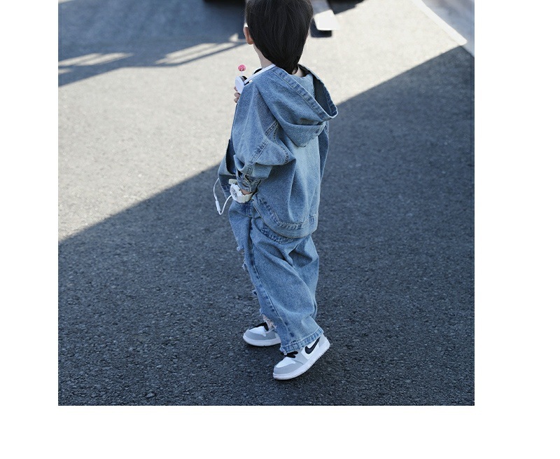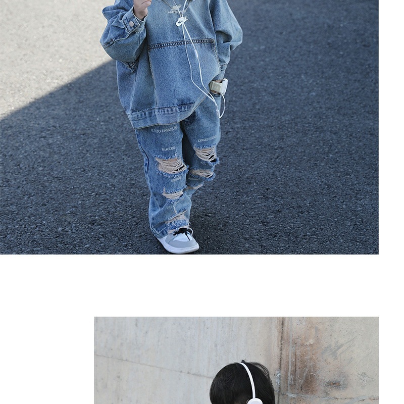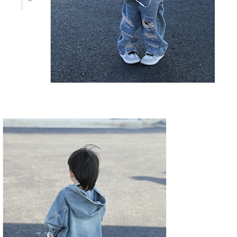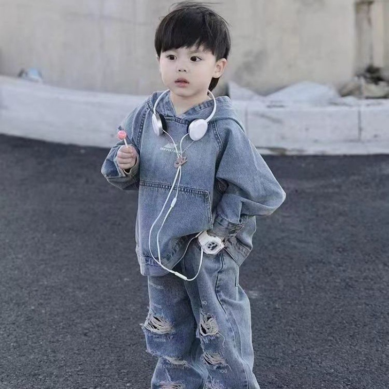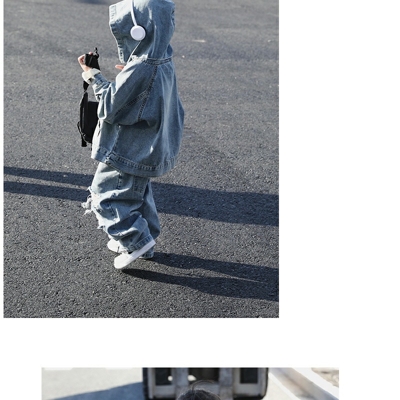 패션 튀김 거리 봄 새로운 성격 찢어진 청바지 2024 조수 시원한 소년 스트레이트 바지 어린이 슈퍼 멋진 바지스토어 가기