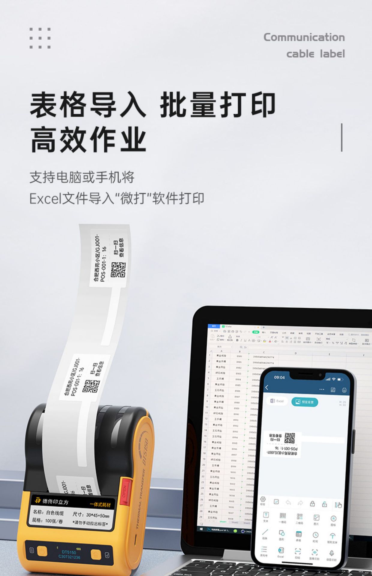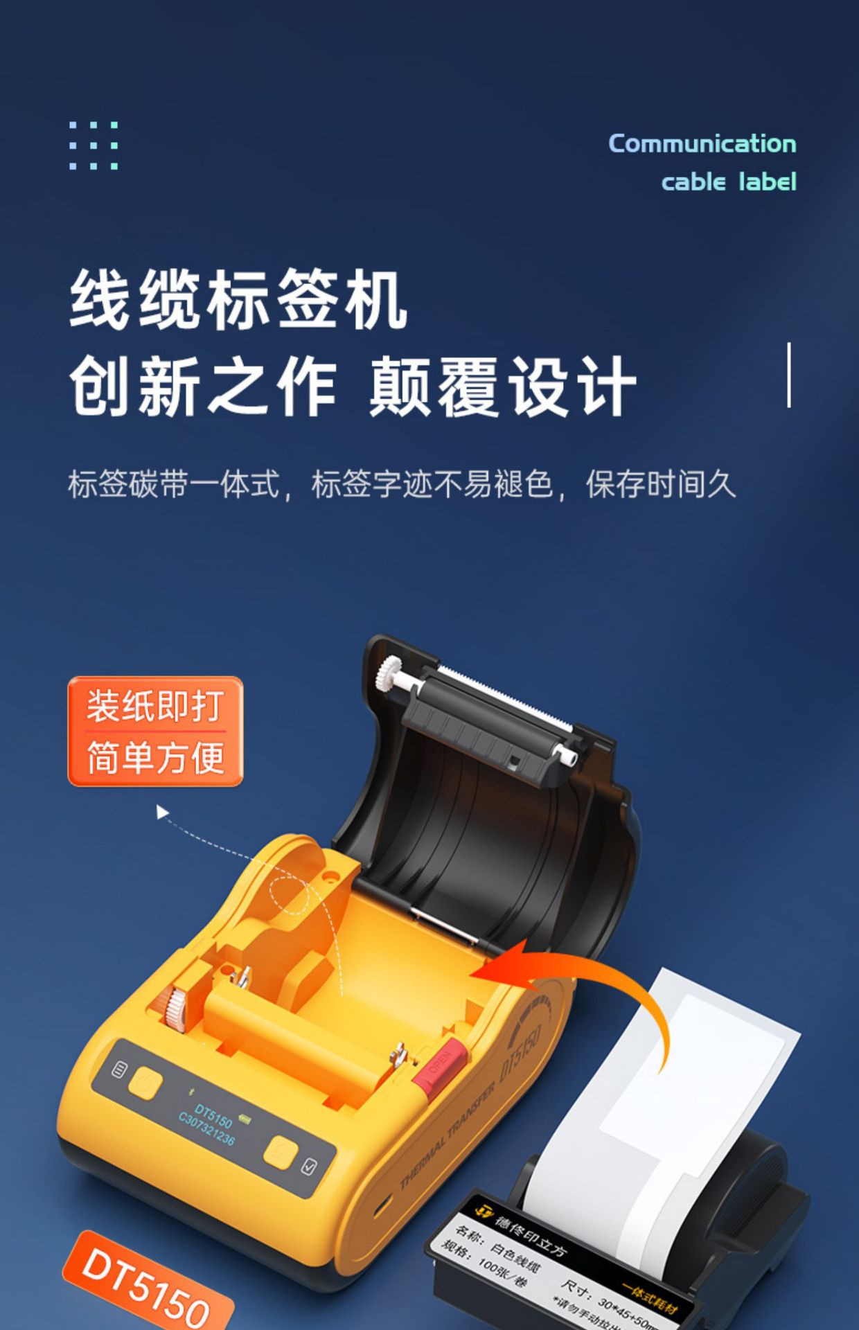 DT5150 열 전송 통신 기계 룸 케이블 라벨 프린터 휴대용 작은 휴대용 전원 식별 마킹 기계