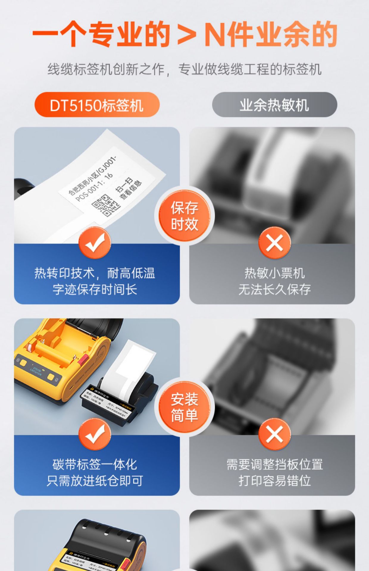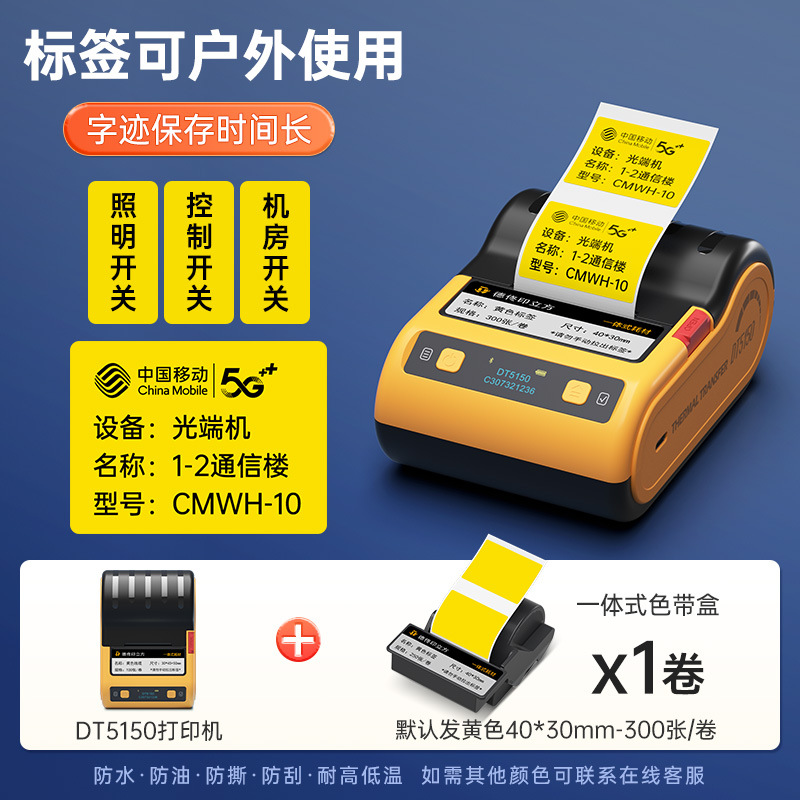 • DT5150(영어 버전) + 무료 노란색 이중 행 케이블 라벨 1롤, 총 270개