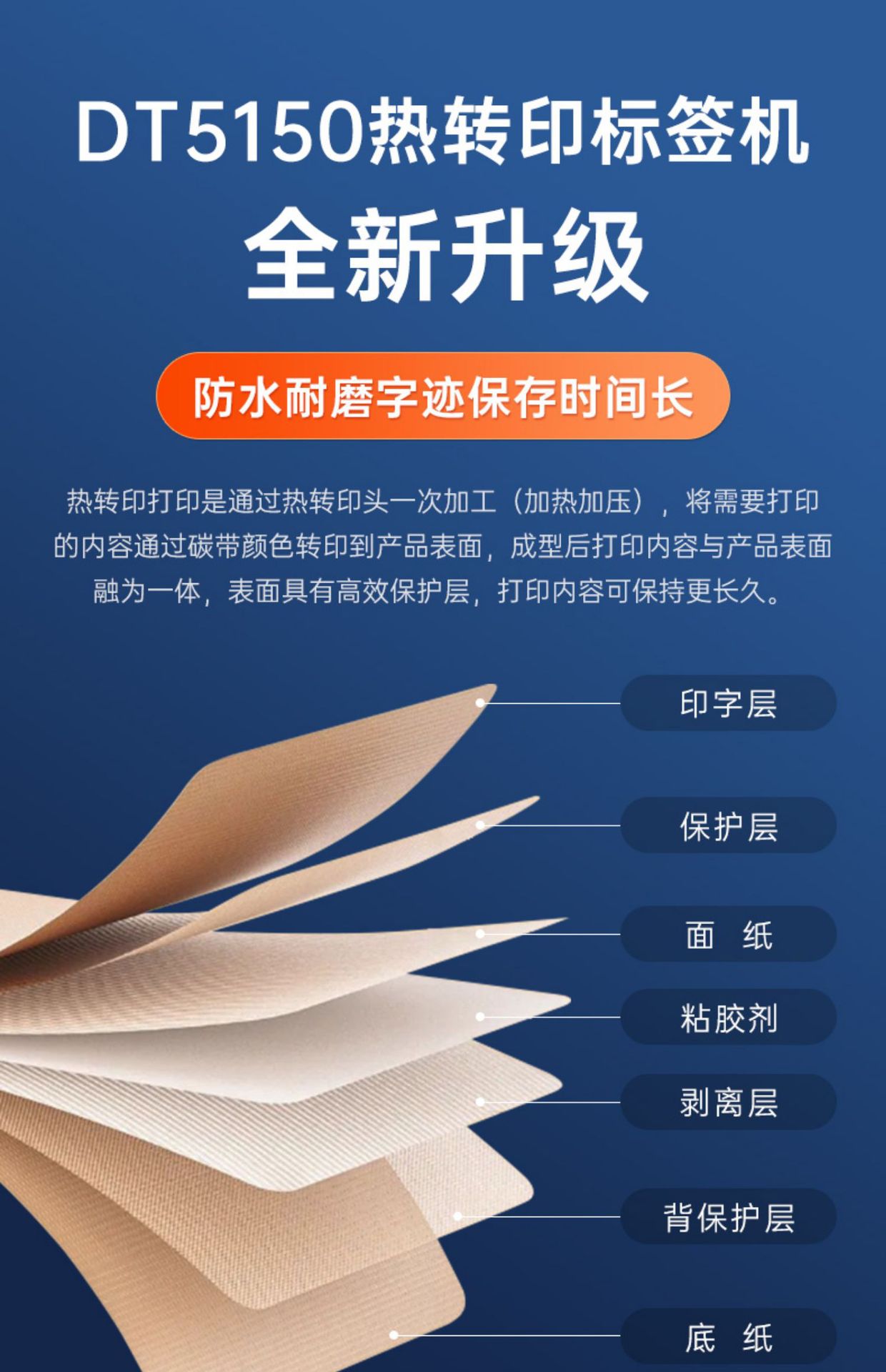 • DT5150(영어 버전) + 무료 40x30mm 노란색 평면 라벨 롤, 총 300개