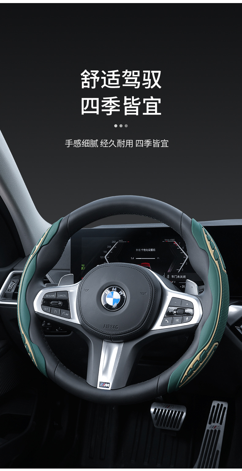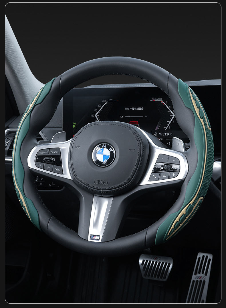 새로운 반카세트형 자동차 핸들 커버, 미끄럼 방지, 내마모성, 오목하고 볼록한 디자인, 다이나믹하고 세련된 원형 D형 범용 핸들 커버스토어 가기