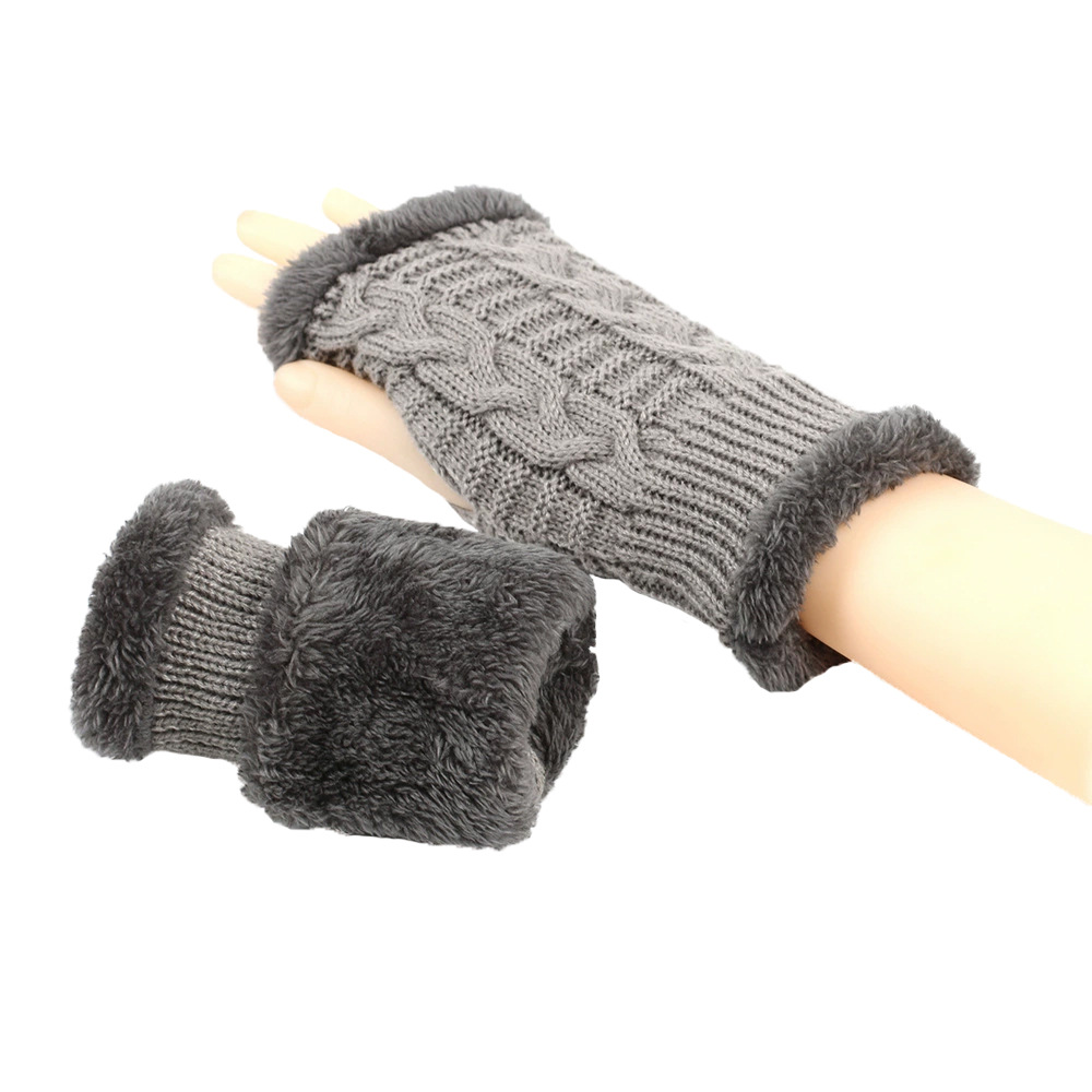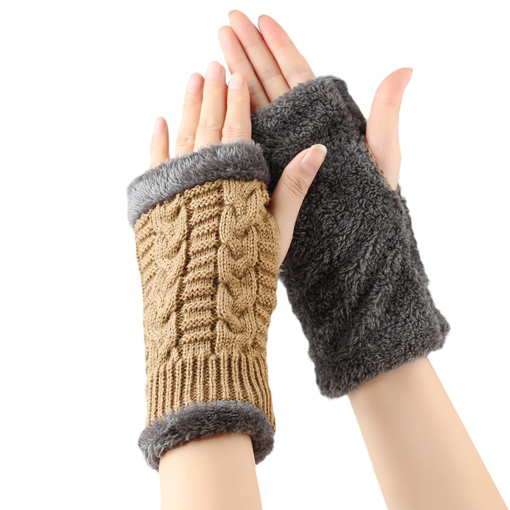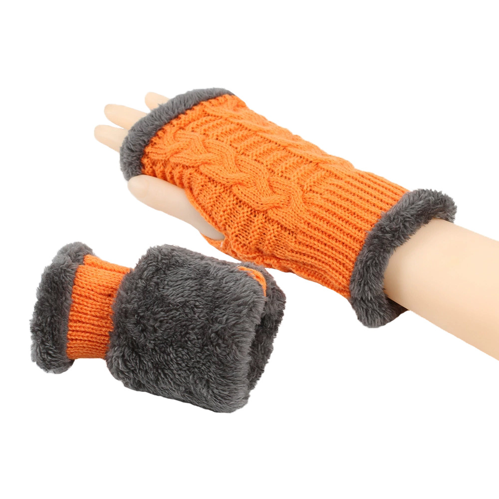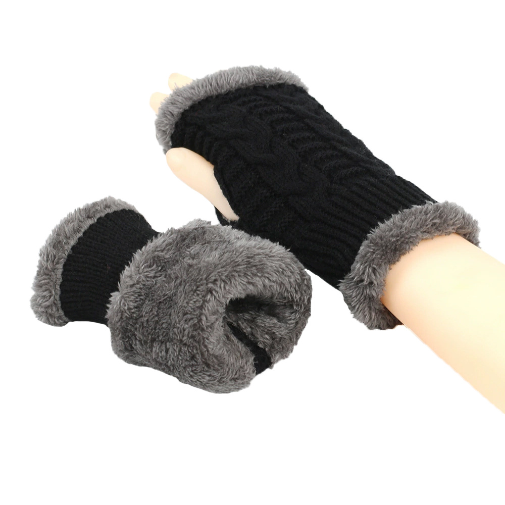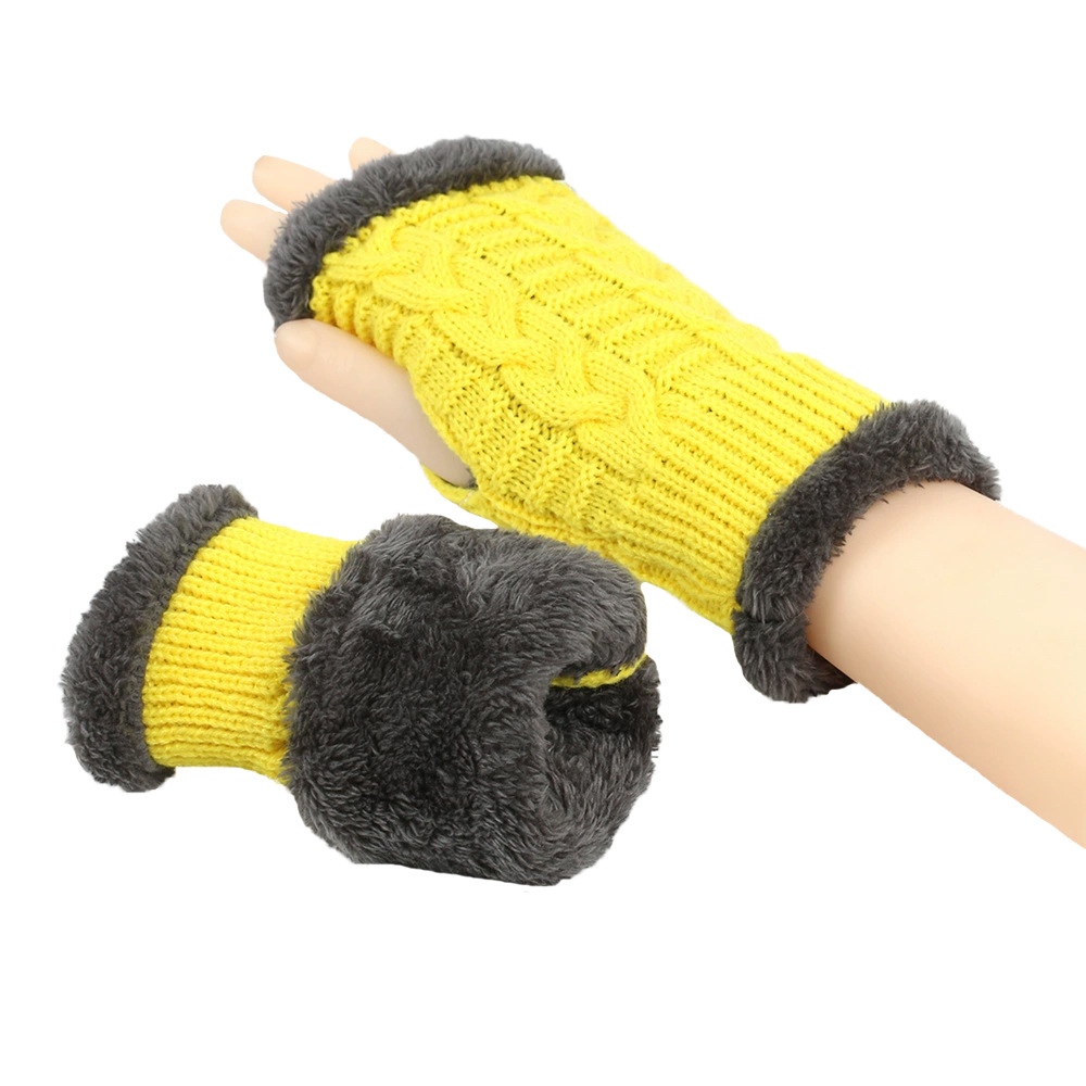 가을과 겨울 두꺼운 울 장갑 짧은 손가락 브래지어 손목 짧은 장갑 니트 아크릴 가짜 소매와 양털 장갑