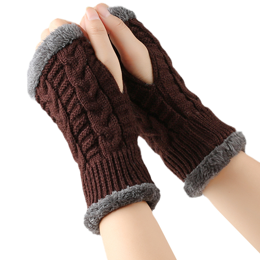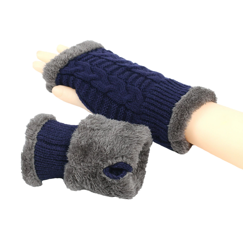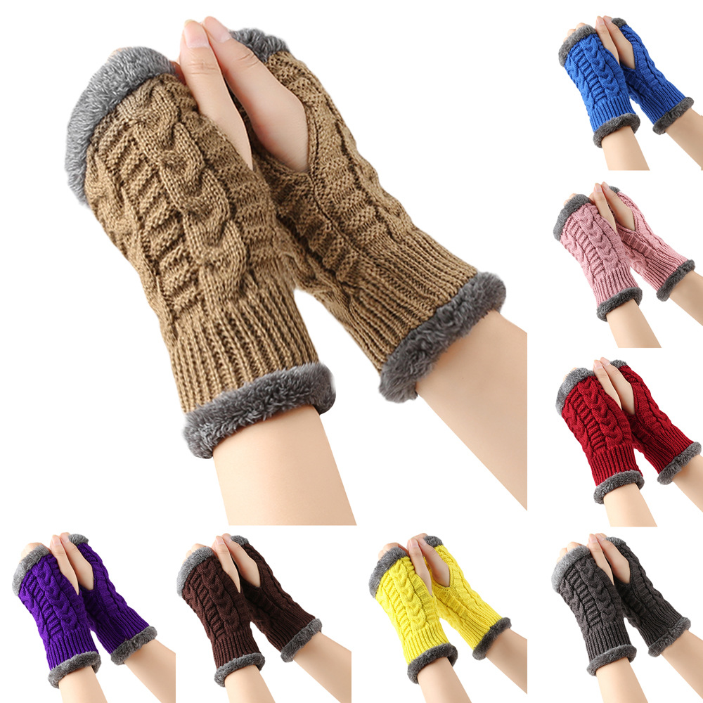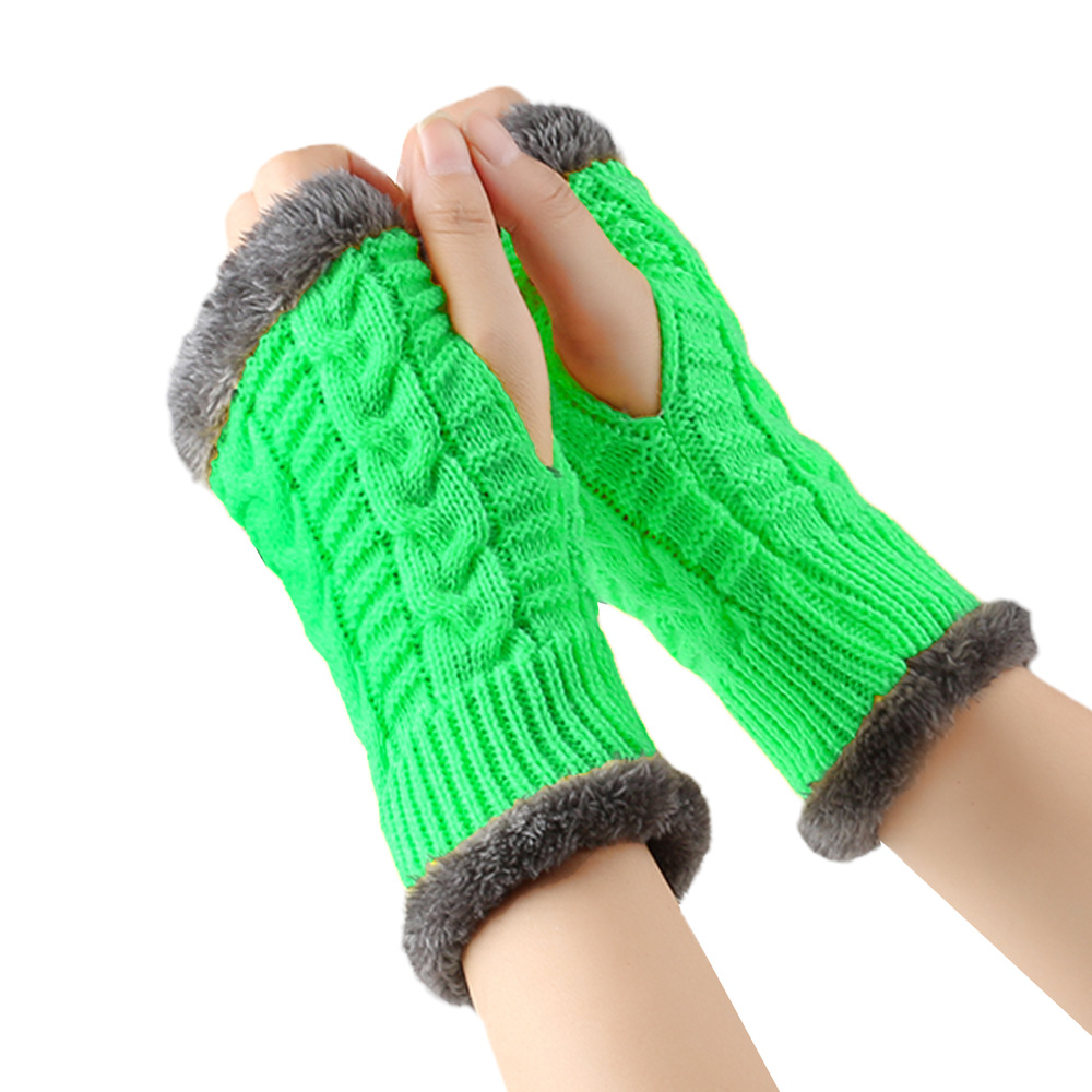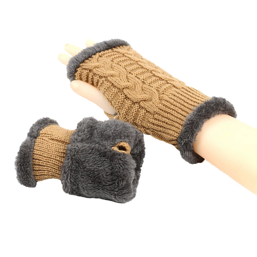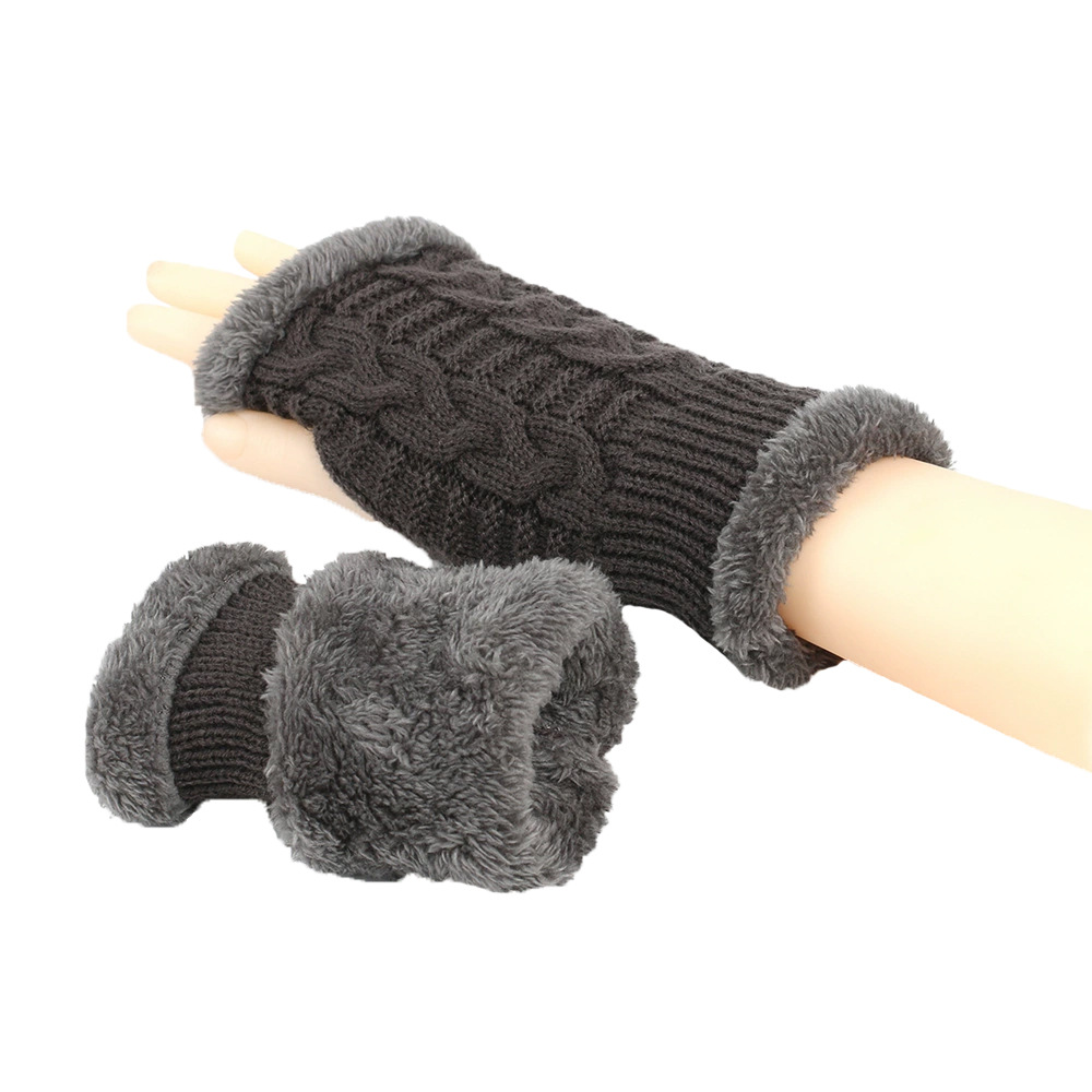 가을과 겨울 두꺼운 울 장갑 짧은 손가락 브래지어 손목 짧은 장갑 니트 아크릴 가짜 소매와 양털 장갑