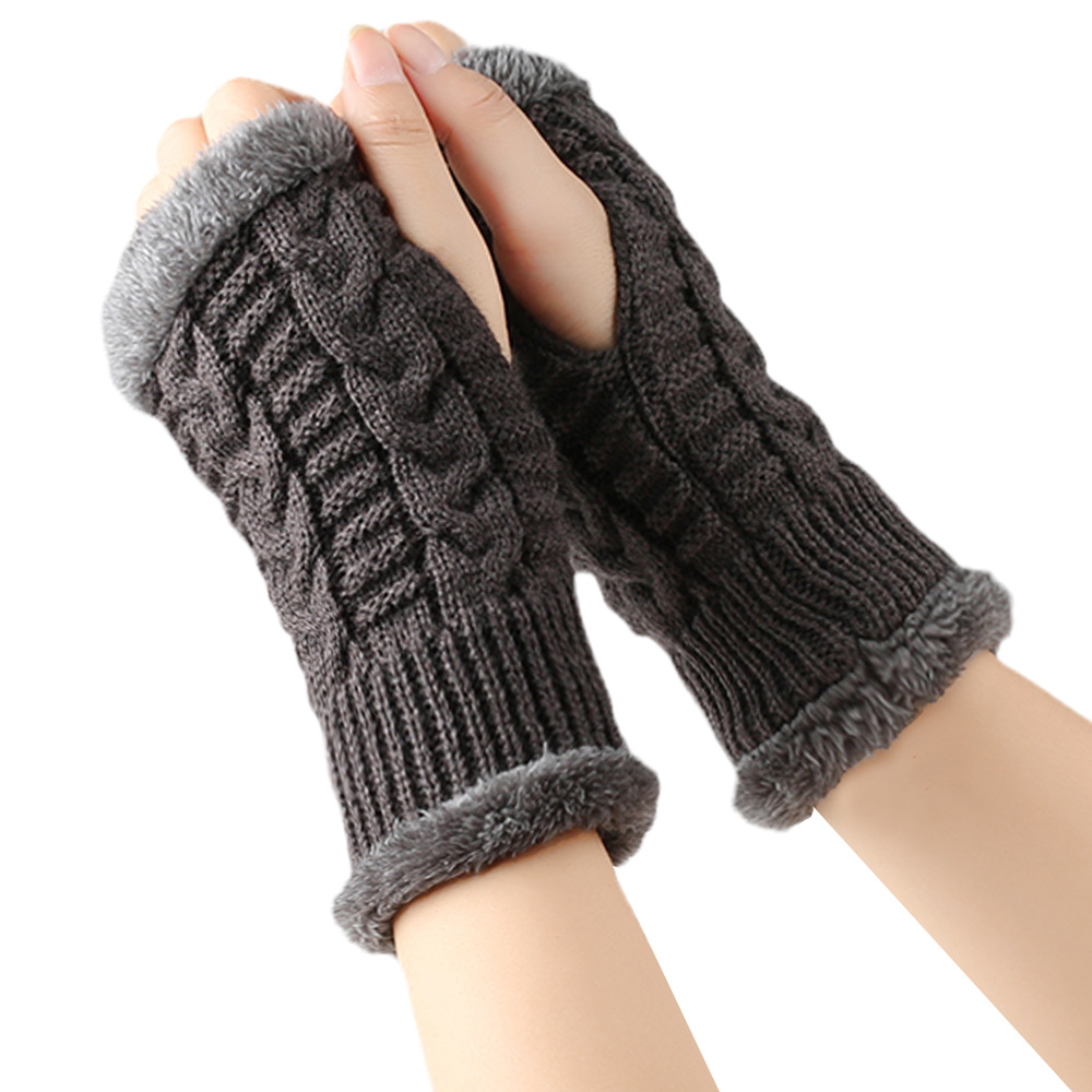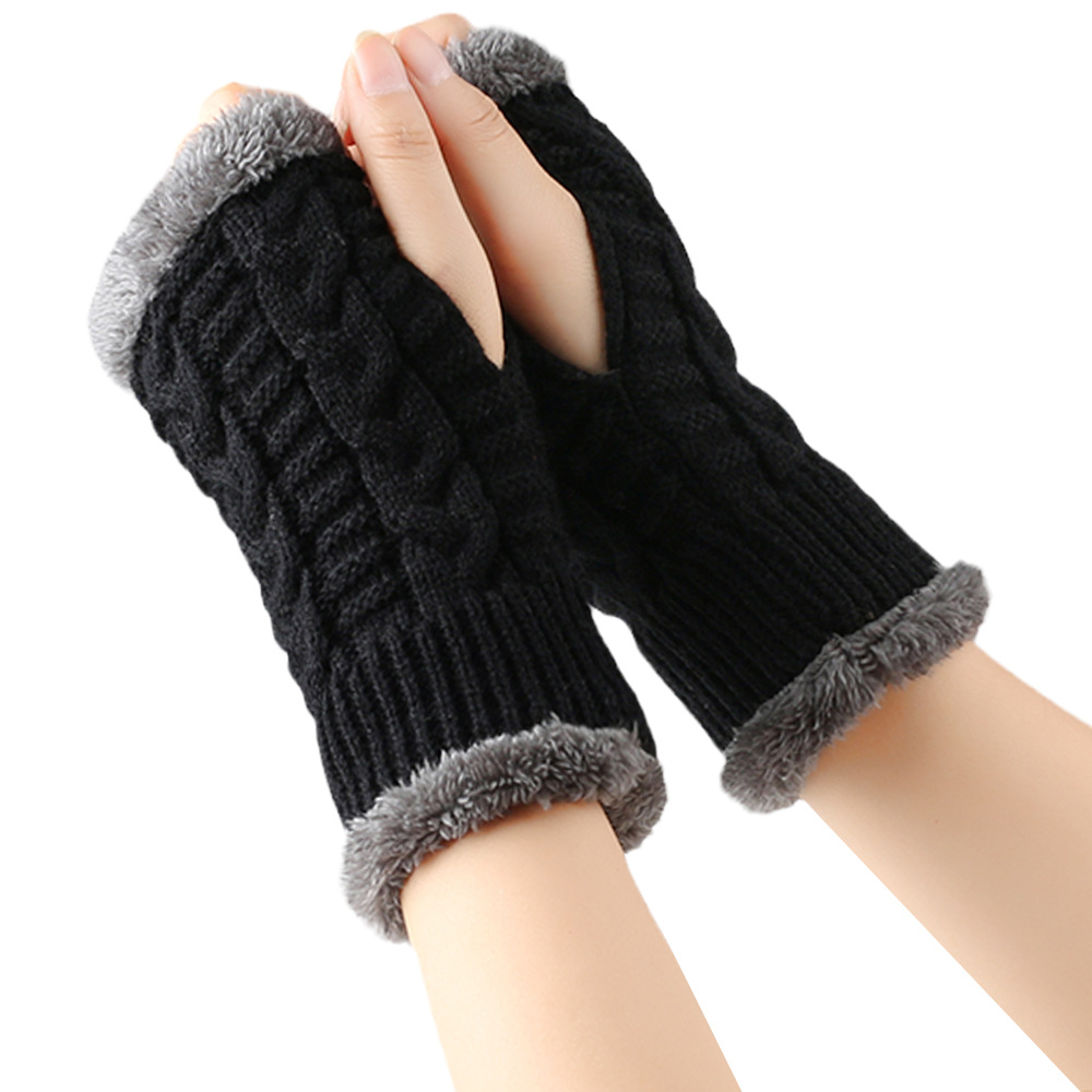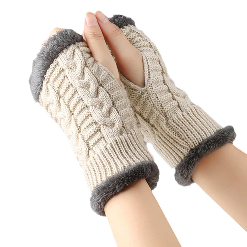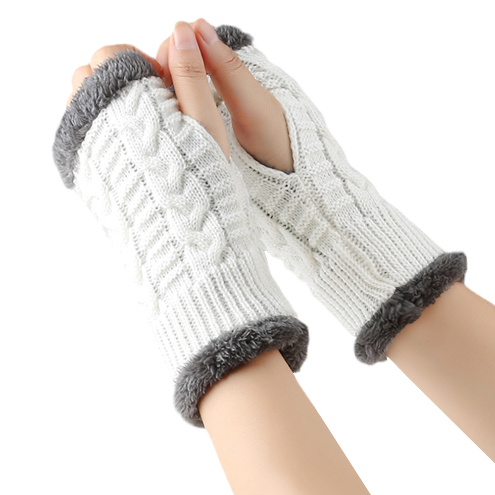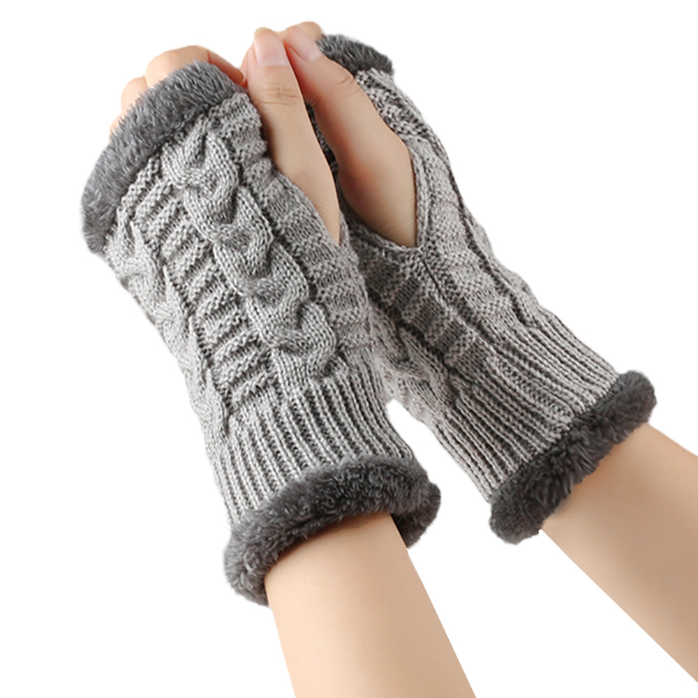 가을과 겨울 두꺼운 울 장갑 짧은 손가락 브래지어 손목 짧은 장갑 니트 아크릴 가짜 소매와 양털 장갑