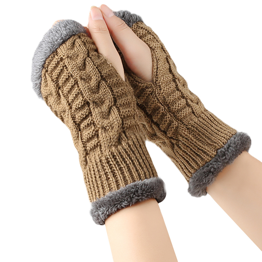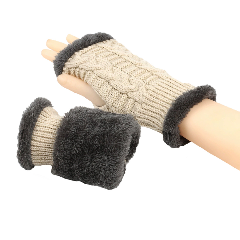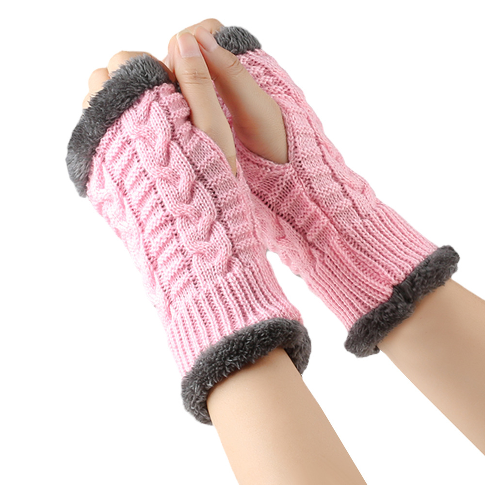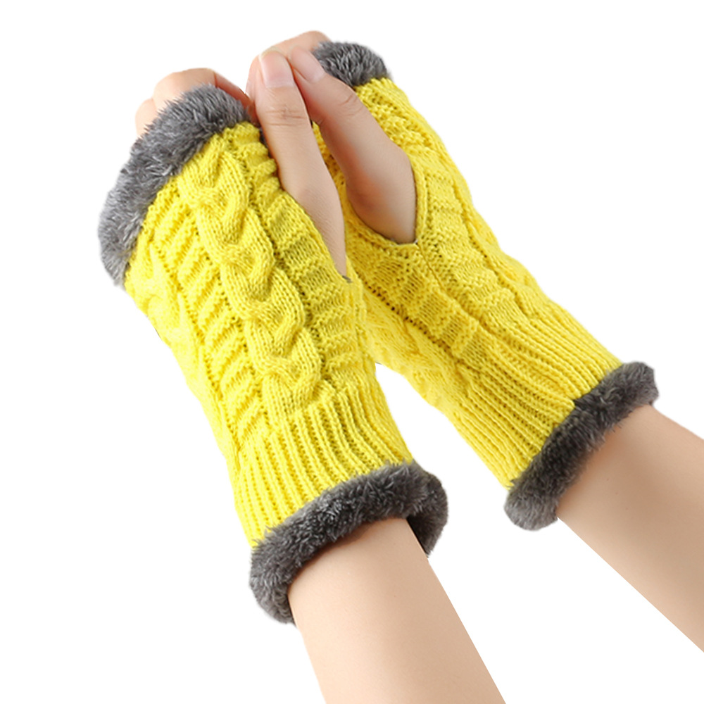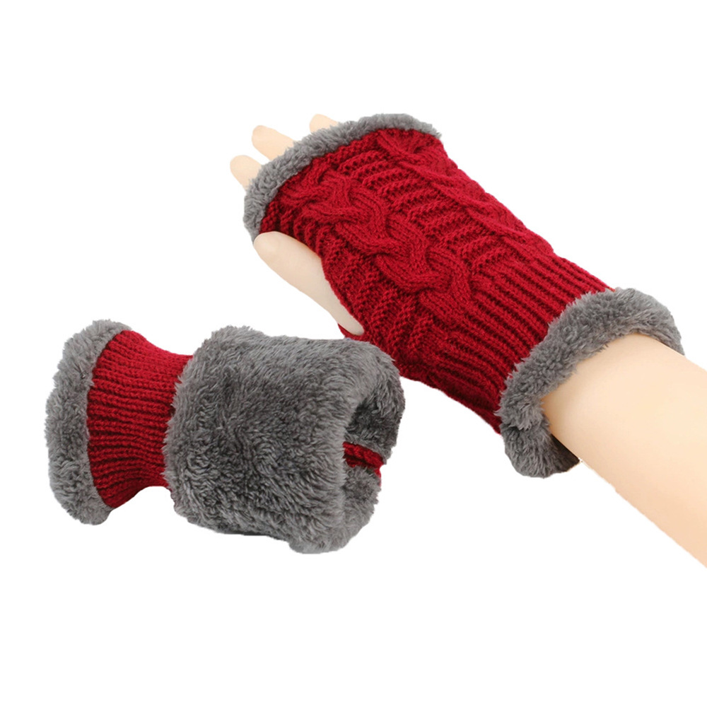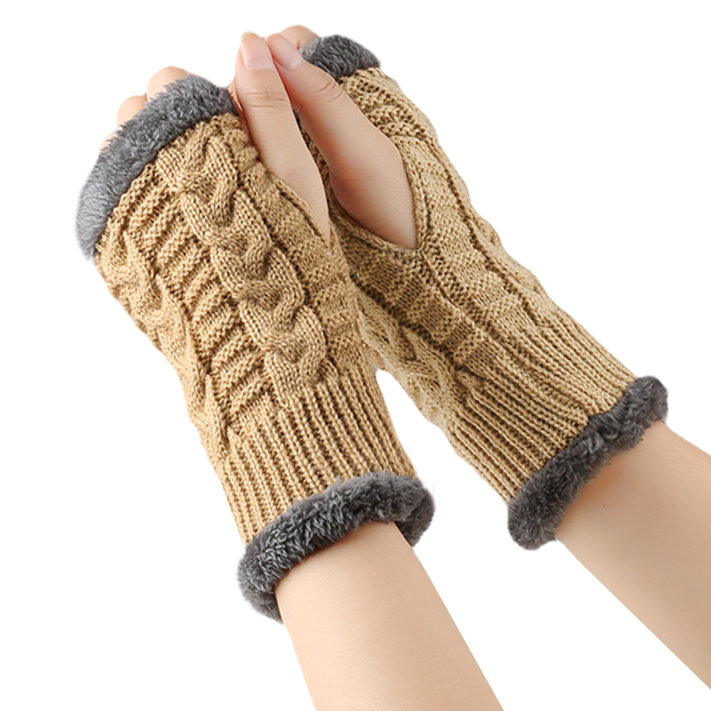 가을과 겨울 두꺼운 울 장갑 짧은 손가락 브래지어 손목 짧은 장갑 니트 아크릴 가짜 소매와 양털 장갑