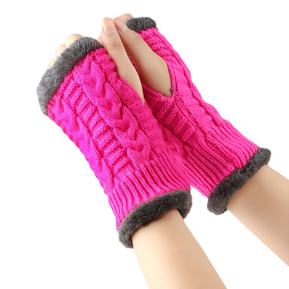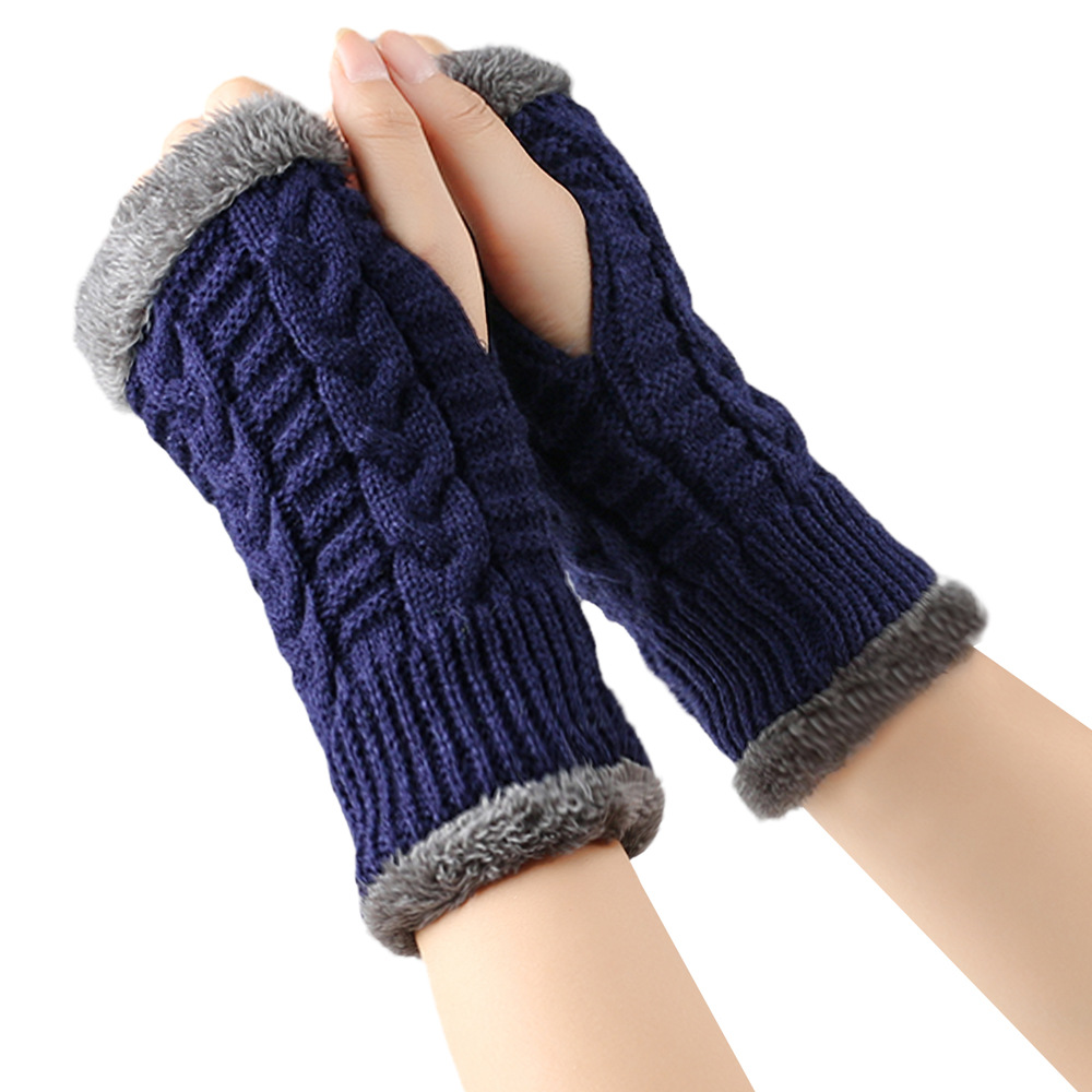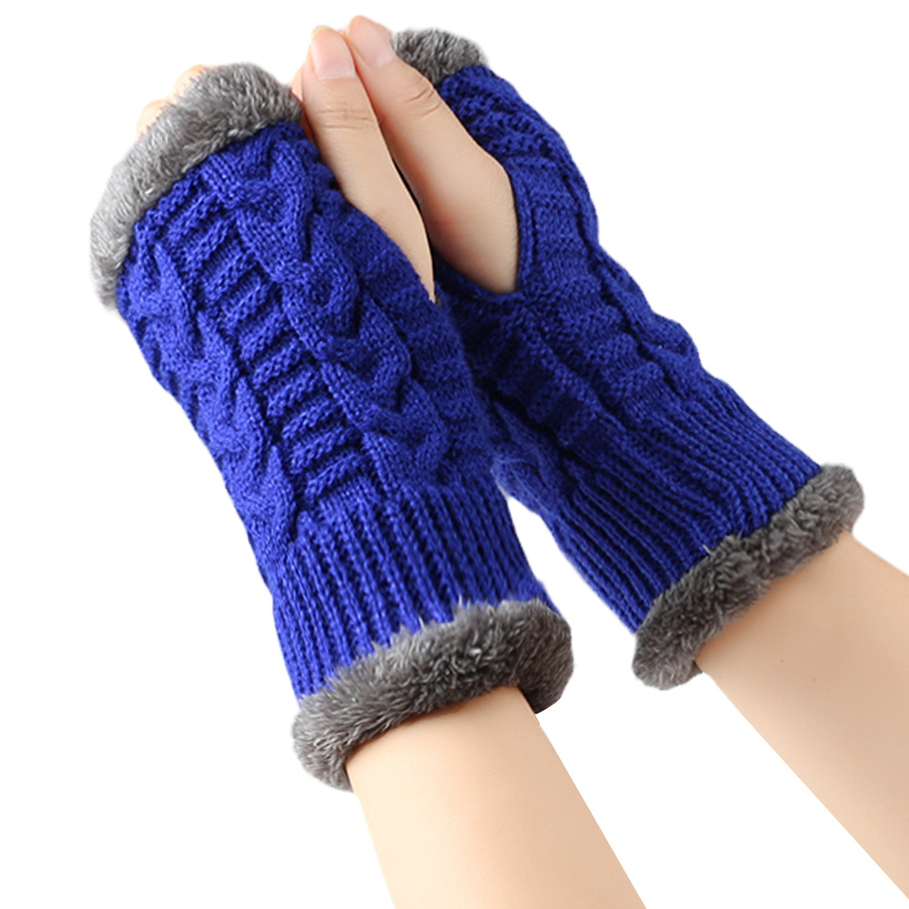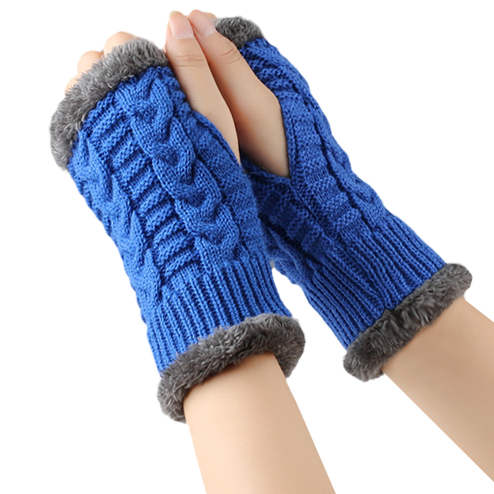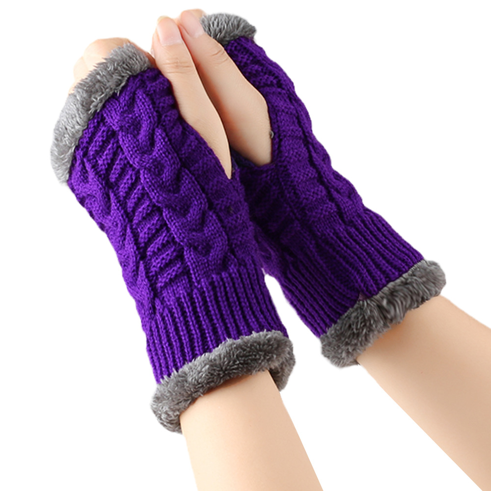 가을과 겨울 두꺼운 울 장갑 짧은 손가락 브래지어 손목 짧은 장갑 니트 아크릴 가짜 소매와 양털 장갑