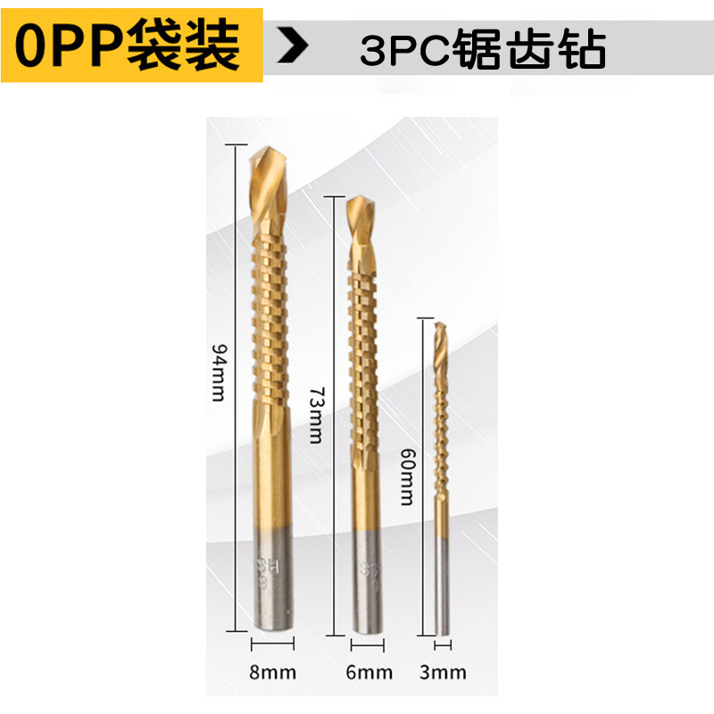 • 6 조각 세트 (3 단계 드릴 3 톱니 모양의 드릴)-OPP 가방
