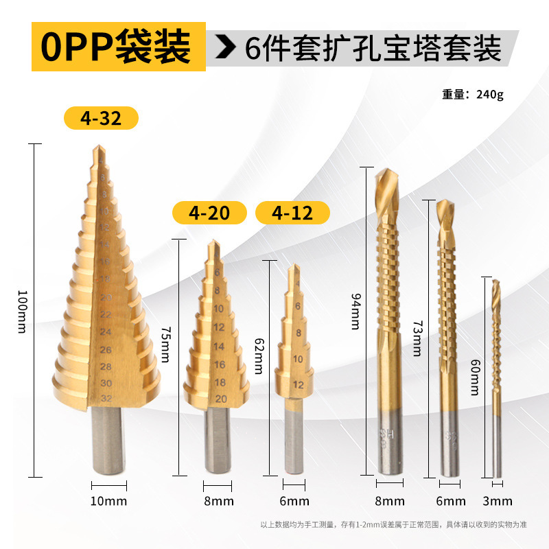 톱 드릴 스텝 드릴 세트 파고다 드릴의 6 피스 세트 톱니 트위스트 드릴 플라스틱 상자 세트 구멍 리밍 절단