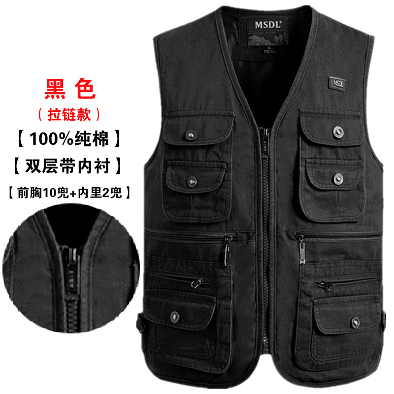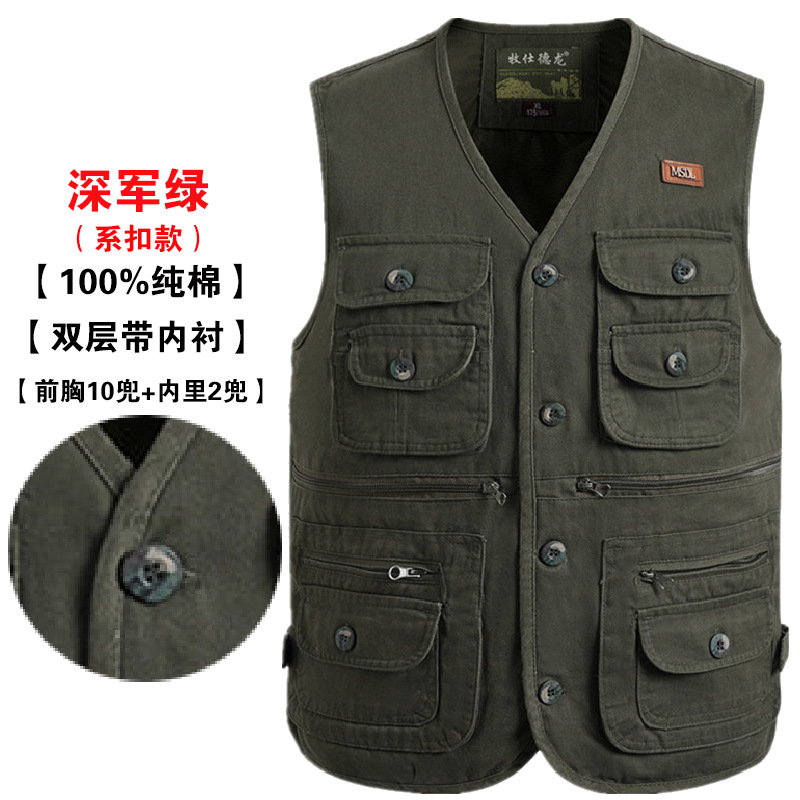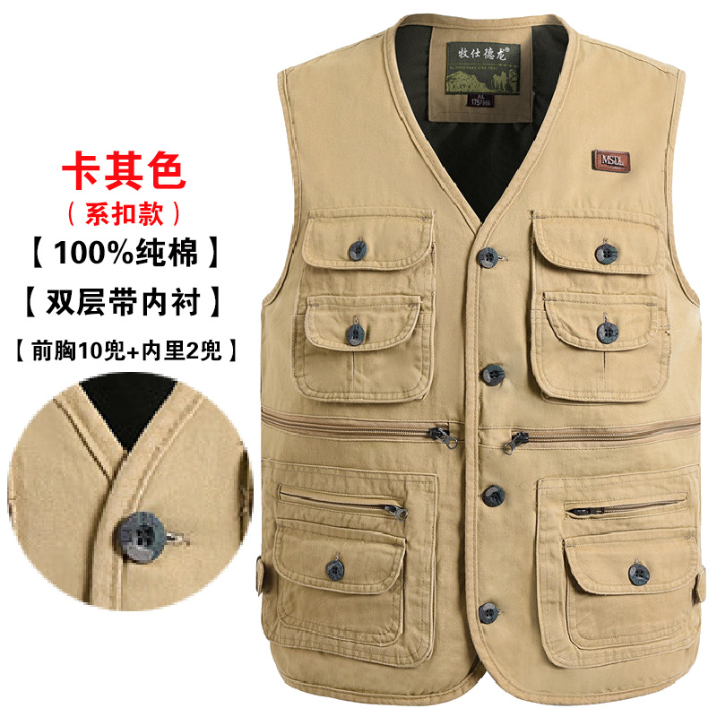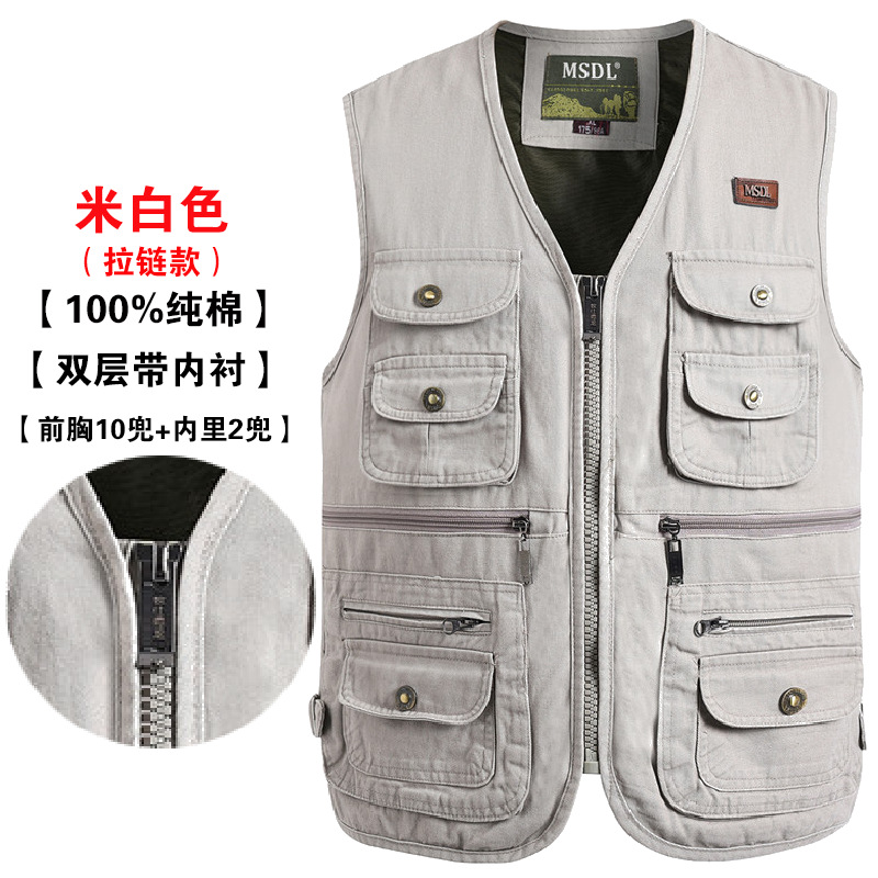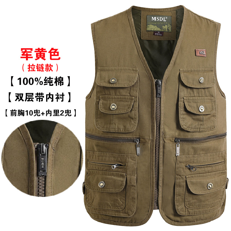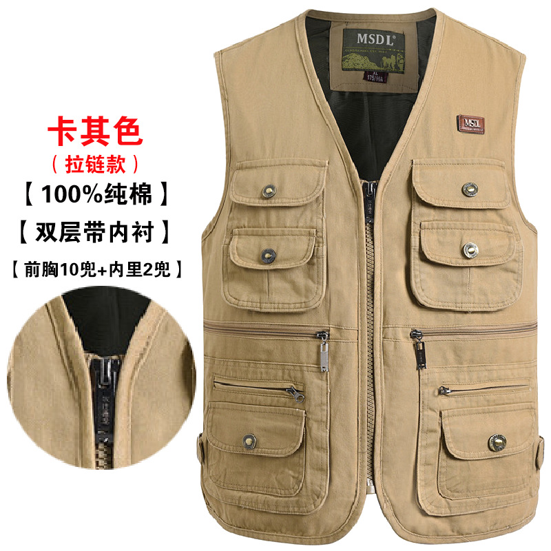 중년 및 노인을위한 Multi-Pocket Waistcoat 남성용 야외 등산과 봄과 가을 코튼 아빠 지퍼 더블 레이어 캐주얼 조끼스토어 가기