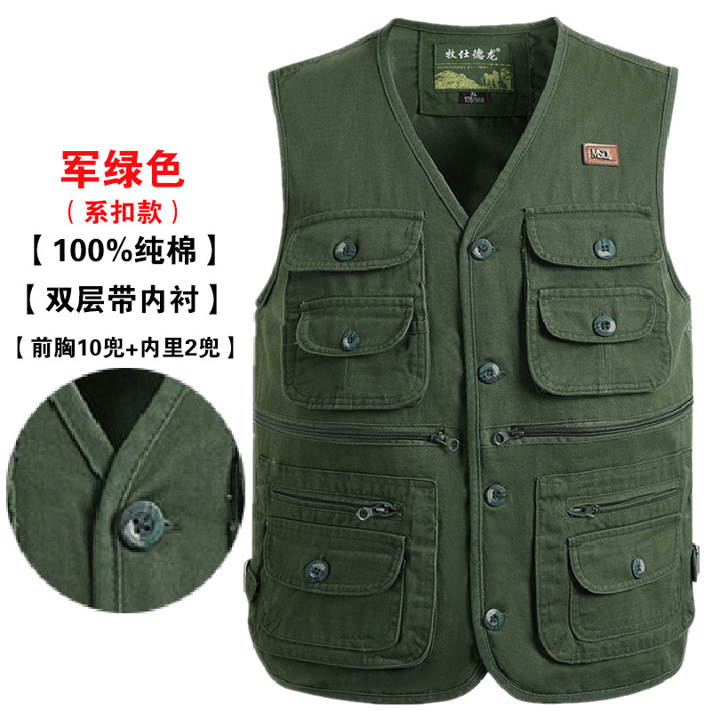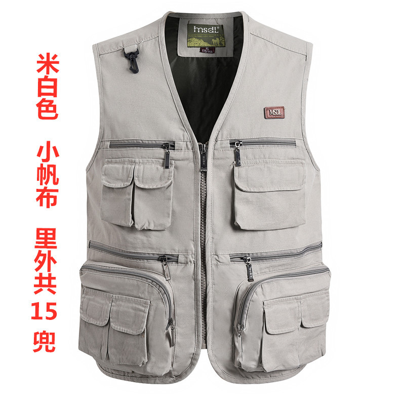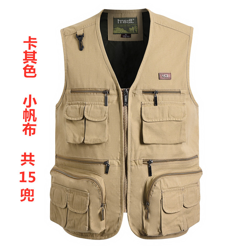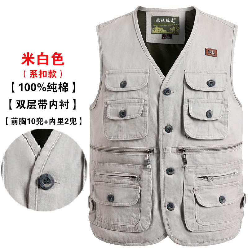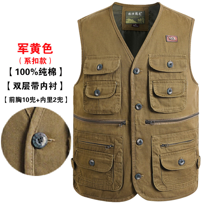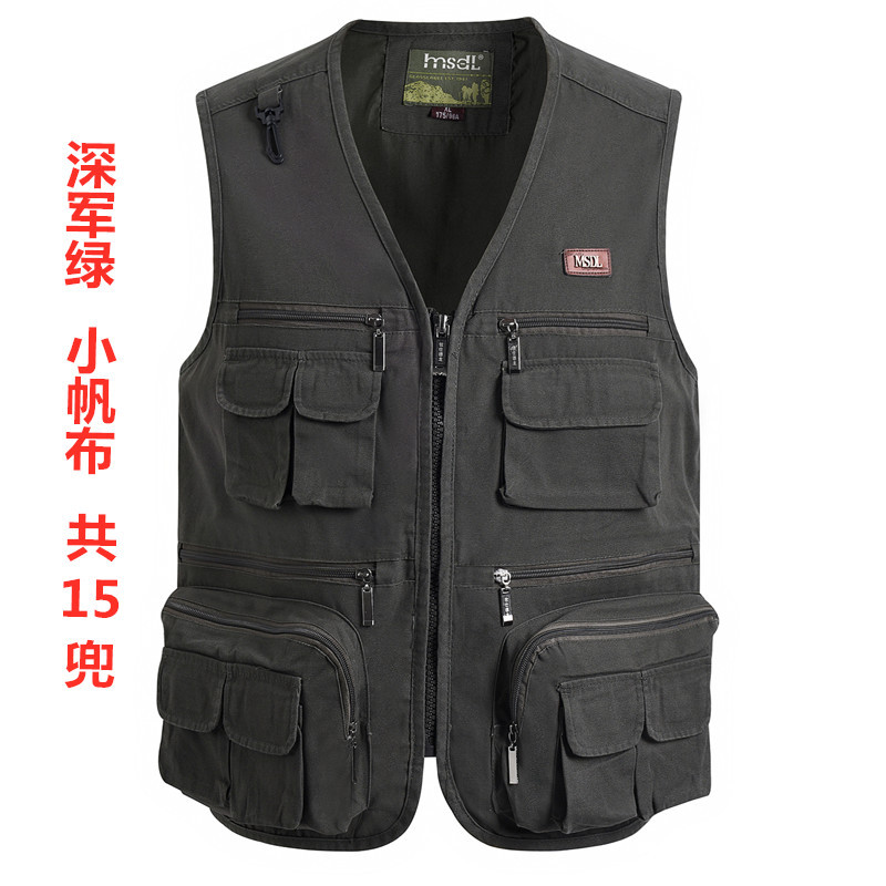 중년 및 노인을위한 Multi-Pocket Waistcoat 남성용 야외 등산과 봄과 가을 코튼 아빠 지퍼 더블 레이어 캐주얼 조끼스토어 가기