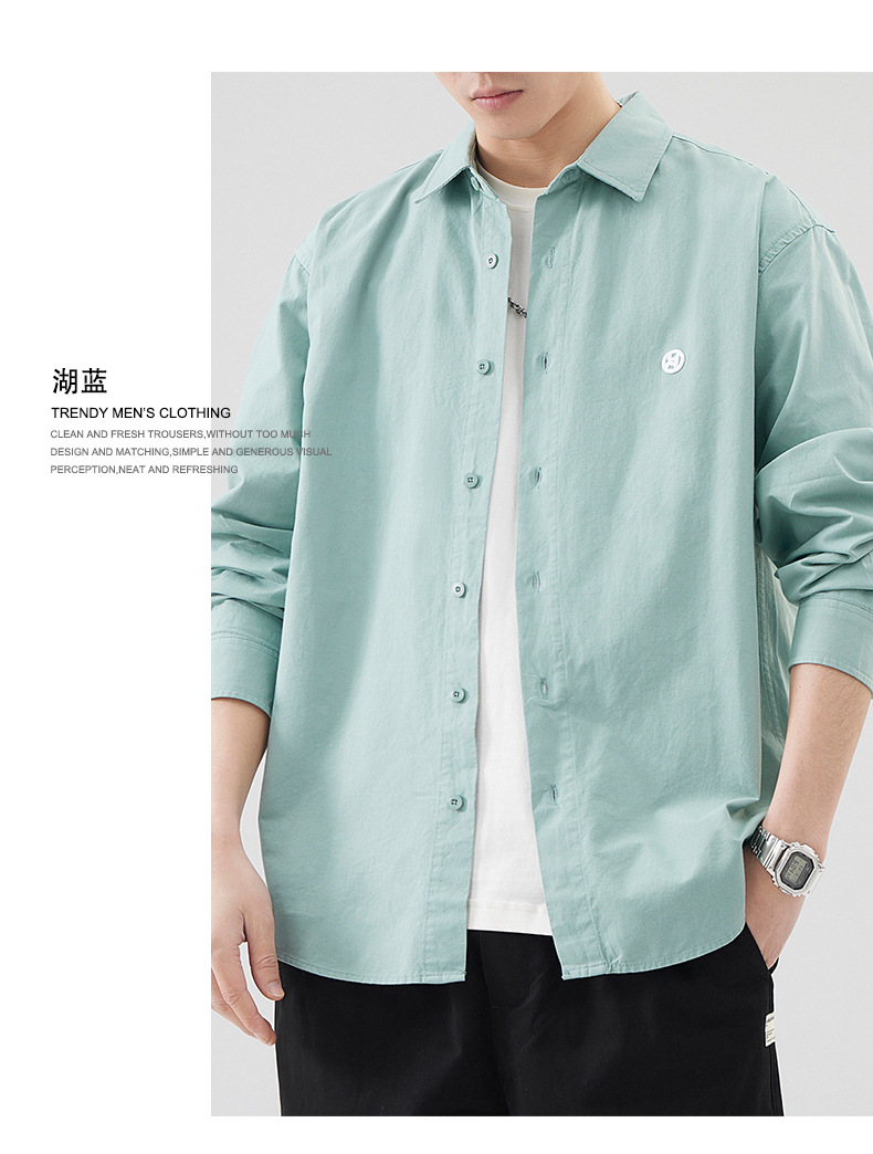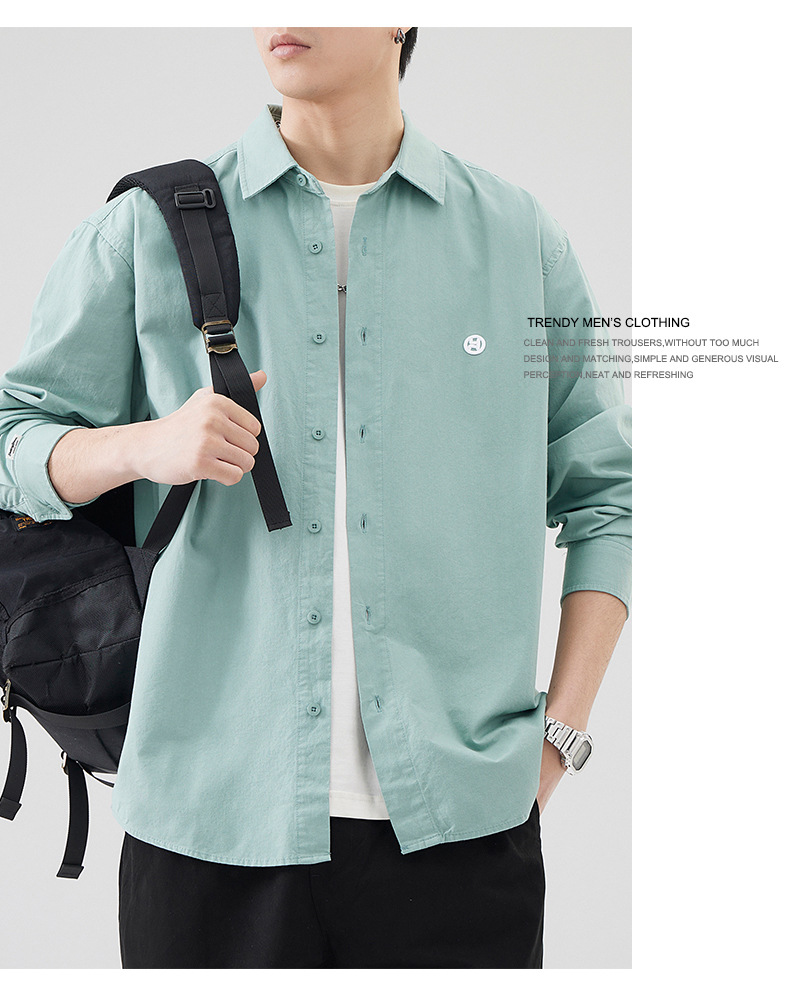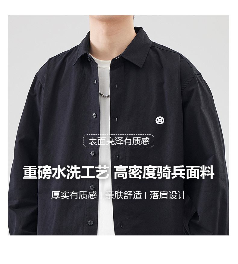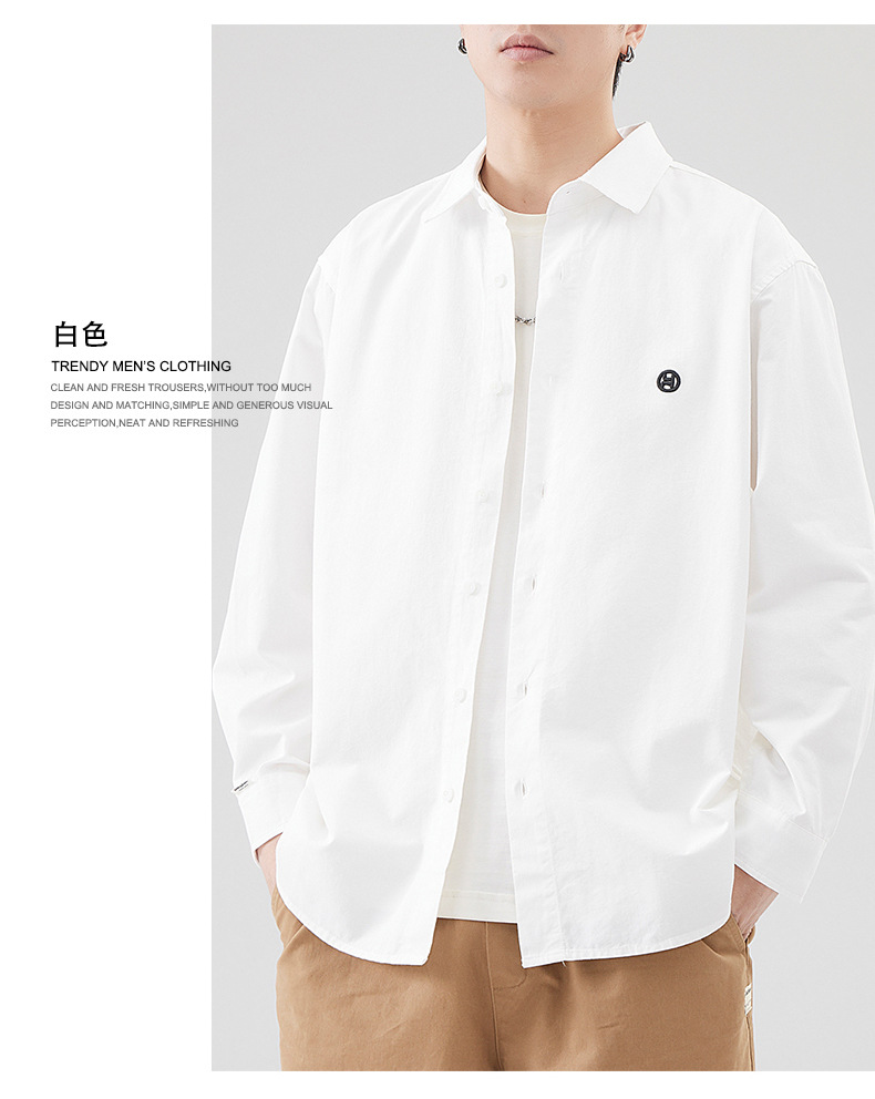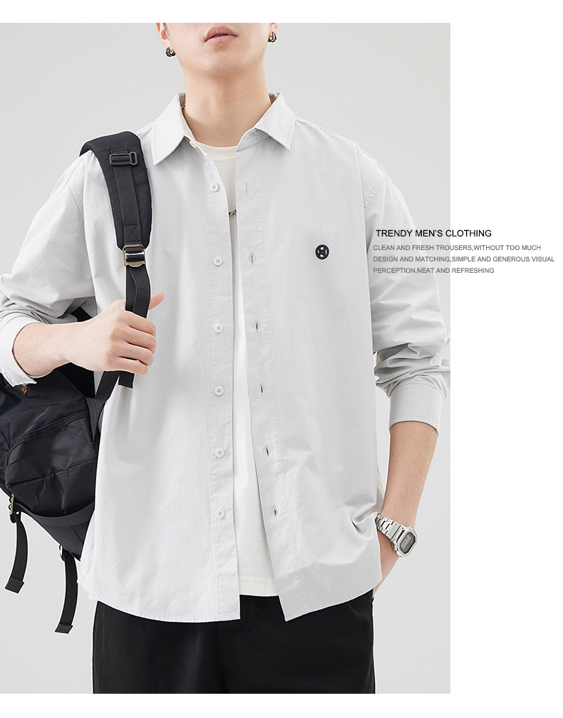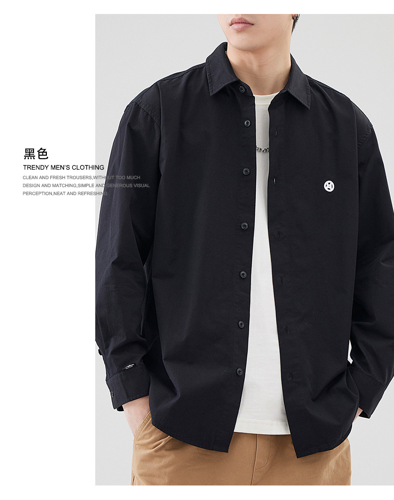 가을 순면 간단한 하이 엔드 긴팔 셔츠 남자의 느슨한 플러스 사이즈 캐주얼 옷깃 셔츠 Ins 자수 재킷