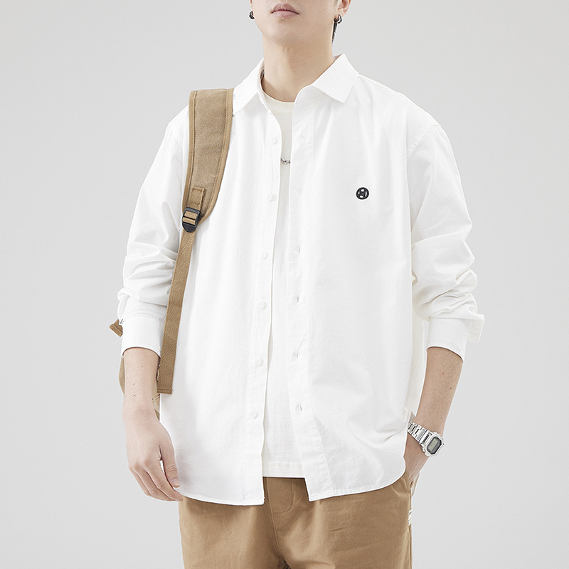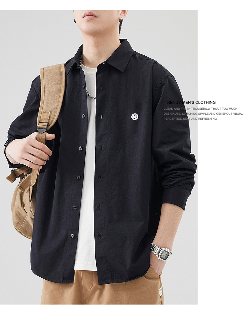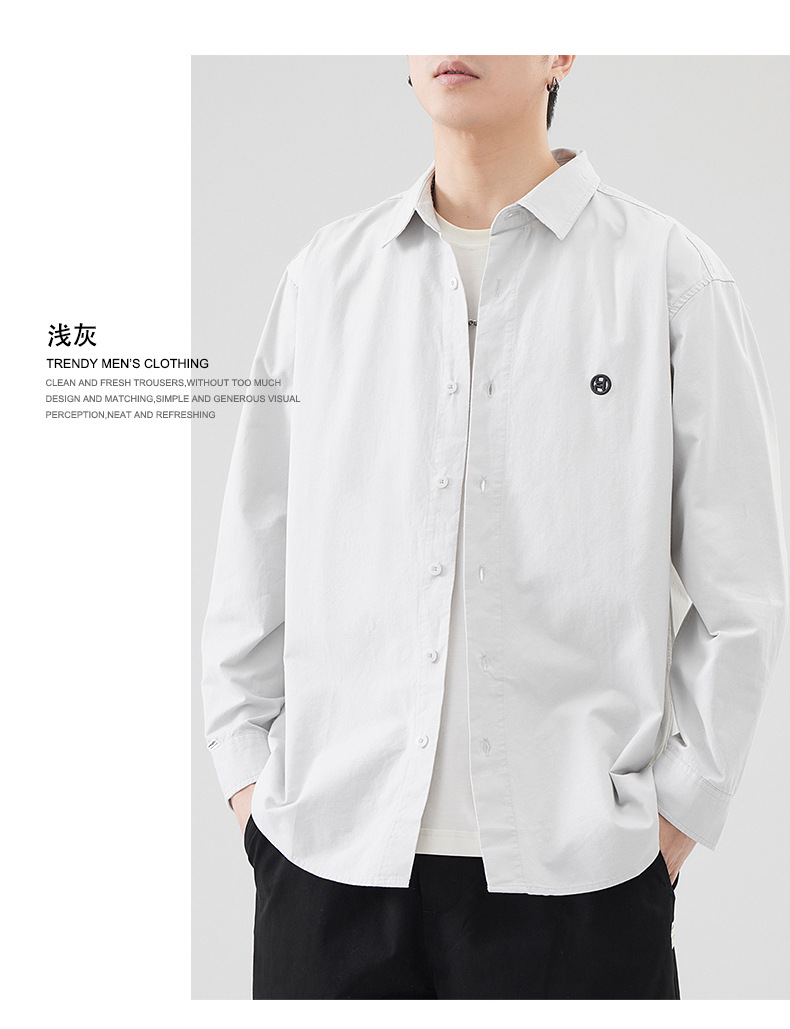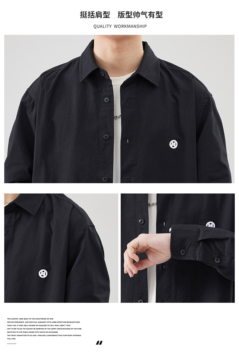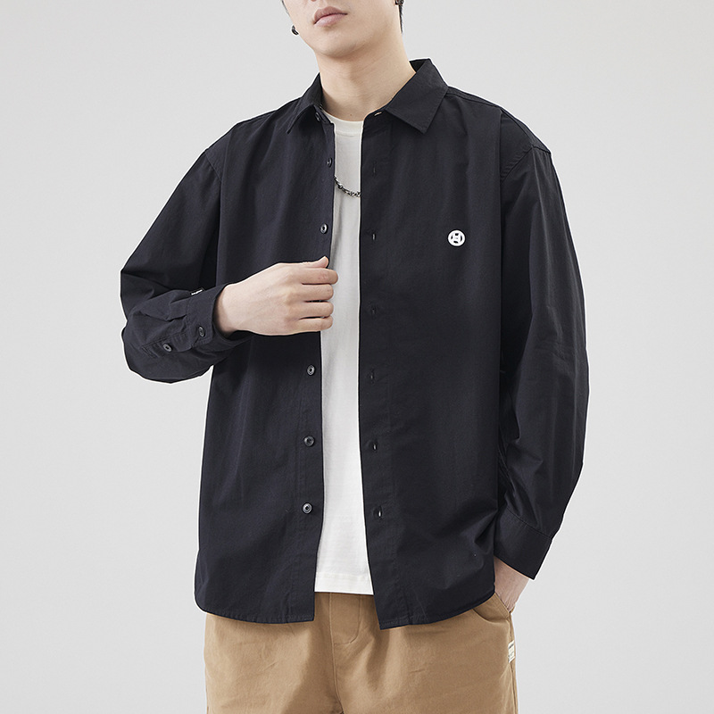 가을 순면 간단한 하이 엔드 긴팔 셔츠 남자의 느슨한 플러스 사이즈 캐주얼 옷깃 셔츠 Ins 자수 재킷스토어 가기