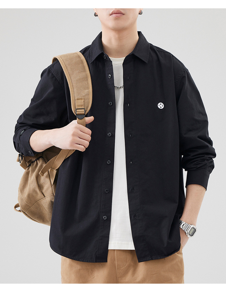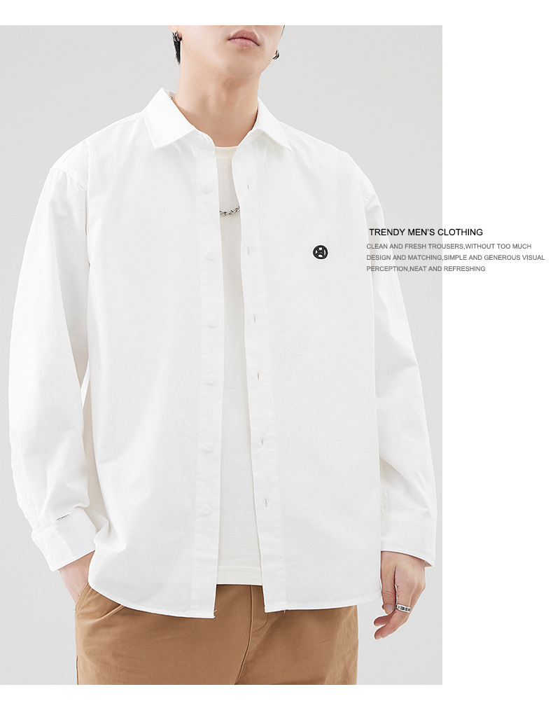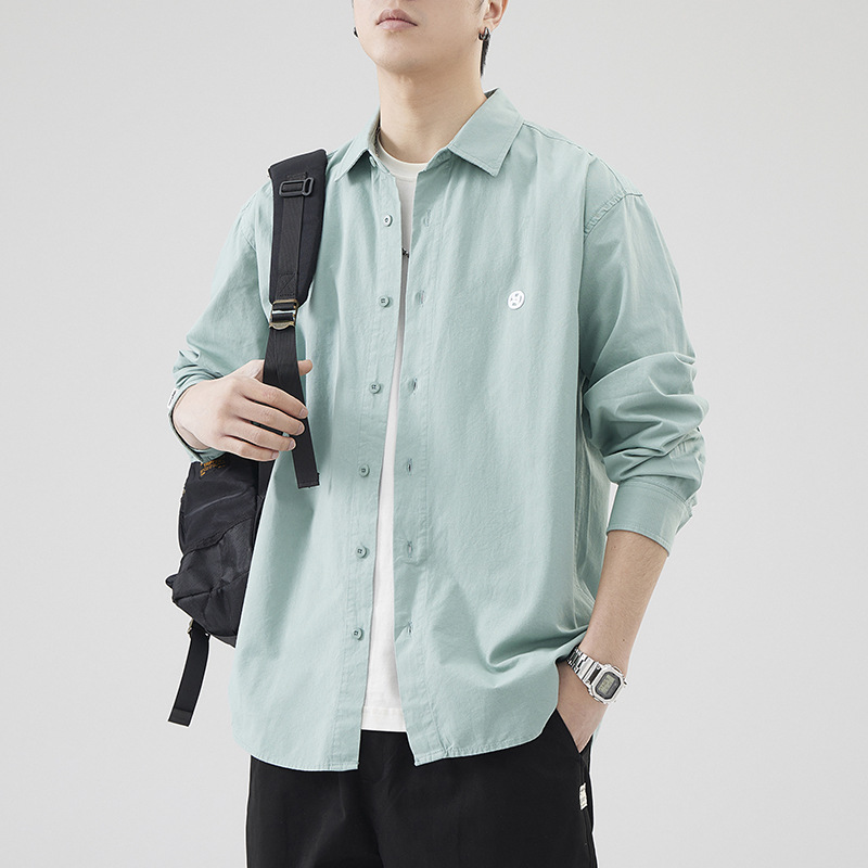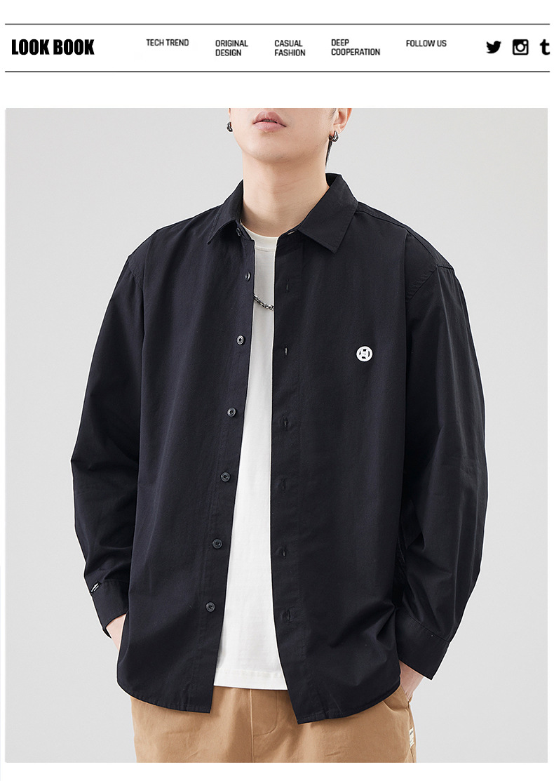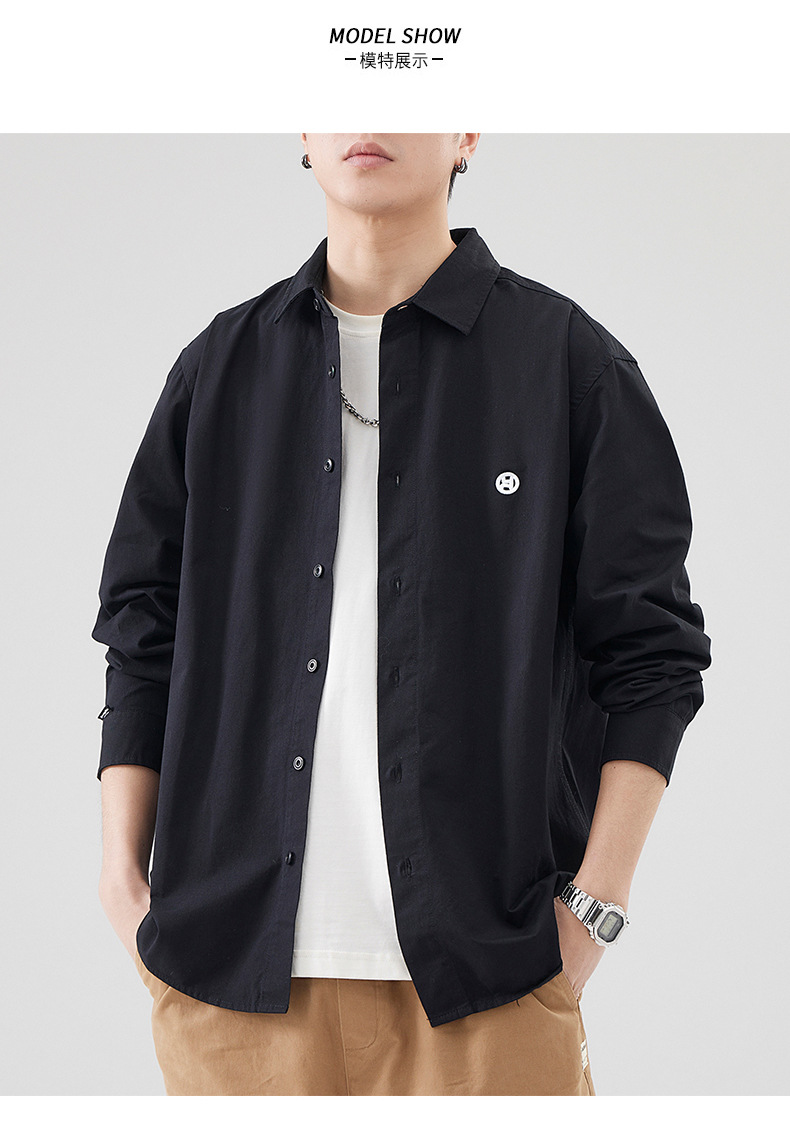 가을 순면 간단한 하이 엔드 긴팔 셔츠 남자의 느슨한 플러스 사이즈 캐주얼 옷깃 셔츠 Ins 자수 재킷스토어 가기
