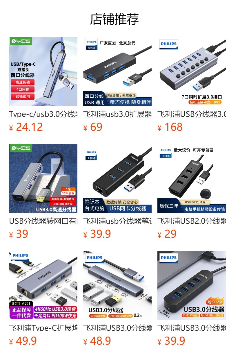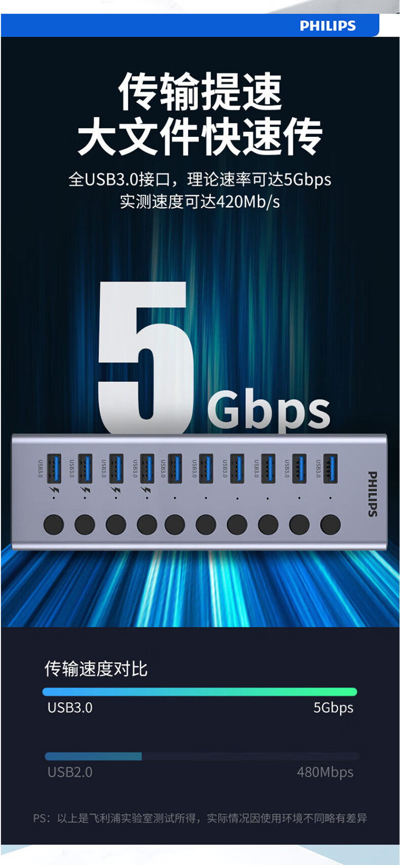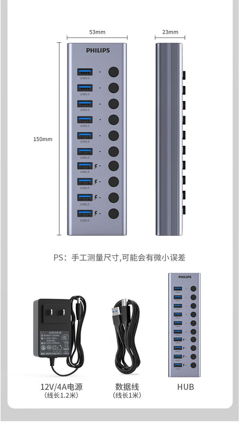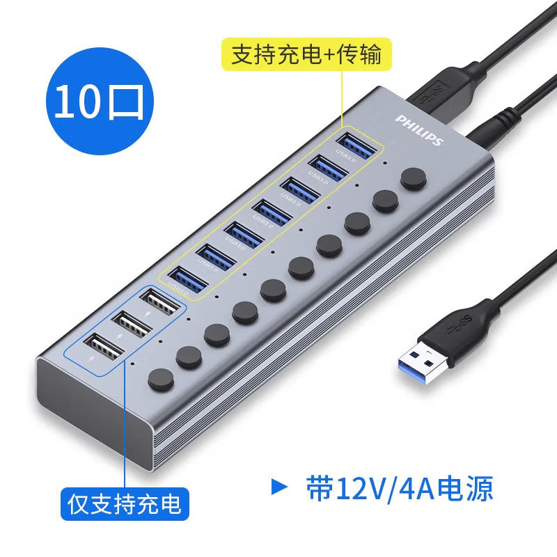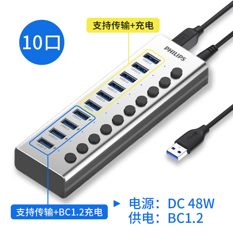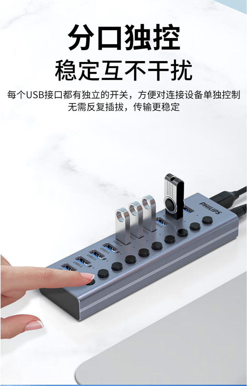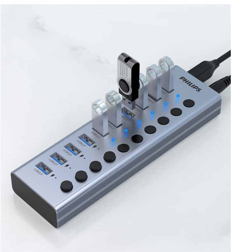 필립스 USB3.0 스플리터 1 대 7 전원 공급 장치, 7 포트 허브 멀티 인터페이스 컨버터 확장스토어 가기