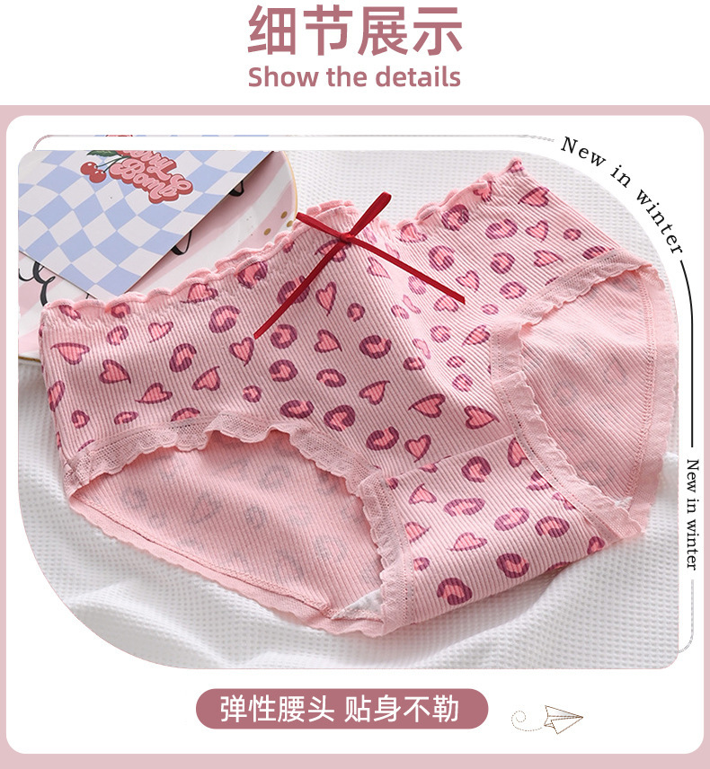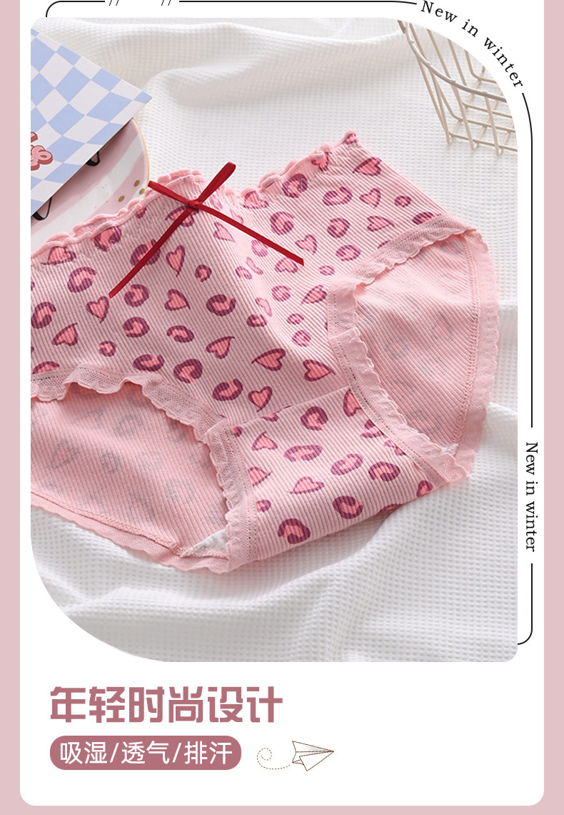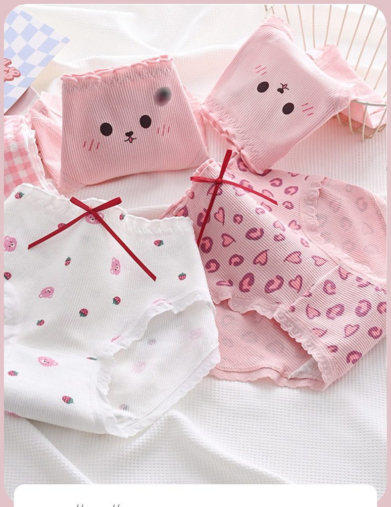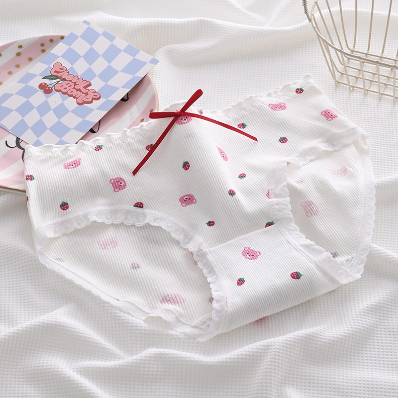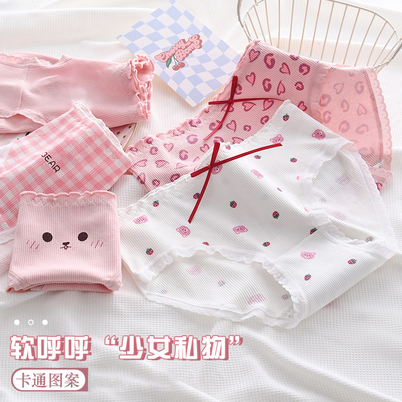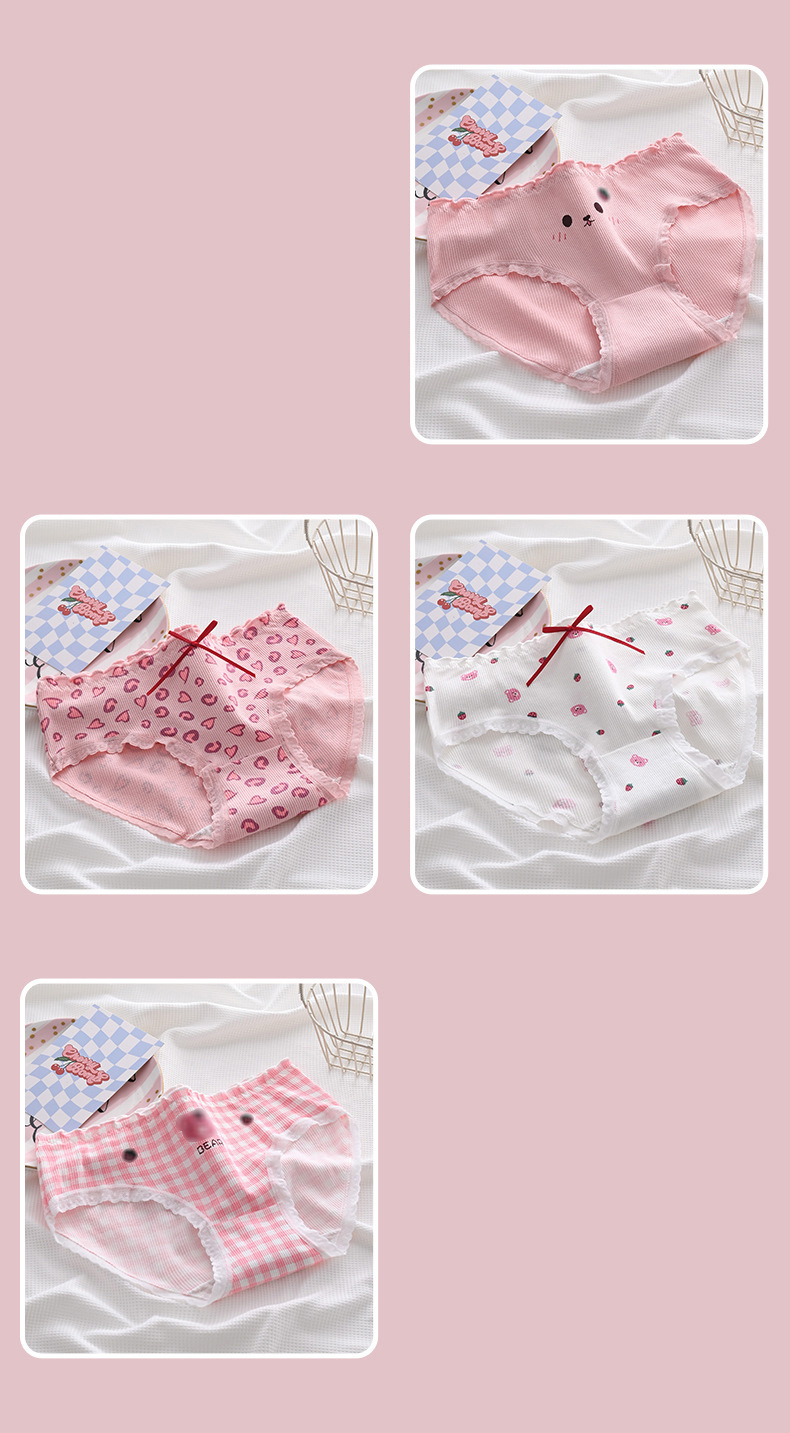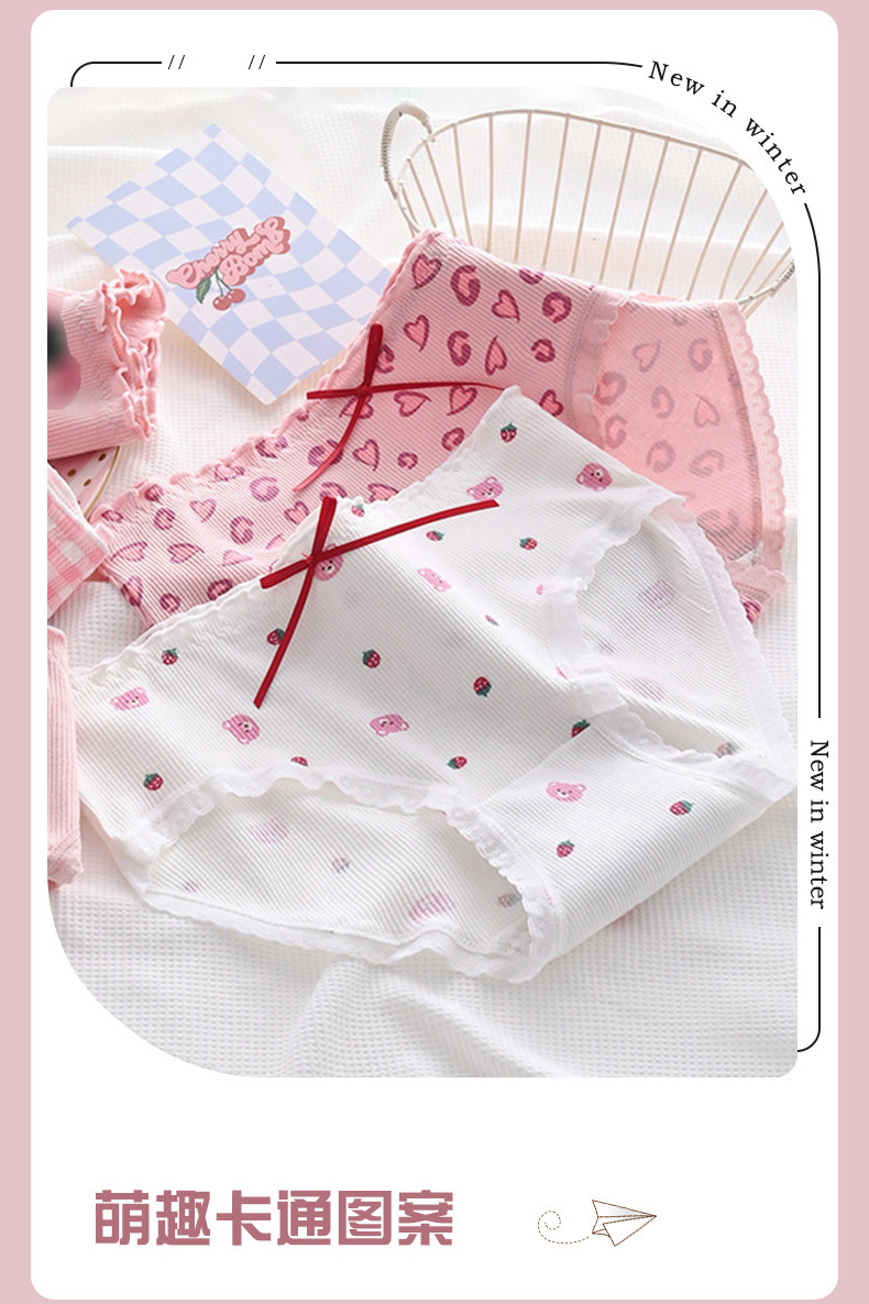 귀여운 달콤한 중간 허리 바지 만화 통기성 여성 속옷 여성의 일본 곰 딸기 학생 브리프 여성