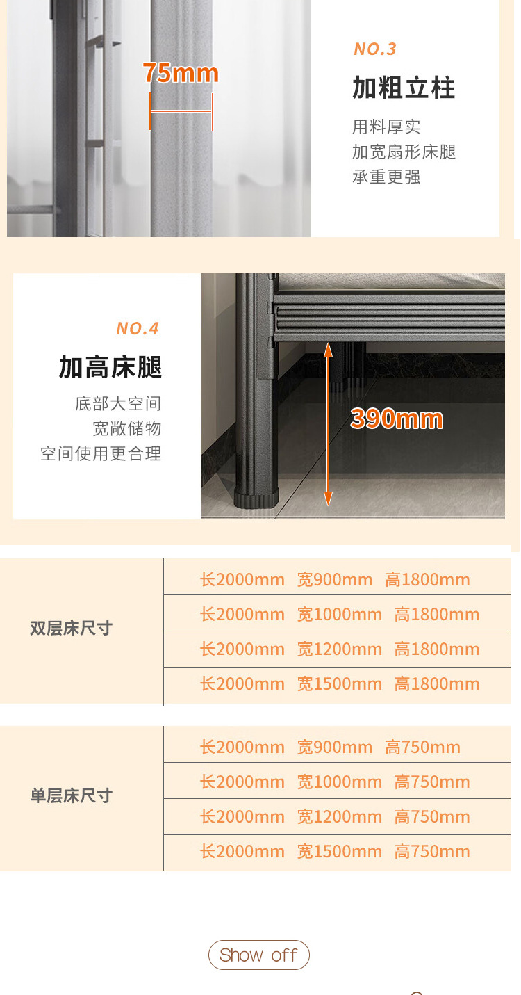 상하 이층 침대 철제 프레임 두껍게 높고 낮은 침대 철제 침대 학생 직원 기숙사 싱글 성인스토어 가기