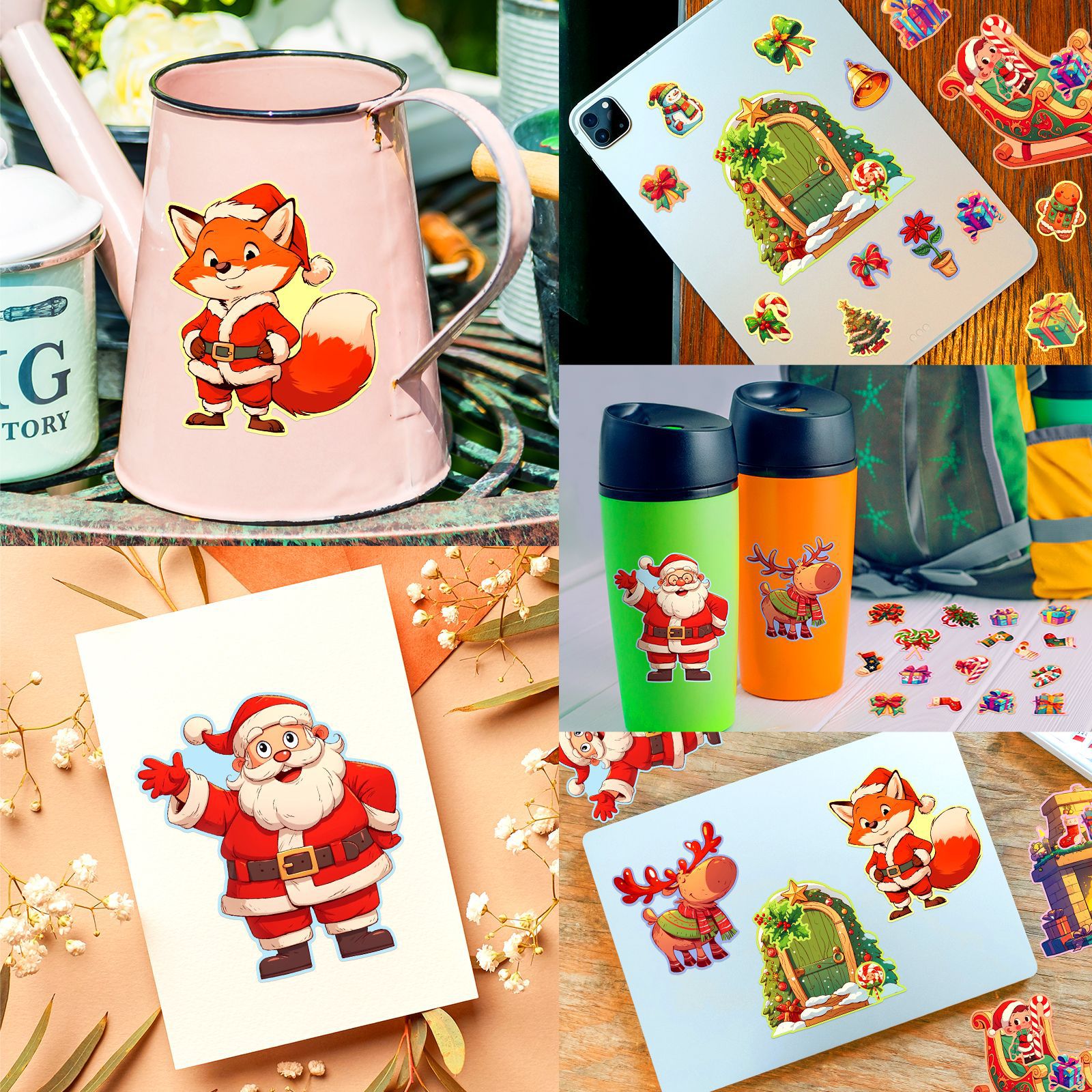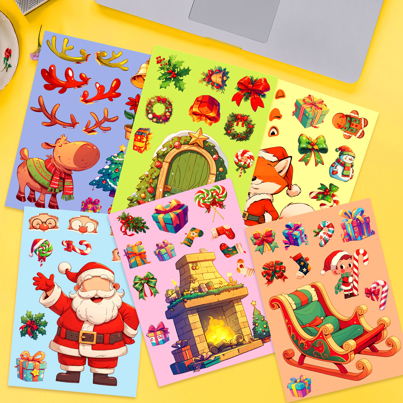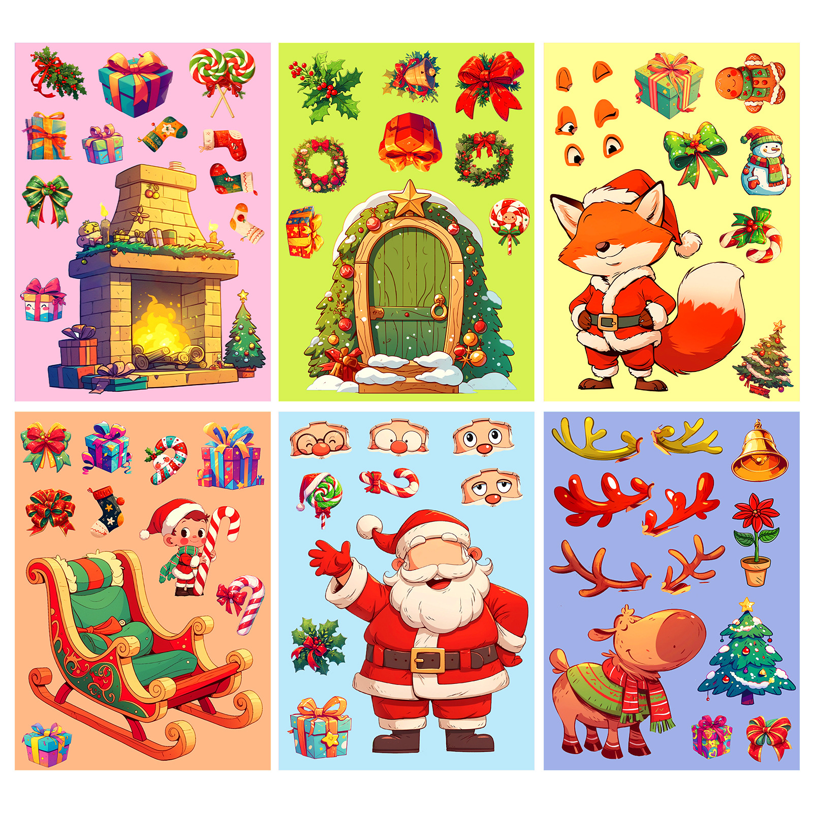6 장/팩 흔들 의자 크리스마스 얼굴 변경 스티커 퍼즐 표현 변환 DIY 어린이 장난감 국경 장식 물 컵 스티커