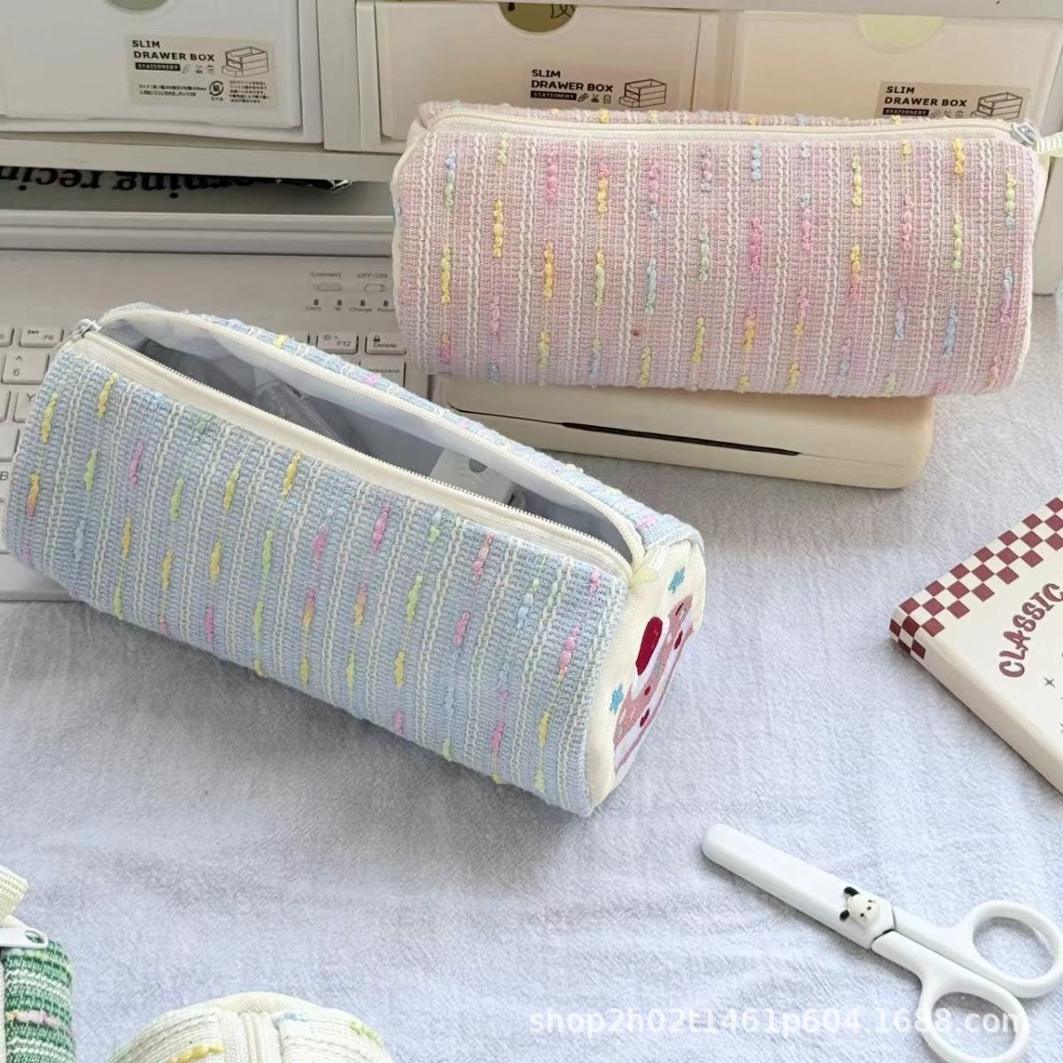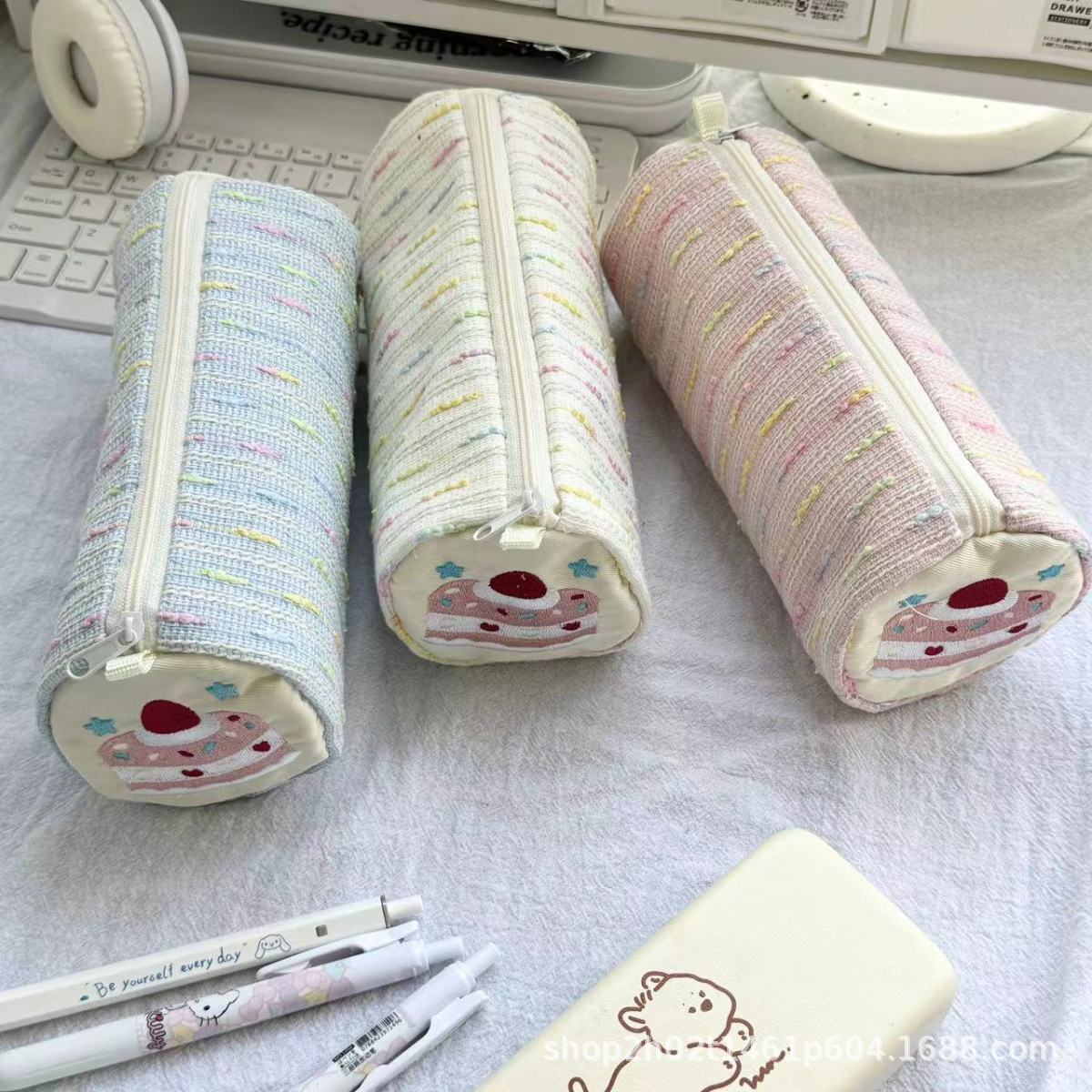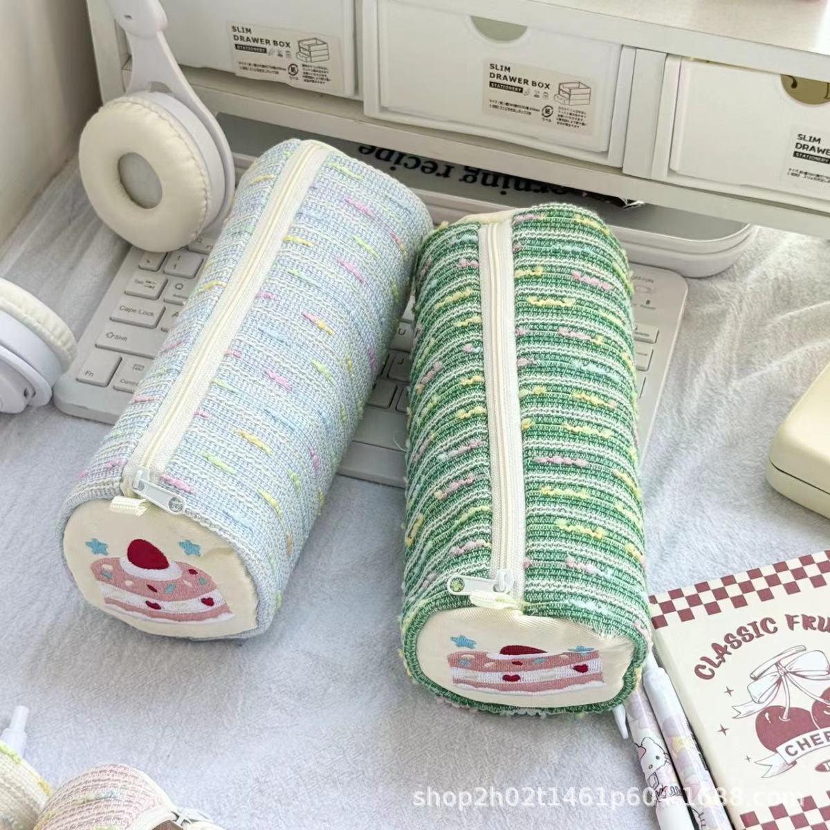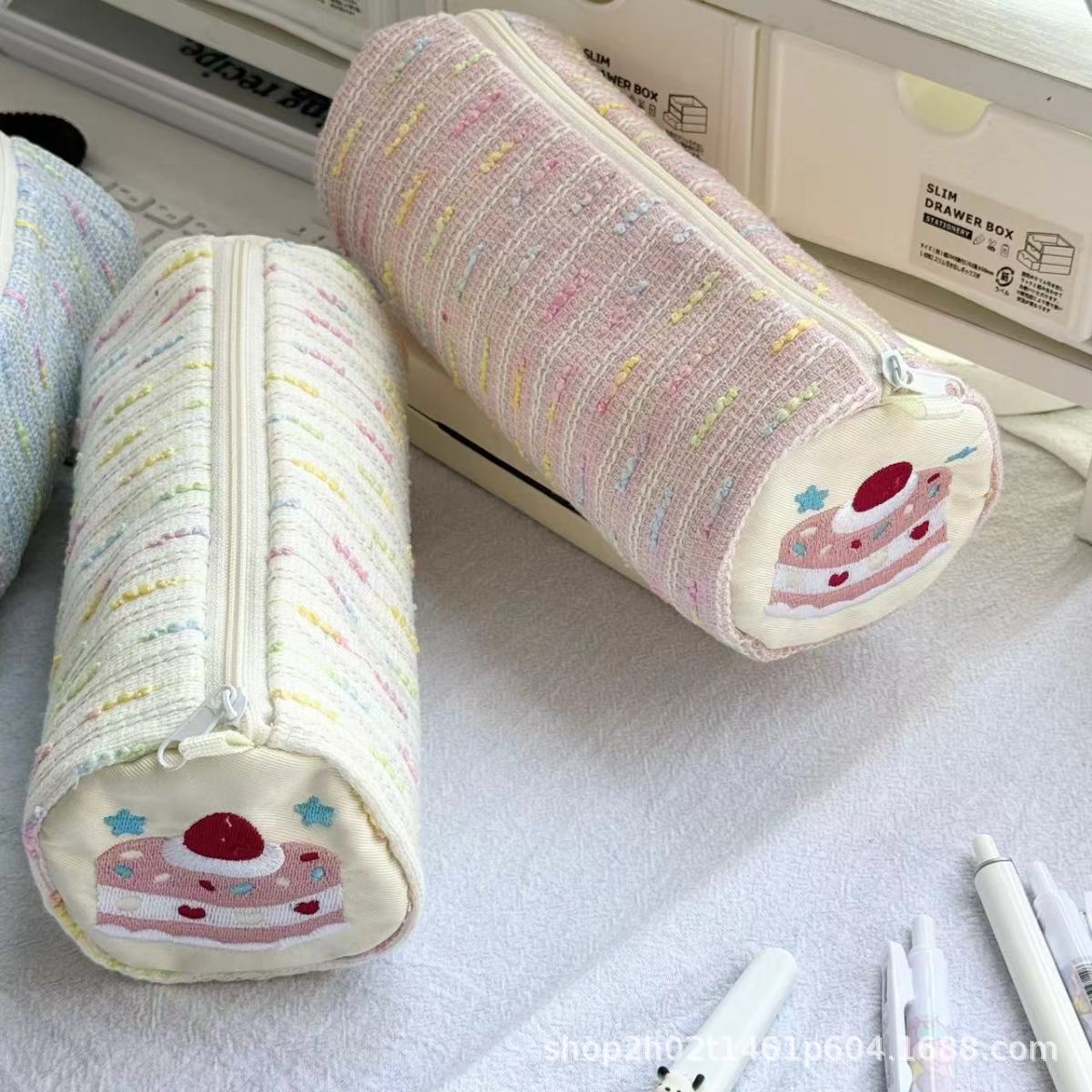 귀여운 딸기 케이크 연필 케이스 대용량 실린더 문구 저장 가방 중학생 여성을위한 작은 신선한 데스크탑 연필 케이스