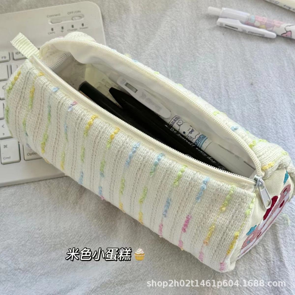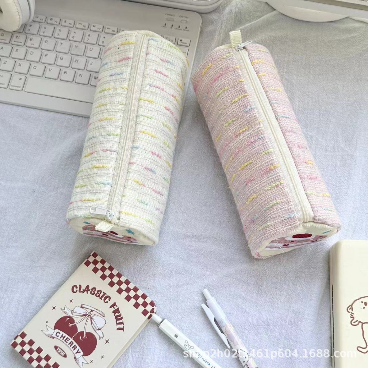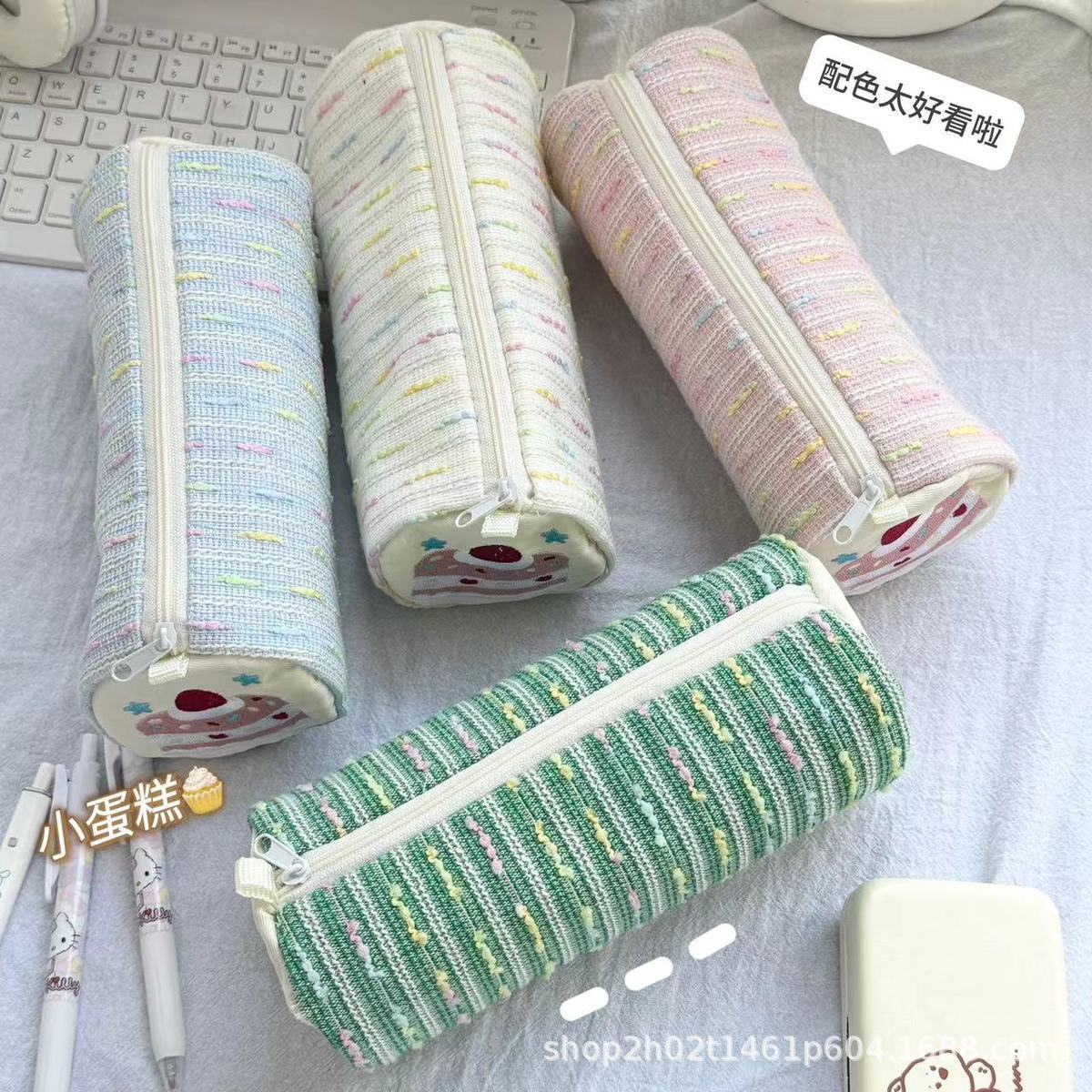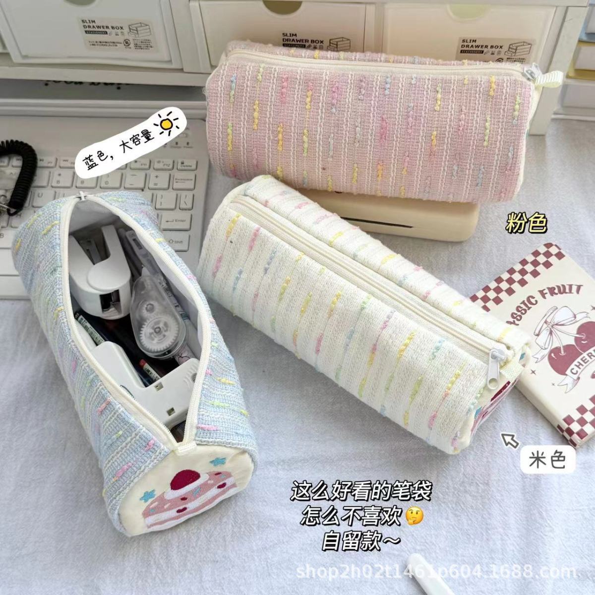 귀여운 딸기 케이크 연필 케이스 대용량 실린더 문구 저장 가방 중학생 여성을위한 작은 신선한 데스크탑 연필 케이스