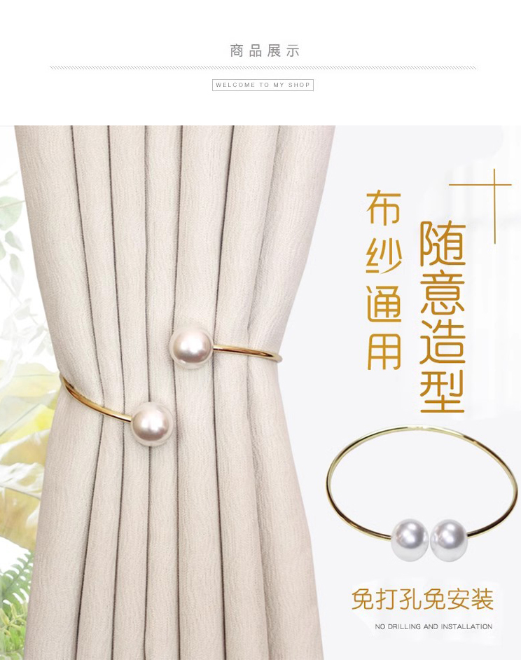 ✧ 가벼운 고급 합금 진주 커튼 버클, 스트랩, 화이트 거즈 커튼, 거실 커튼 클립, 창문 스크린 묶음스토어 가기