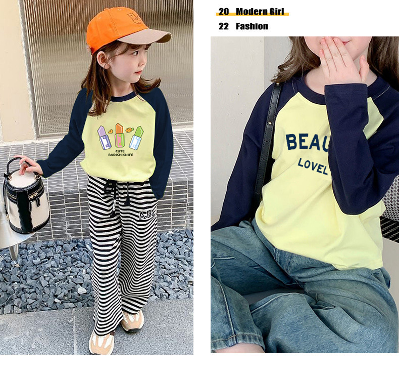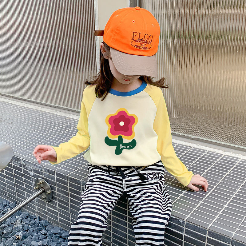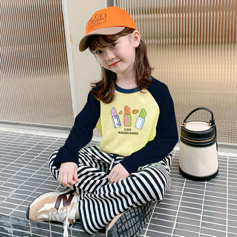 2025 새로운 한국 스타일 서양식 아동베이스 셔츠 소녀 긴 소매 티셔츠 봄과 가을 소녀 아기 아동복 탑 트렌디 T스토어 가기
