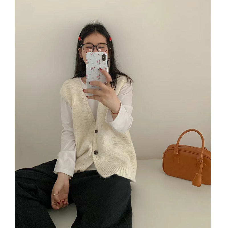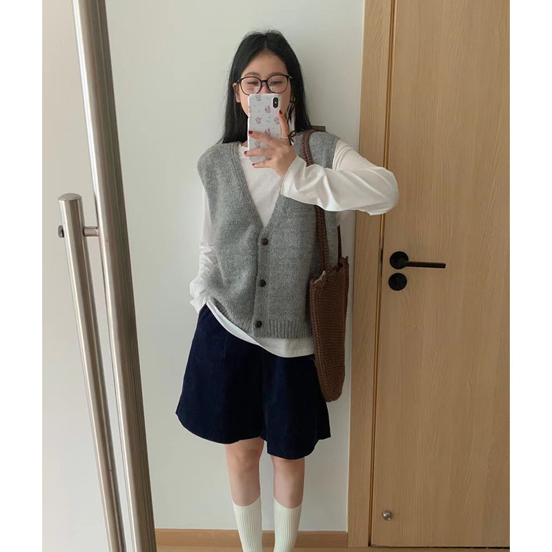 한국 스타일 게으른 스타일 간단한 V 넥 스웨터 조끼 여성 가을 겨울 새로운 오버랩 느슨한 스웨터 조끼스토어 가기