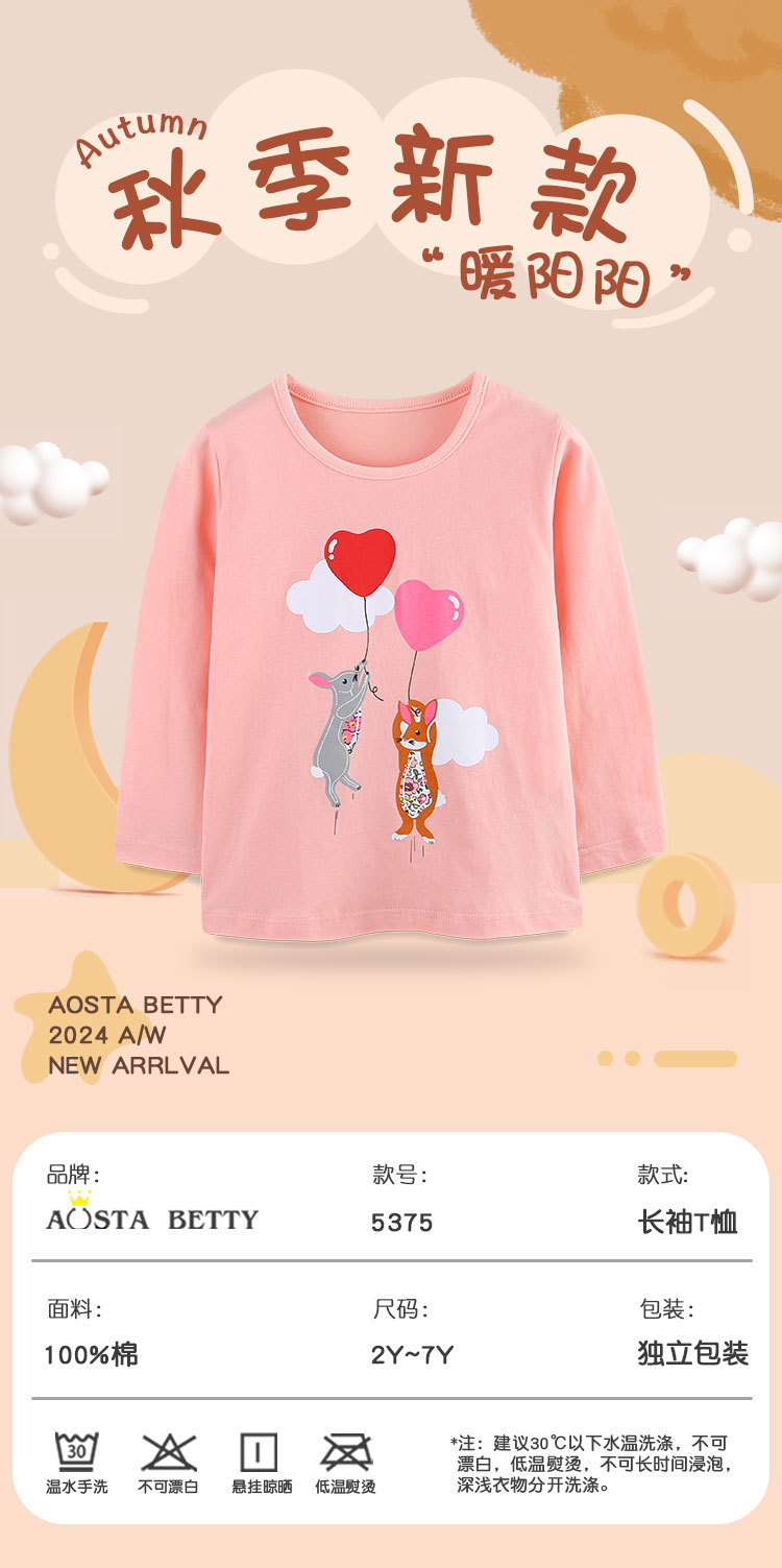 국경 간 아동복 가을 소녀 긴팔 티셔츠 어린이 니트 코튼 크루 넥베이스 셔츠 패션 만화 인쇄 탑