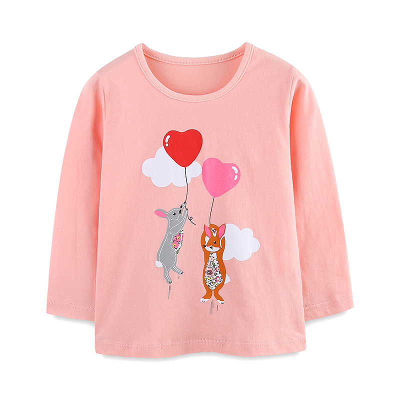 국경 간 아동복 가을 소녀 긴팔 티셔츠 어린이 니트 코튼 크루 넥베이스 셔츠 패션 만화 인쇄 탑스토어 가기