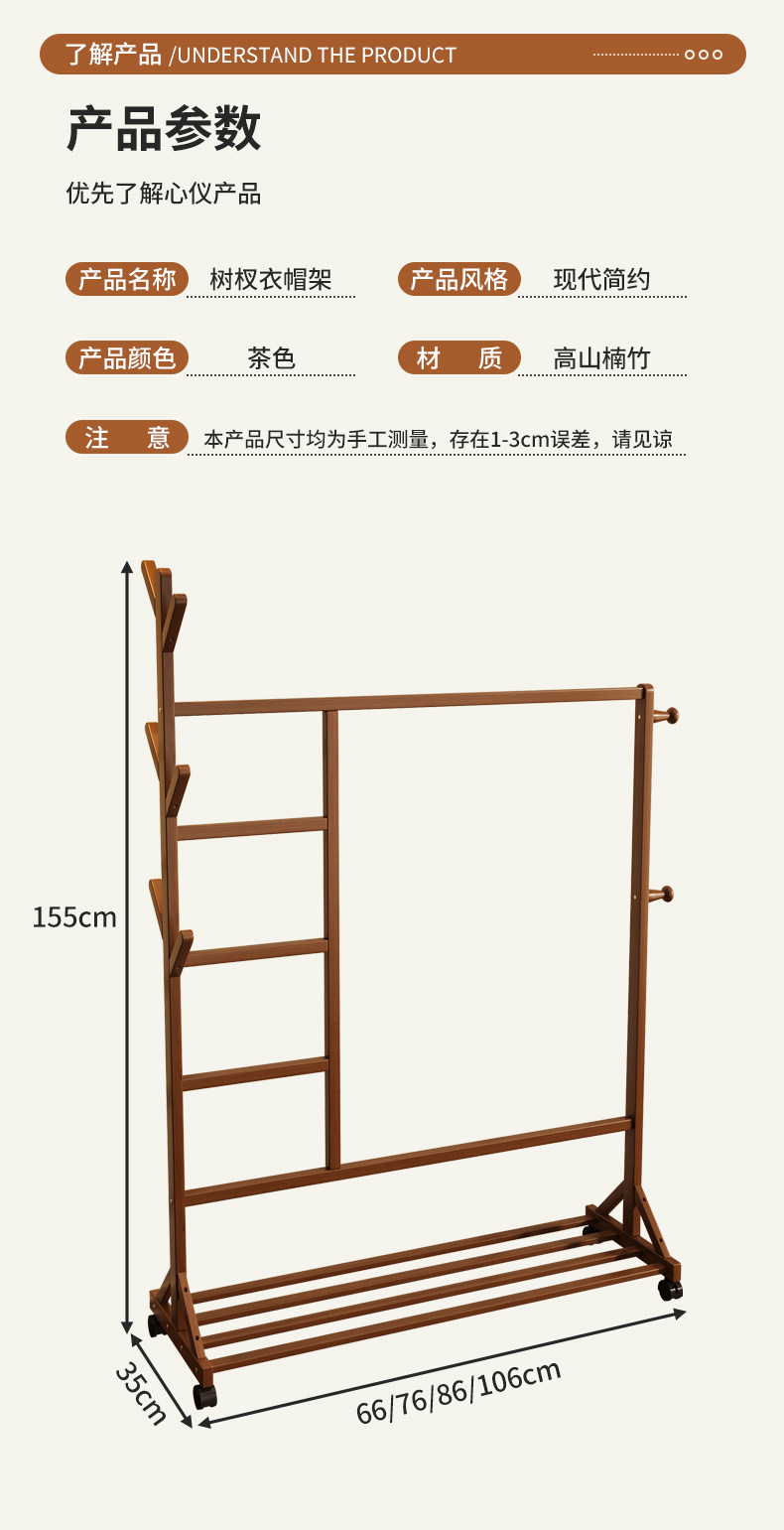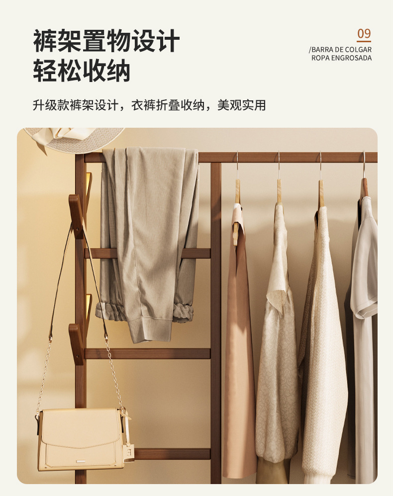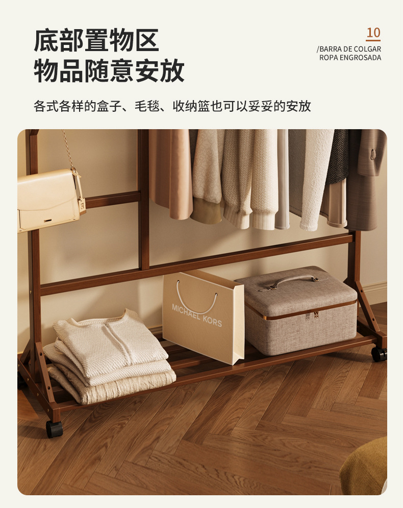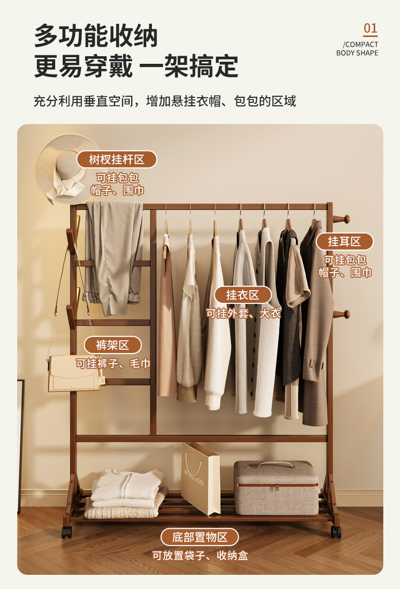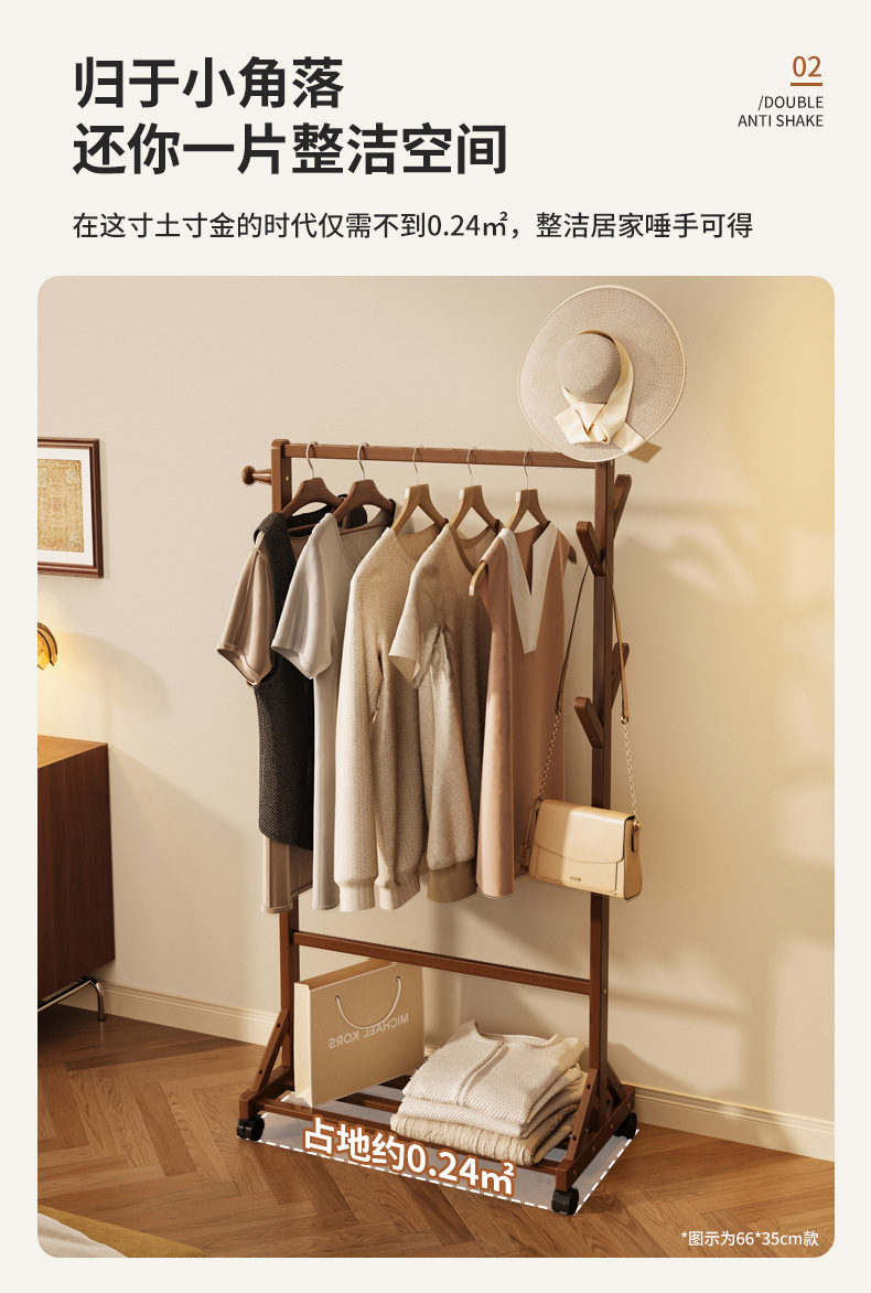 바닥 걸이 단단한 나무 건조 랙 간단한 코트 랙 침실 방 임대 홈 교수형 옷 선반 모바일 거실스토어 가기