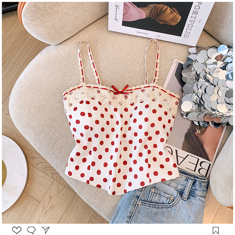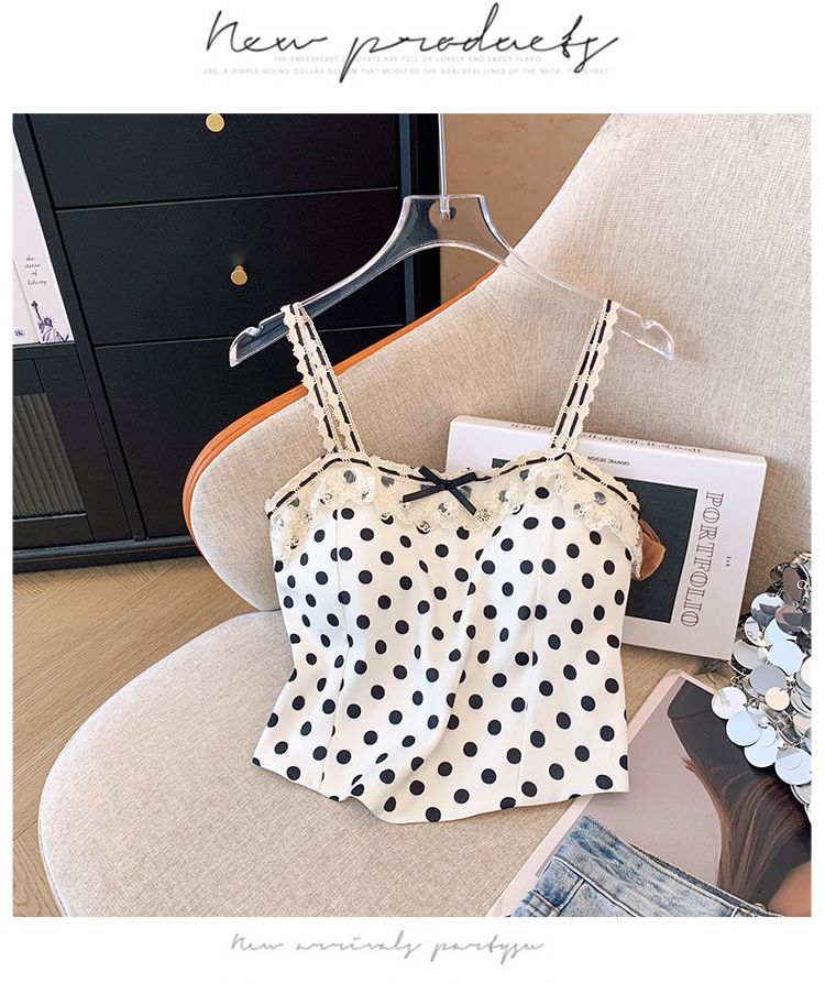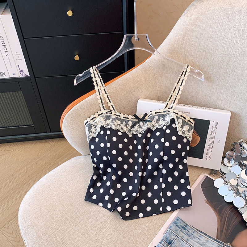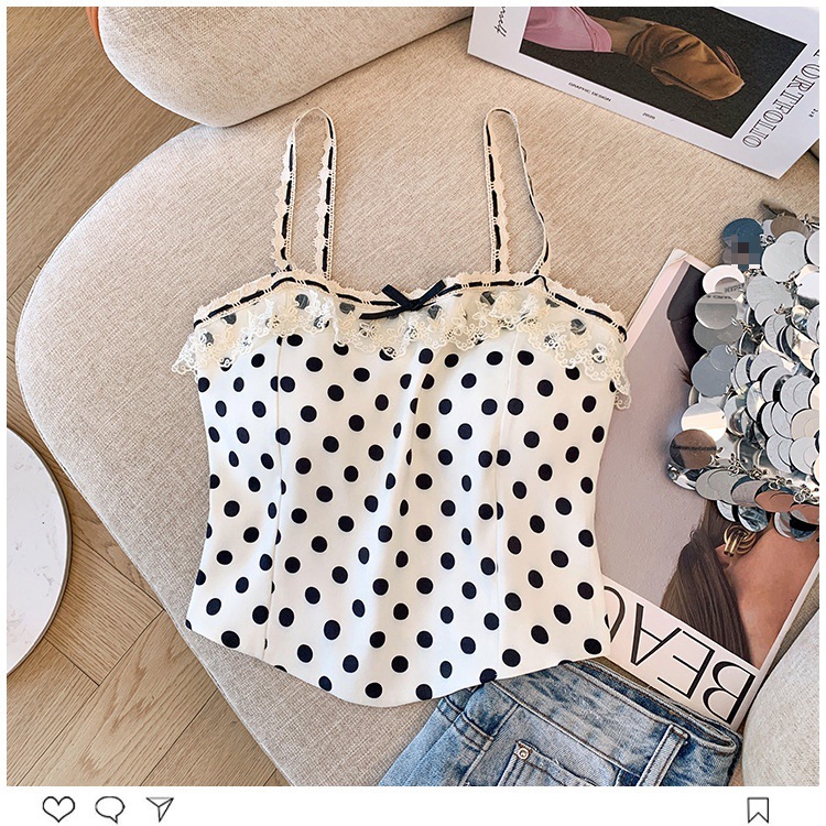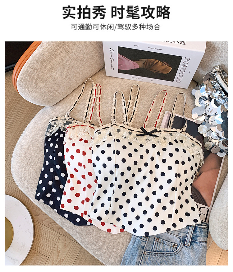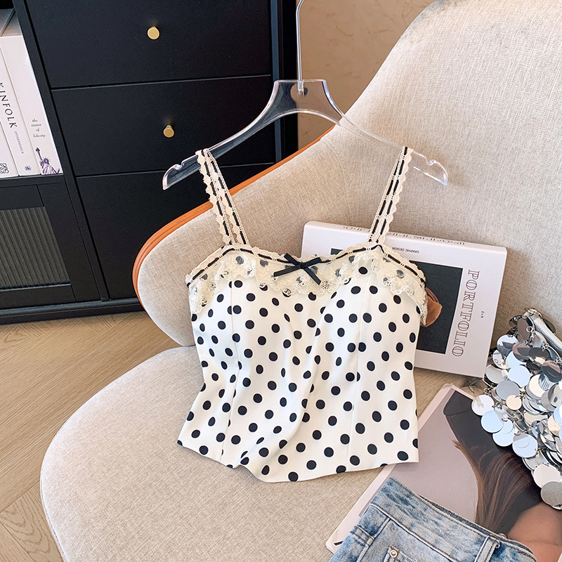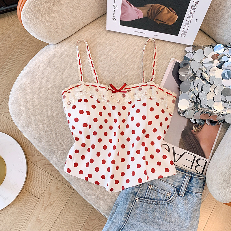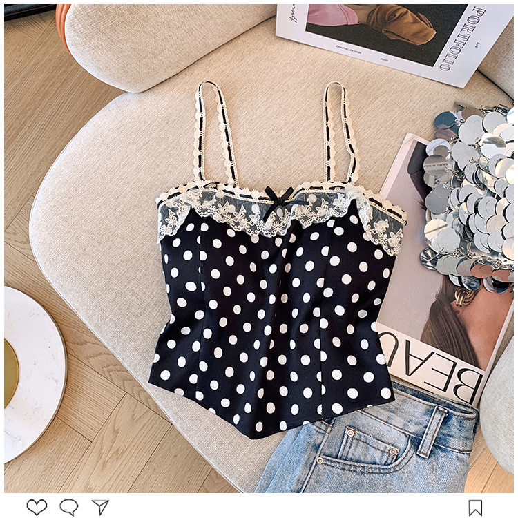 프랑스 스타일 레이스 활 디자인 틈새 섹시한 매운 카미 솔 조끼 여성 내부 착용 민소매 폴트 도트 탑스토어 가기