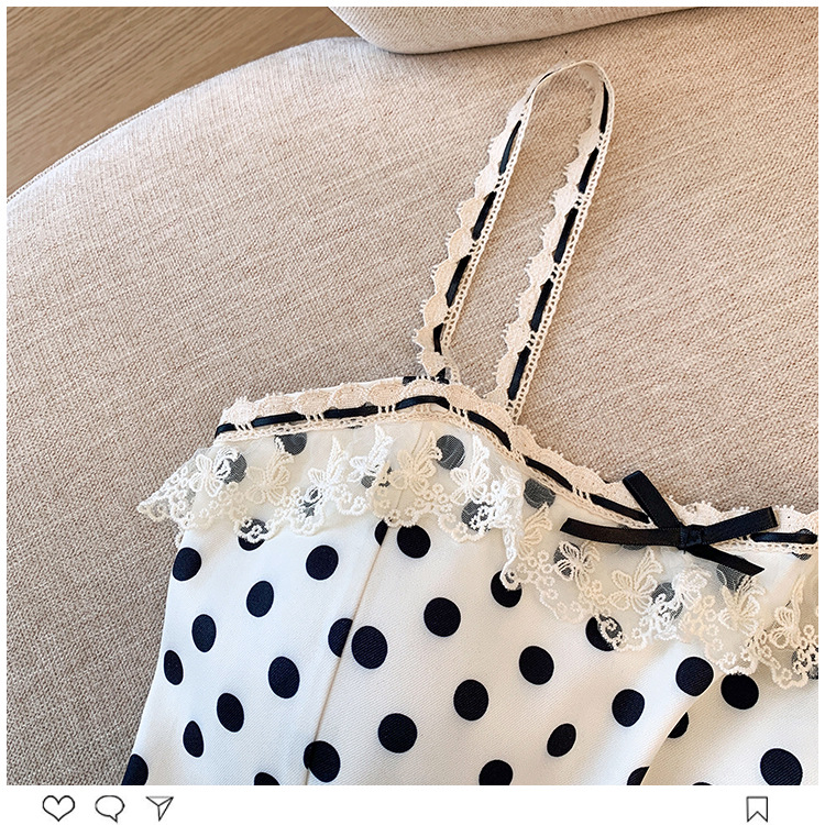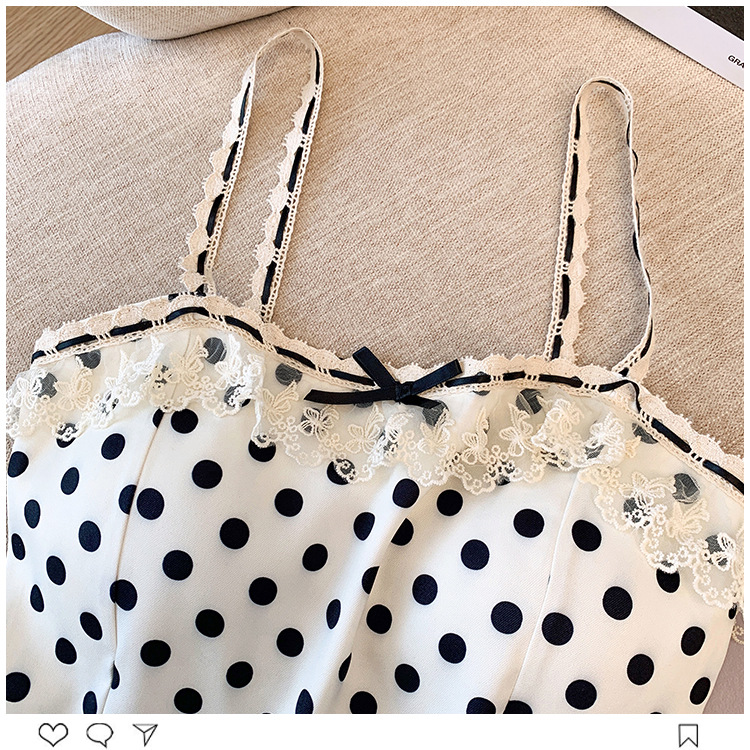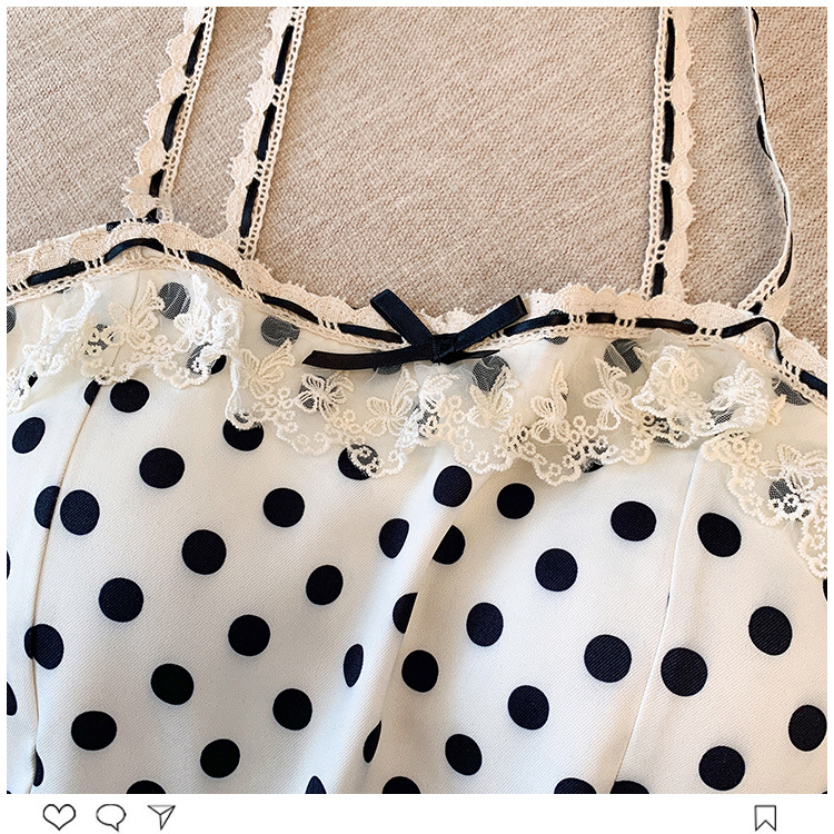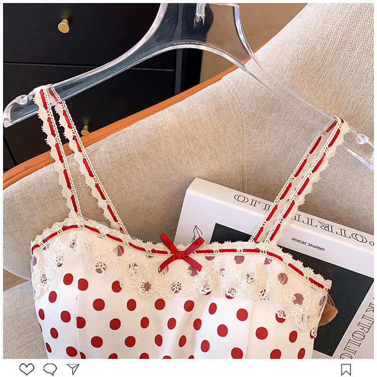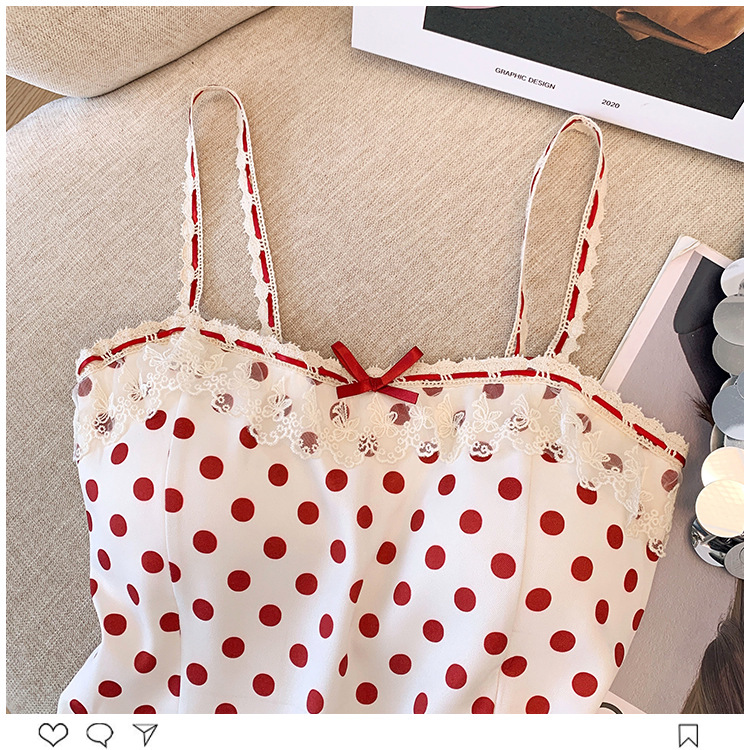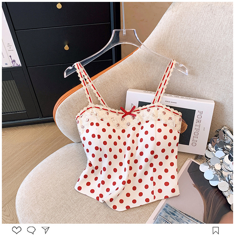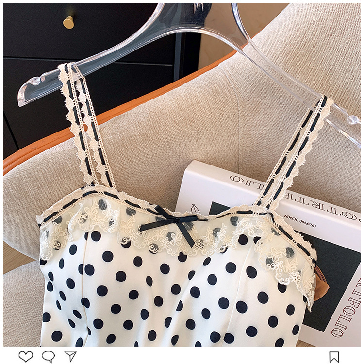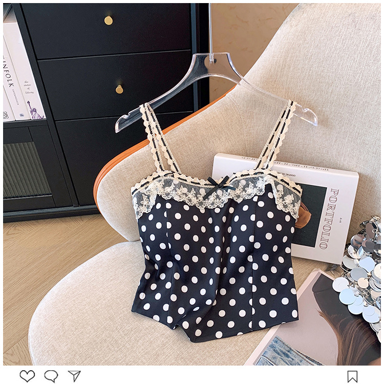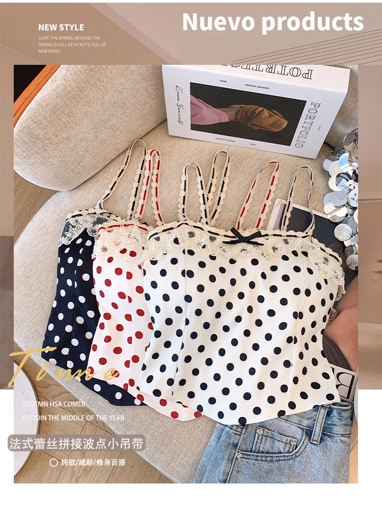 프랑스 스타일 레이스 활 디자인 틈새 섹시한 매운 카미 솔 조끼 여성 내부 착용 민소매 폴트 도트 탑스토어 가기