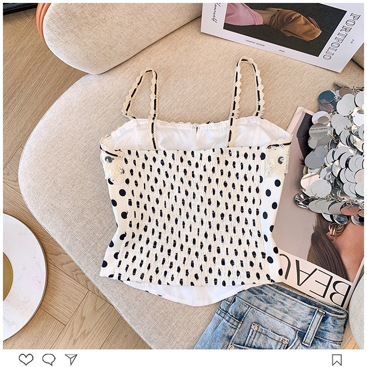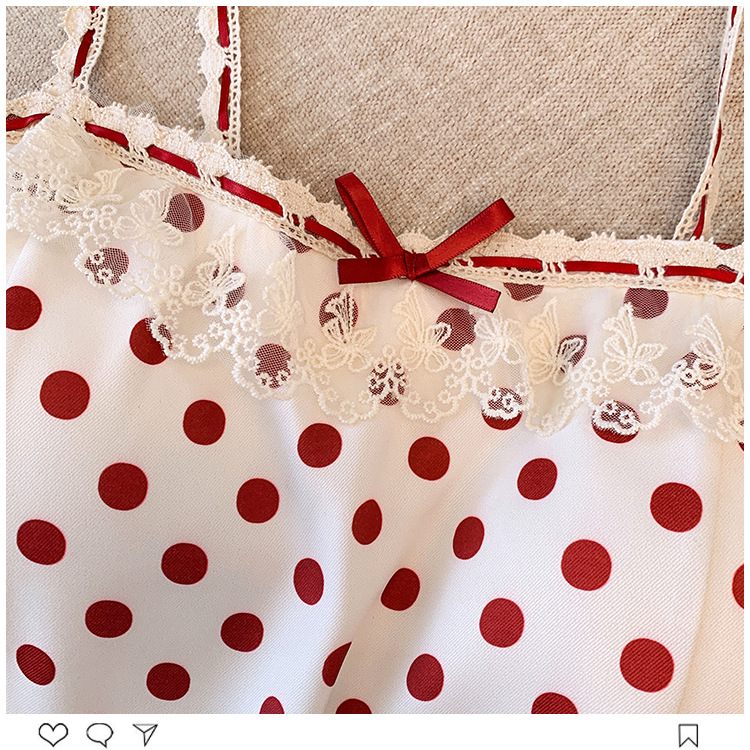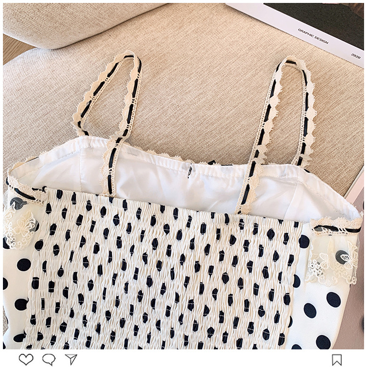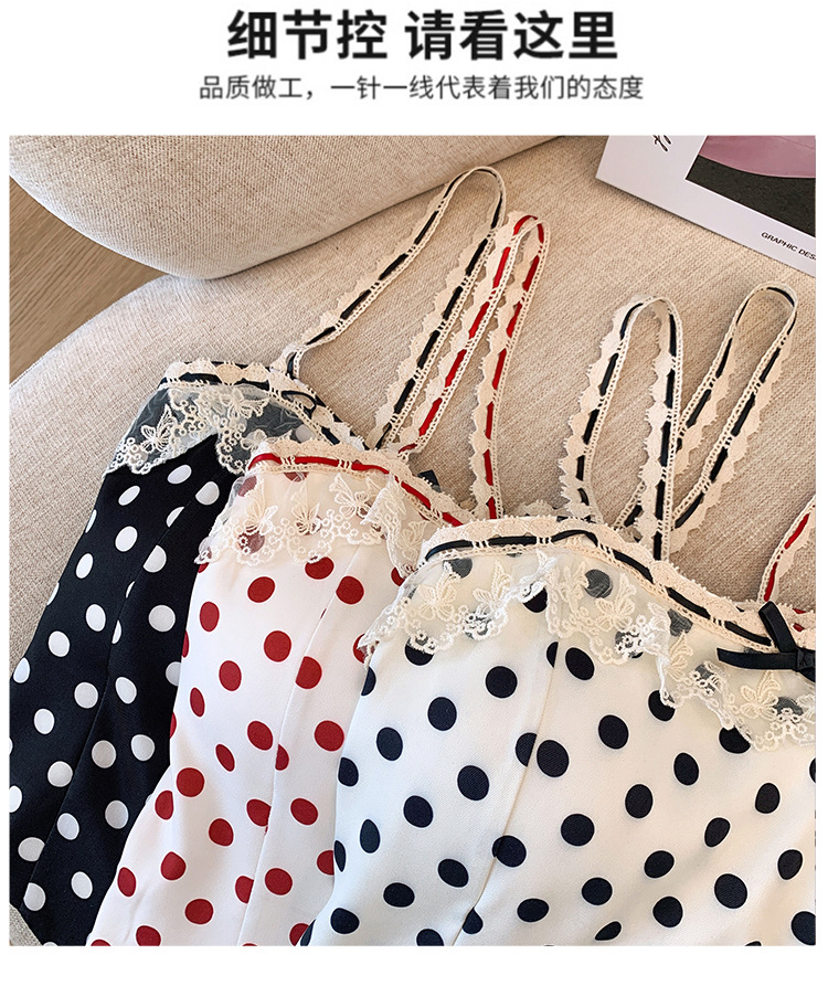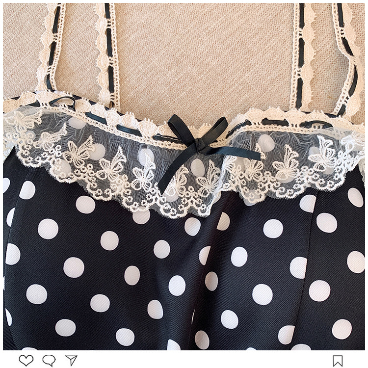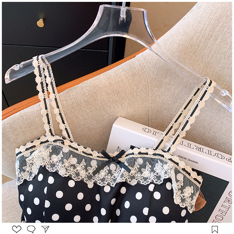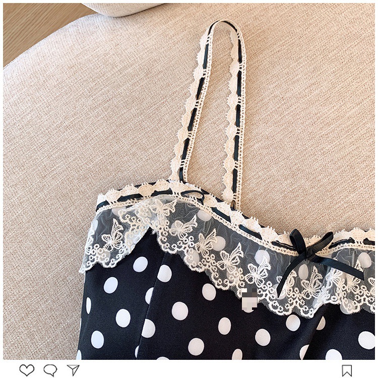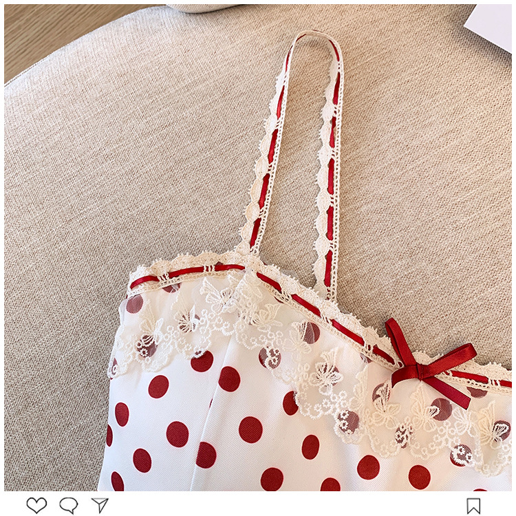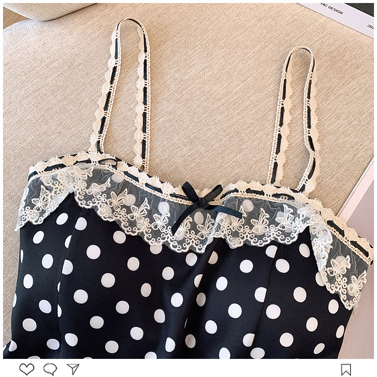 프랑스 스타일 레이스 활 디자인 틈새 섹시한 매운 카미 솔 조끼 여성 내부 착용 민소매 폴트 도트 탑스토어 가기
