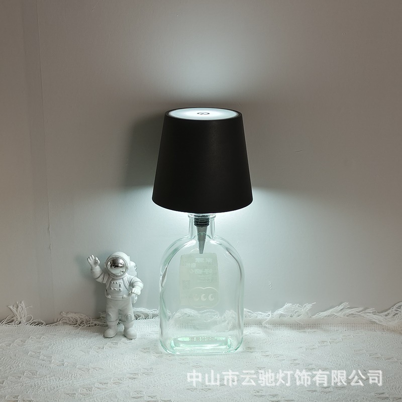 국경 간 뾰족한 플러그인 충전식 와인 병 램프 RGB 3 색 아마존 터치 분위기 램프 분위기 테이블 램프 도매