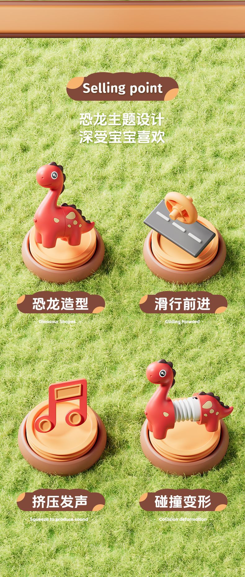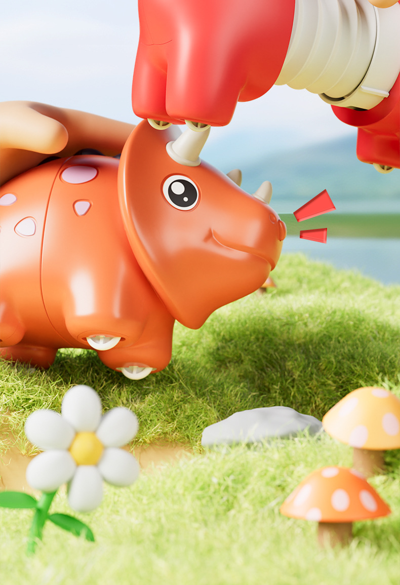 어린이 장난감 만화 공룡 슬라이딩 개폐식 작은 공룡 장난감 귀여운 재미있는 공룡 트리케라톱스 변형 장난감 도매스토어 가기