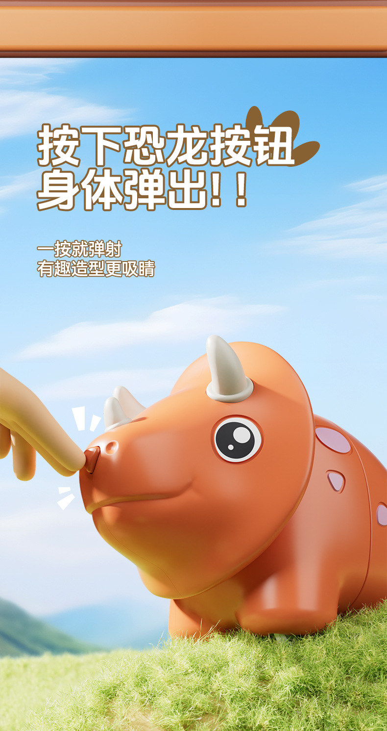 어린이 장난감 만화 공룡 슬라이딩 개폐식 작은 공룡 장난감 귀여운 재미있는 공룡 트리케라톱스 변형 장난감 도매