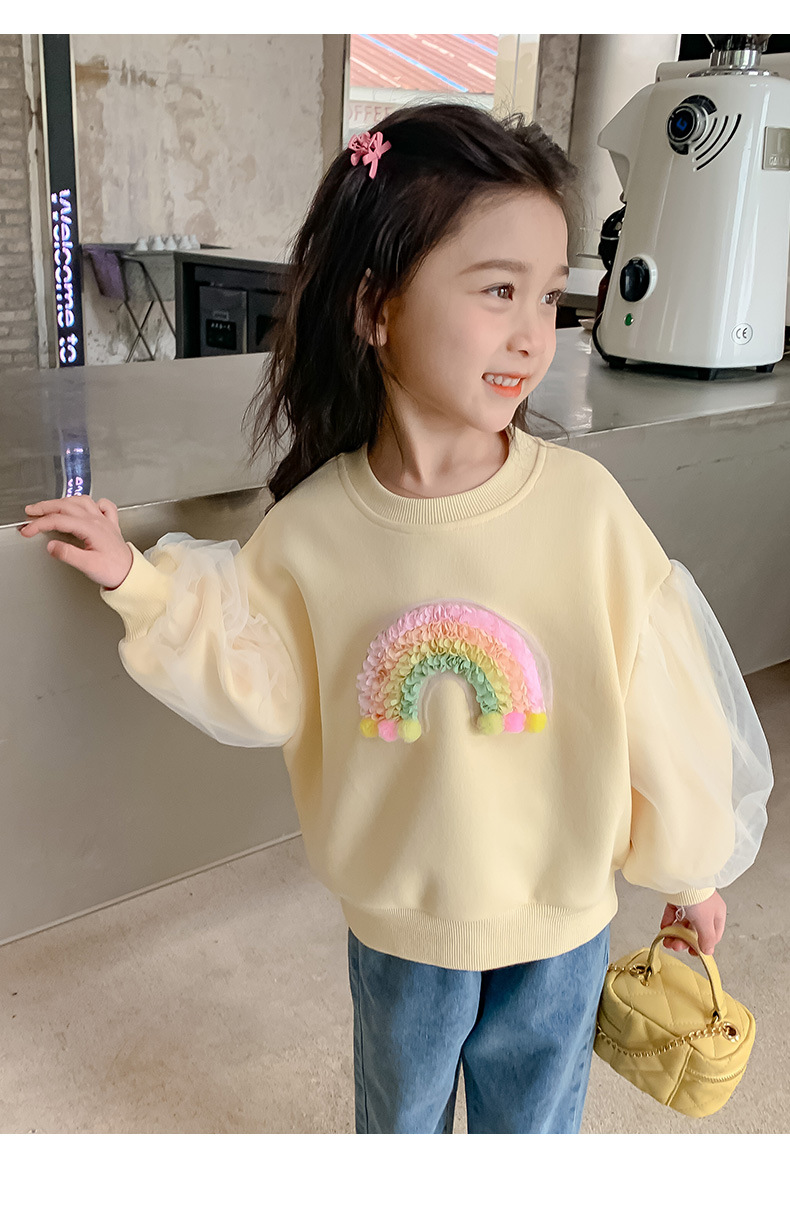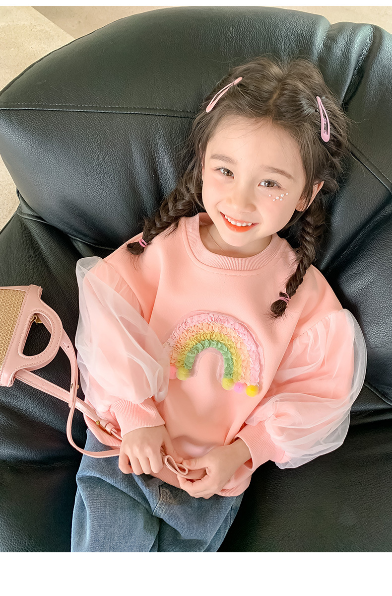 2024 새로운 가을 소녀 땀 3 차원 무지개 귀여운 인쇄 긴 소매 여성의 아기 온라인 인기 올 매치 트렌디스토어 가기