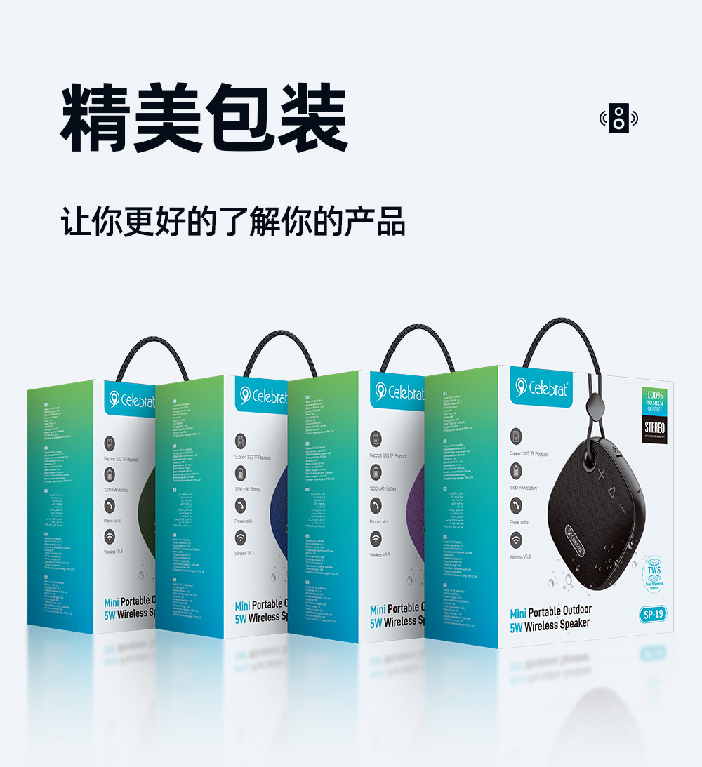 새로운 휴대용 스포츠 블루투스 스테레오 미니 카드베이스 무선 음악 스피커 SP-19 축하
