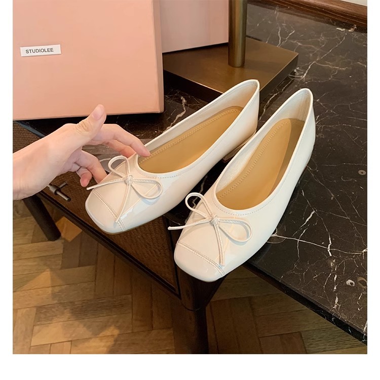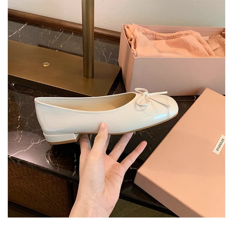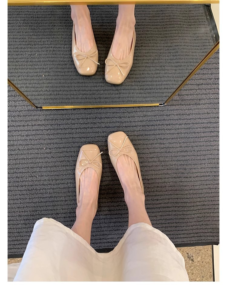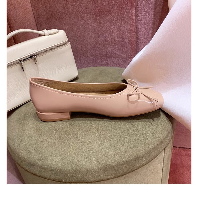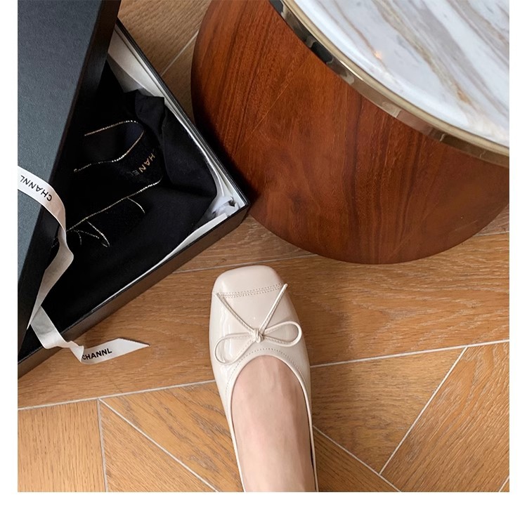 프렌치 캐주얼, 달콤한 기질, 통근용 다용도 리본, 스퀘어토, 작은 두꺼운 굽, 여성용 발레 스타일 슈즈