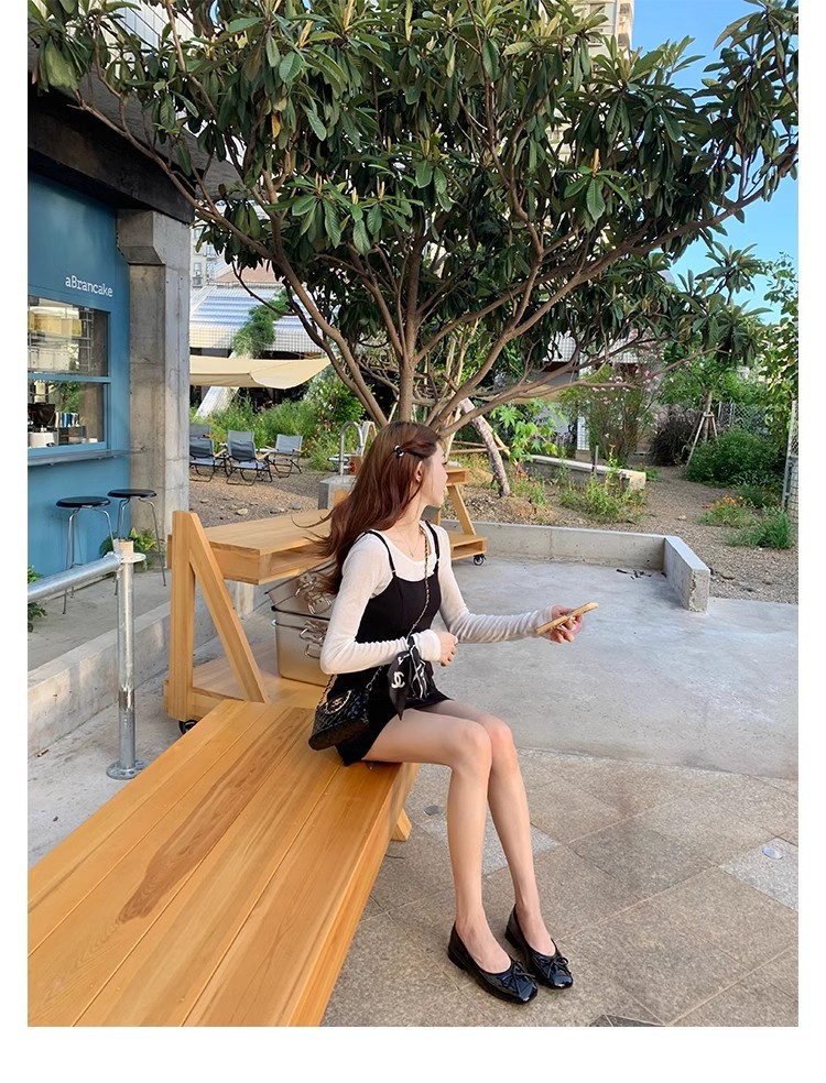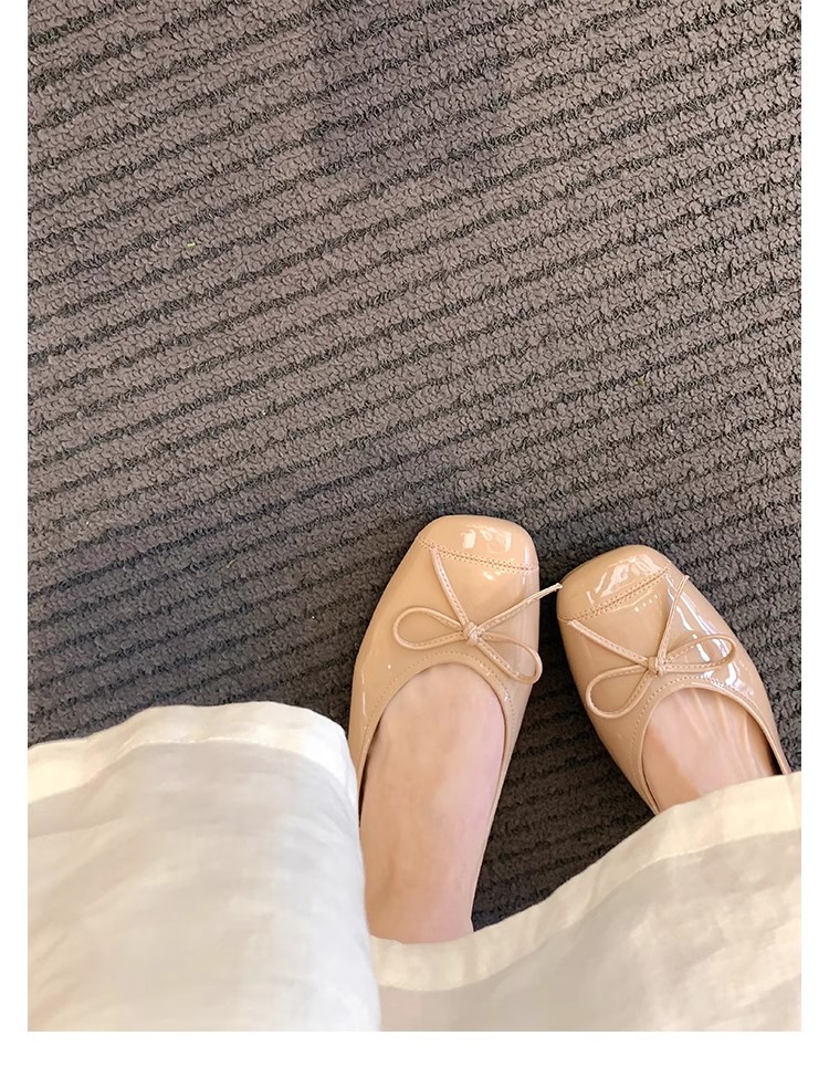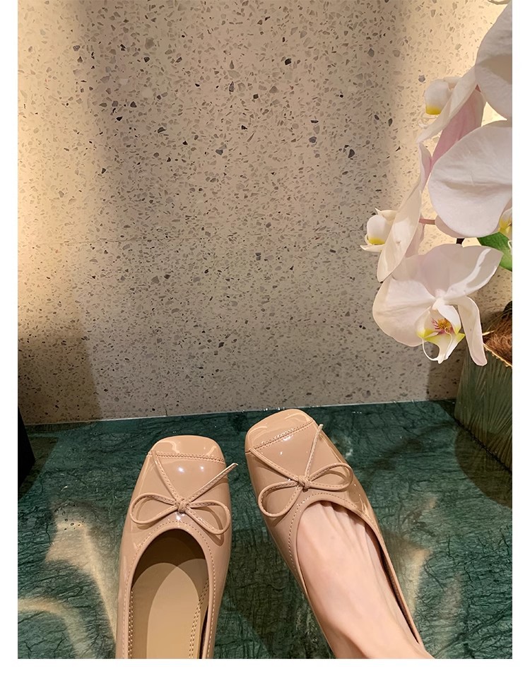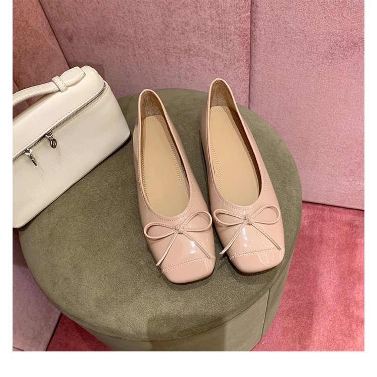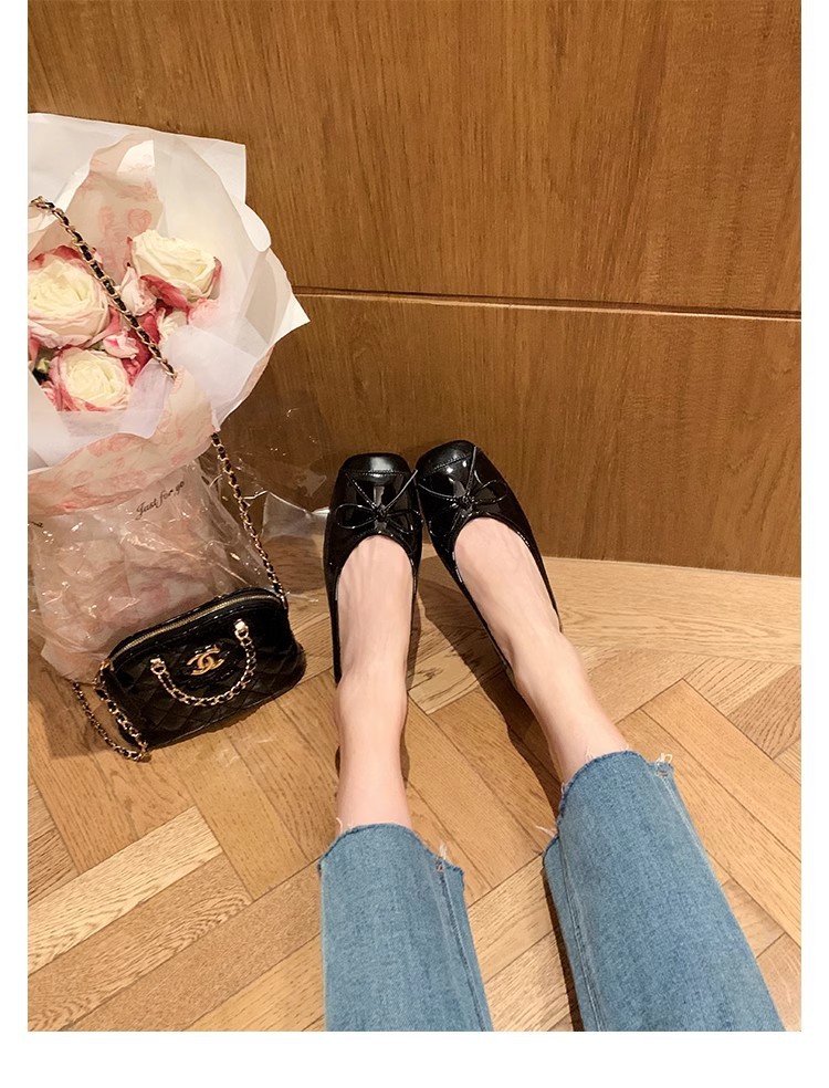 프렌치 캐주얼, 달콤한 기질, 통근용 다용도 리본, 스퀘어토, 작은 두꺼운 굽, 여성용 발레 스타일 슈즈