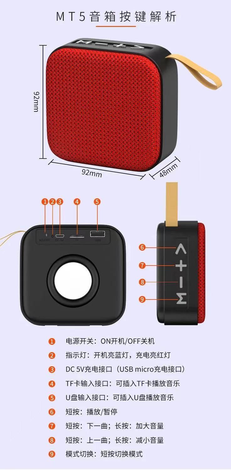 T5 블루투스 스피커 직물 휴대용 서브 우퍼 무선 휴대 전화 컴퓨터 미니 사운드 야외 카드 작은 소리스토어 가기