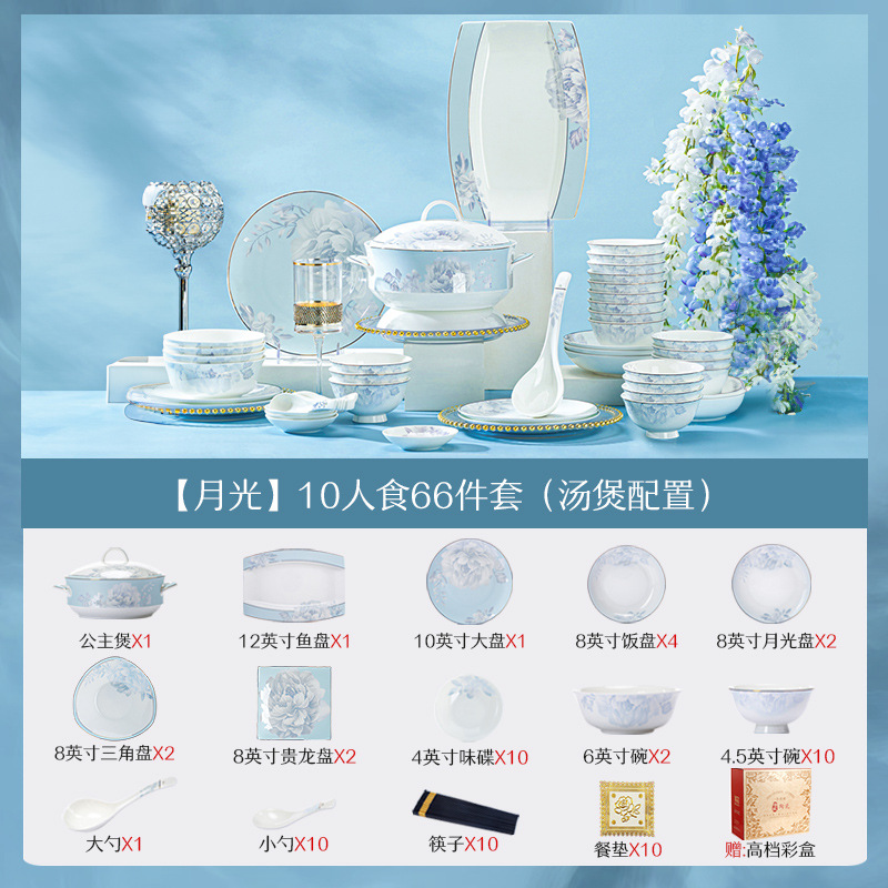 • [선물박스] 80% 가족이 선택하는 달빛 10인 식사 56개 표준 공주냄비 포함 [식기세척기, 전자레인지 사용 가능]