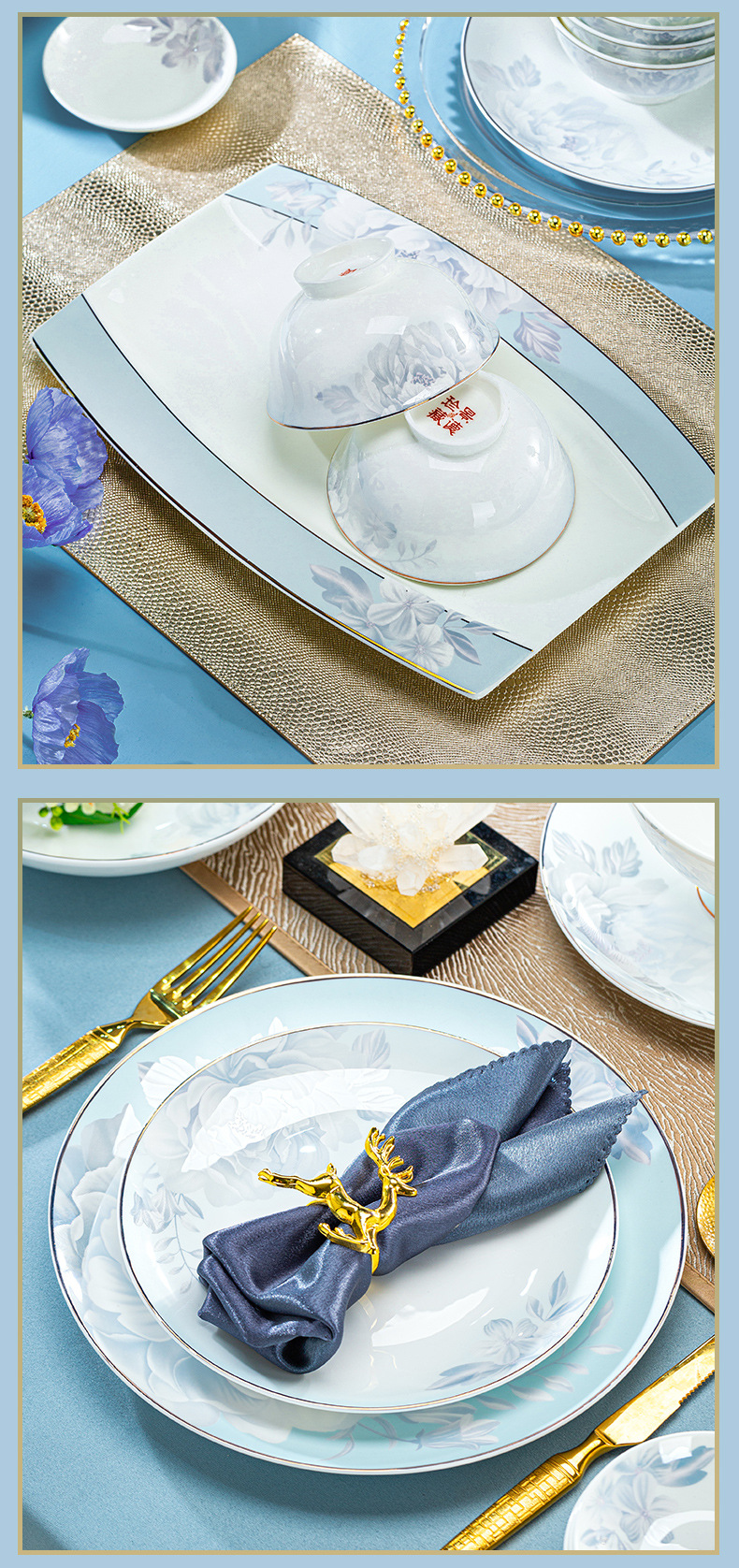 그릇과 접시 세트 가정용 가벼운 고급 중국 세라믹 식기 세트 2024 새로운 Jingdezhen 집들이 그릇, 접시 및 젓가락 조합