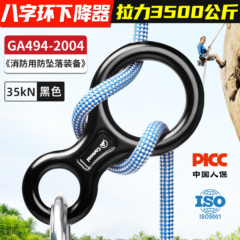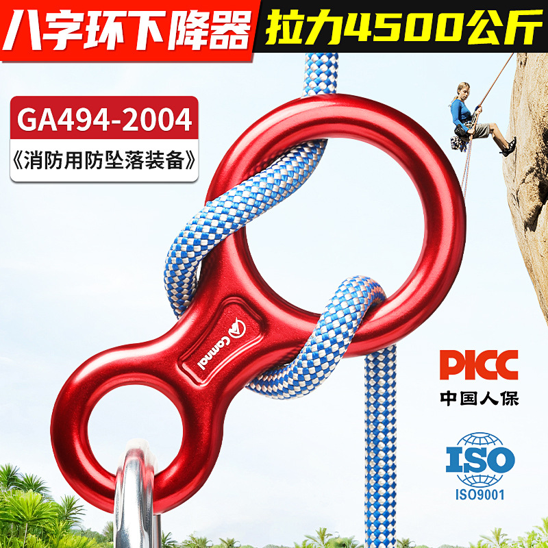 8 캐릭터 링 하강 장치 높은 고도 안전 로프 하강 장치 빠른 하강 바위 등반 로프 하강 가정용 생명을 구하는 구조 장비