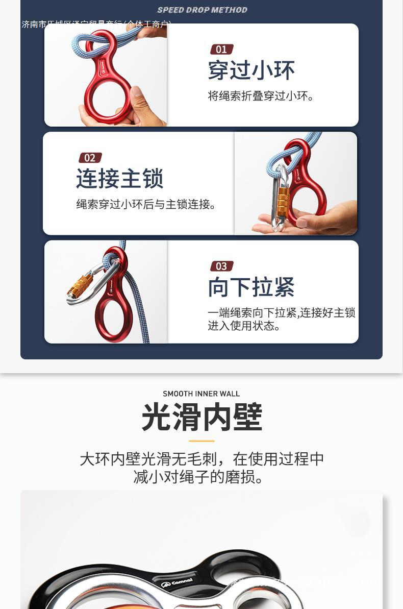 8 캐릭터 링 하강 장치 높은 고도 안전 로프 하강 장치 빠른 하강 바위 등반 로프 하강 가정용 생명을 구하는 구조 장비스토어 가기