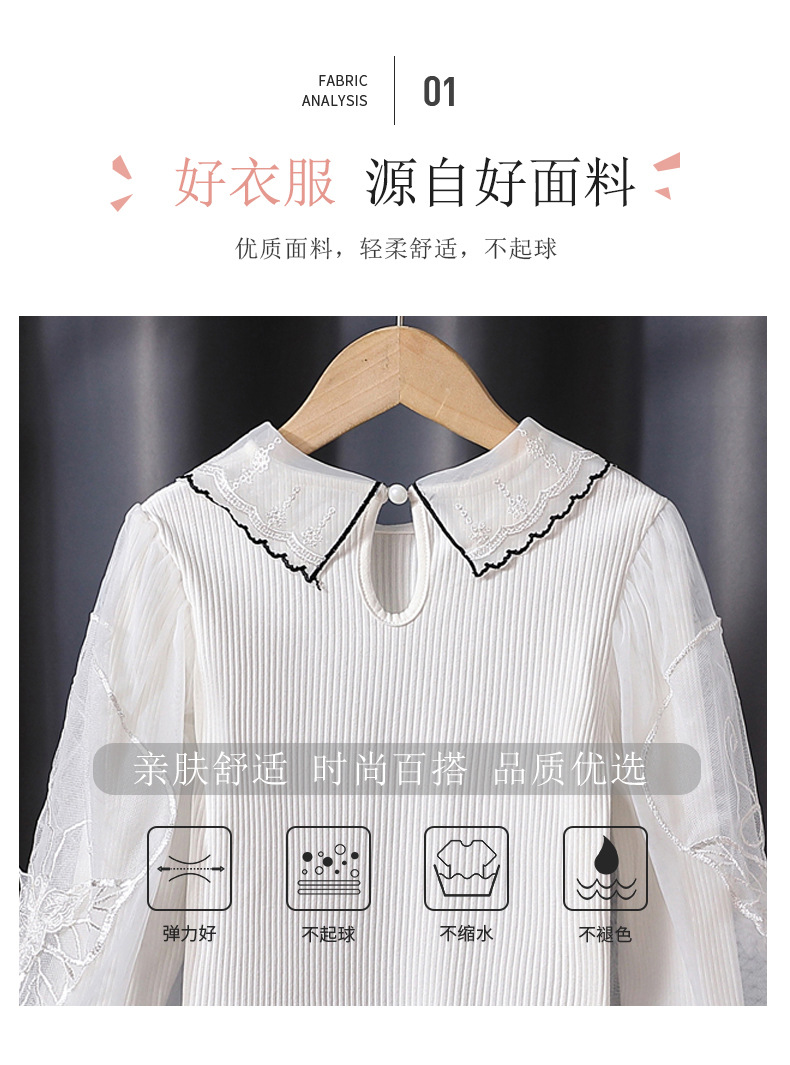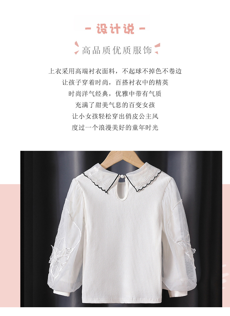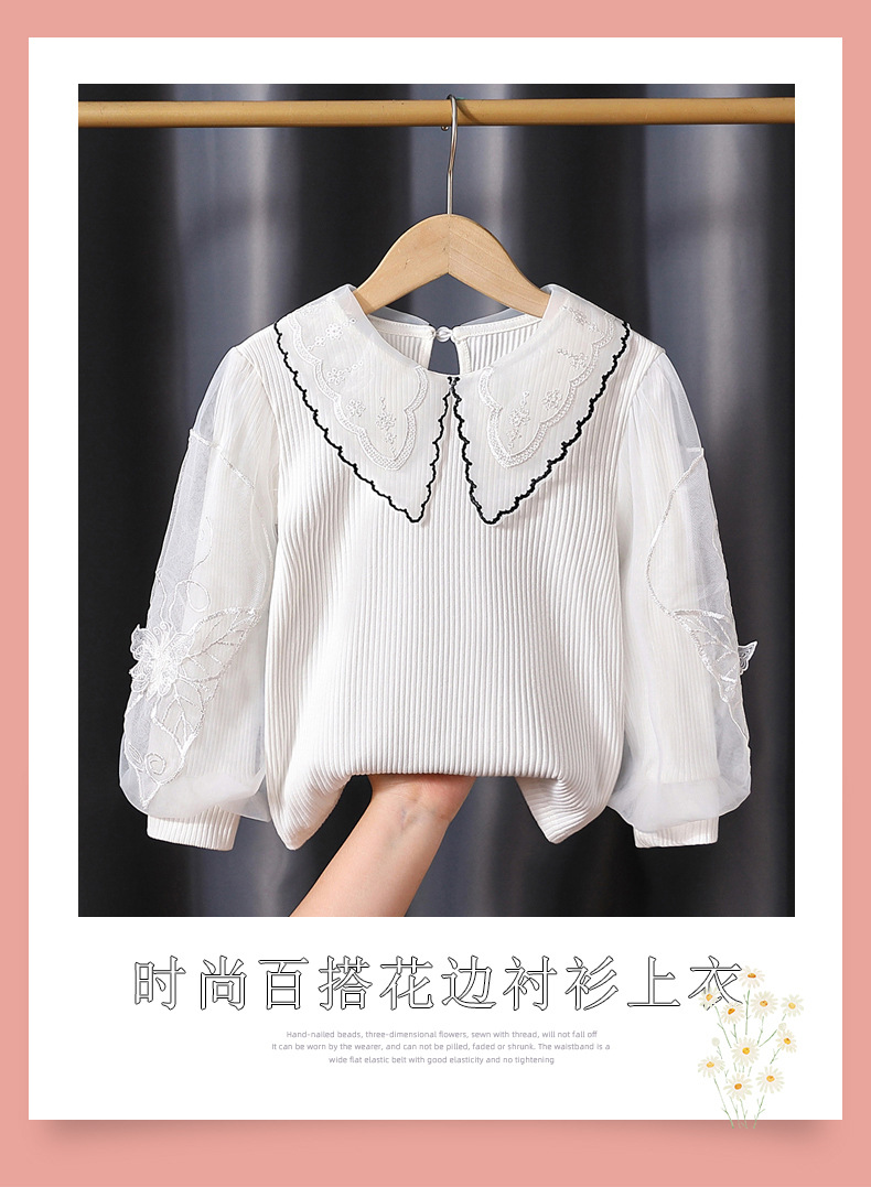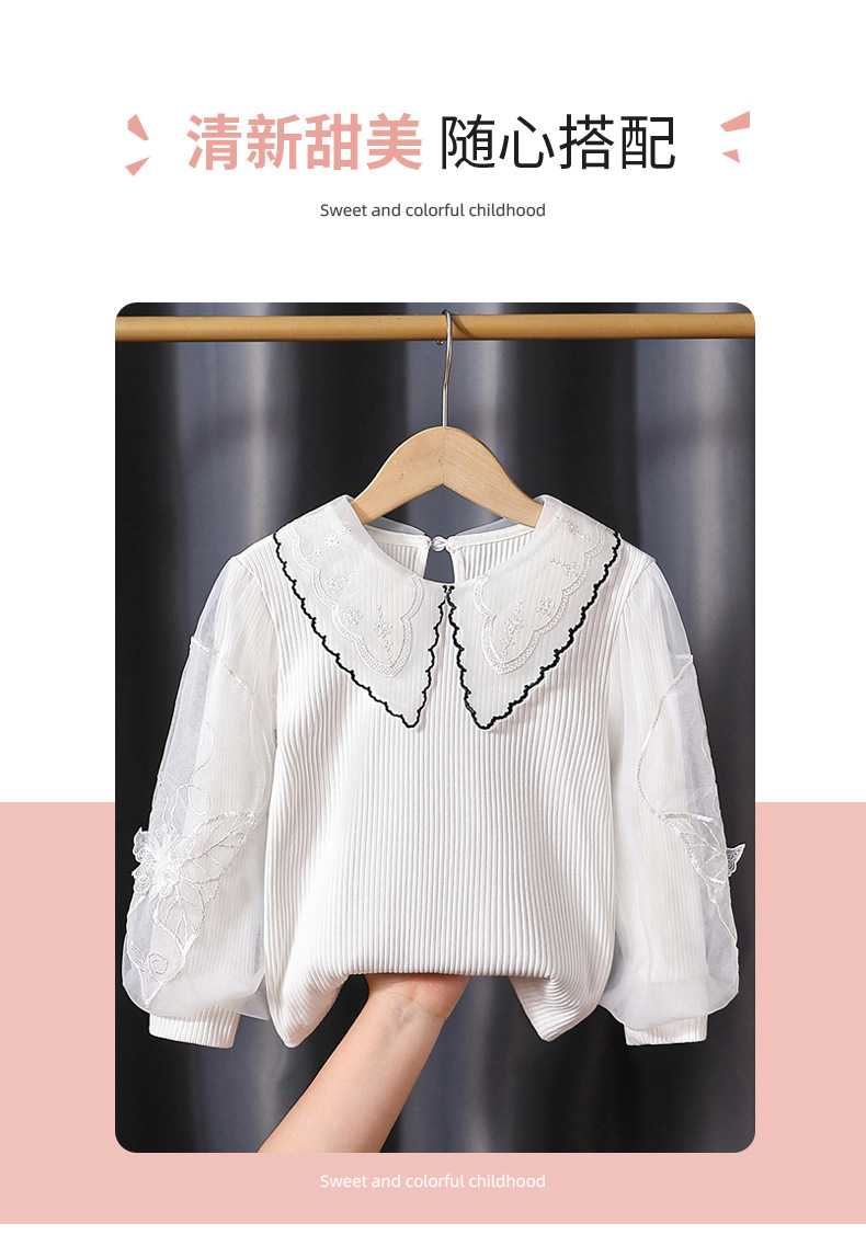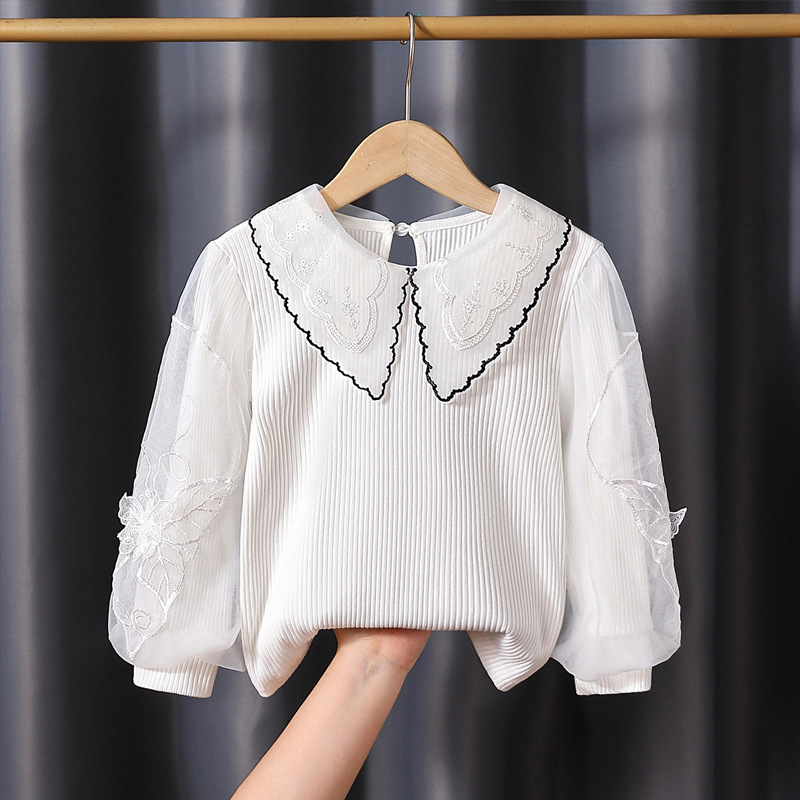 하이 엔드 소녀 봄과 가을 버블 긴 소매 레이스 레이스 티셔츠 어린이 소녀 패션 레이스 옷깃 서양식 탑 4