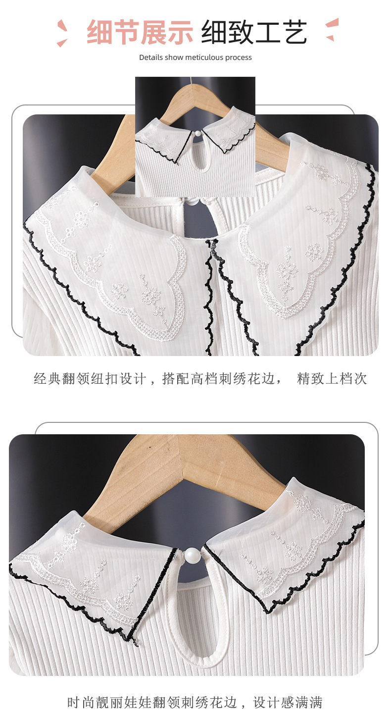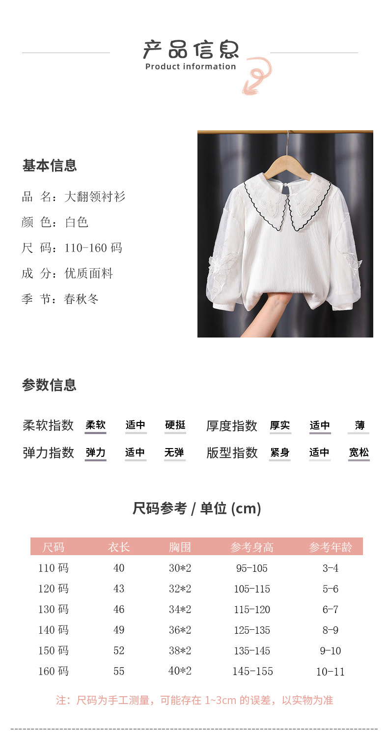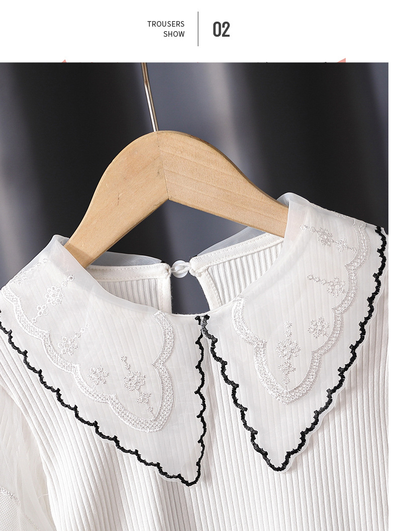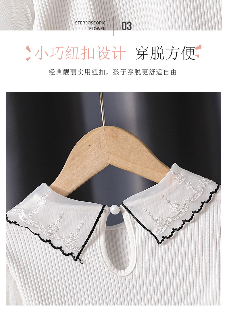 하이 엔드 소녀 봄과 가을 버블 긴 소매 레이스 레이스 티셔츠 어린이 소녀 패션 레이스 옷깃 서양식 탑 4