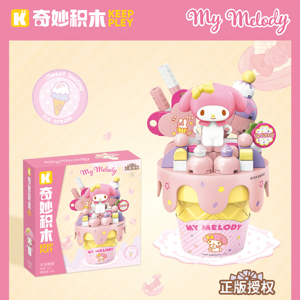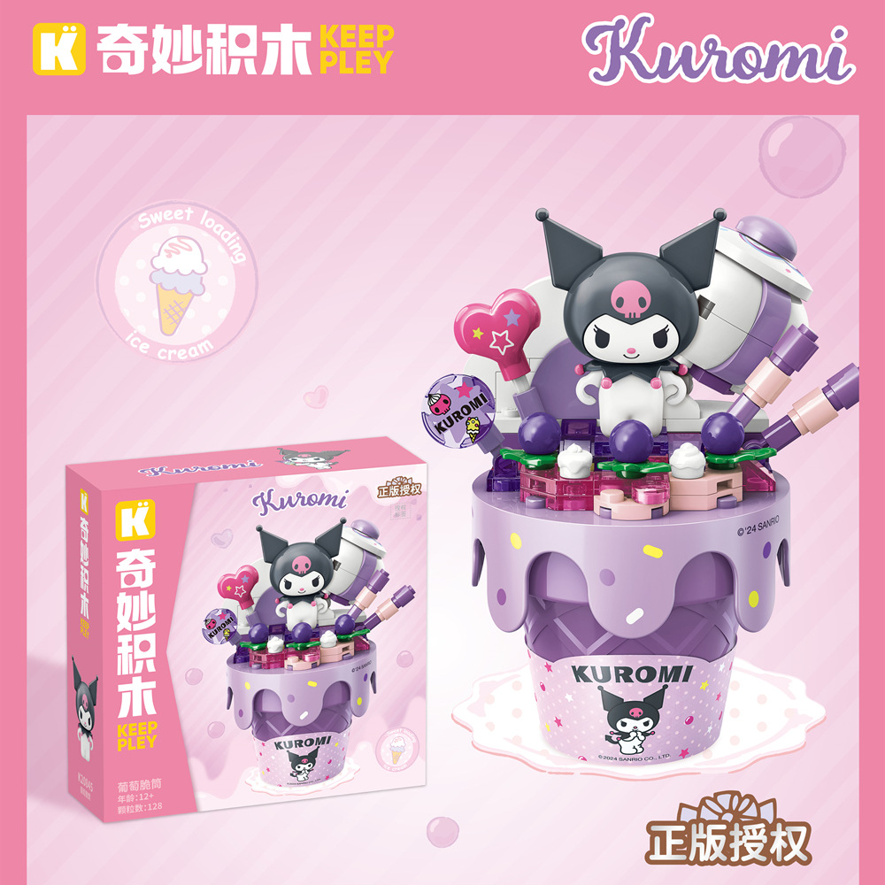 Keeppley 멋진 빌딩 블록 Sanrio Magic Circus Kuromi 장식품 여성 손 모델 조립 장난감스토어 가기