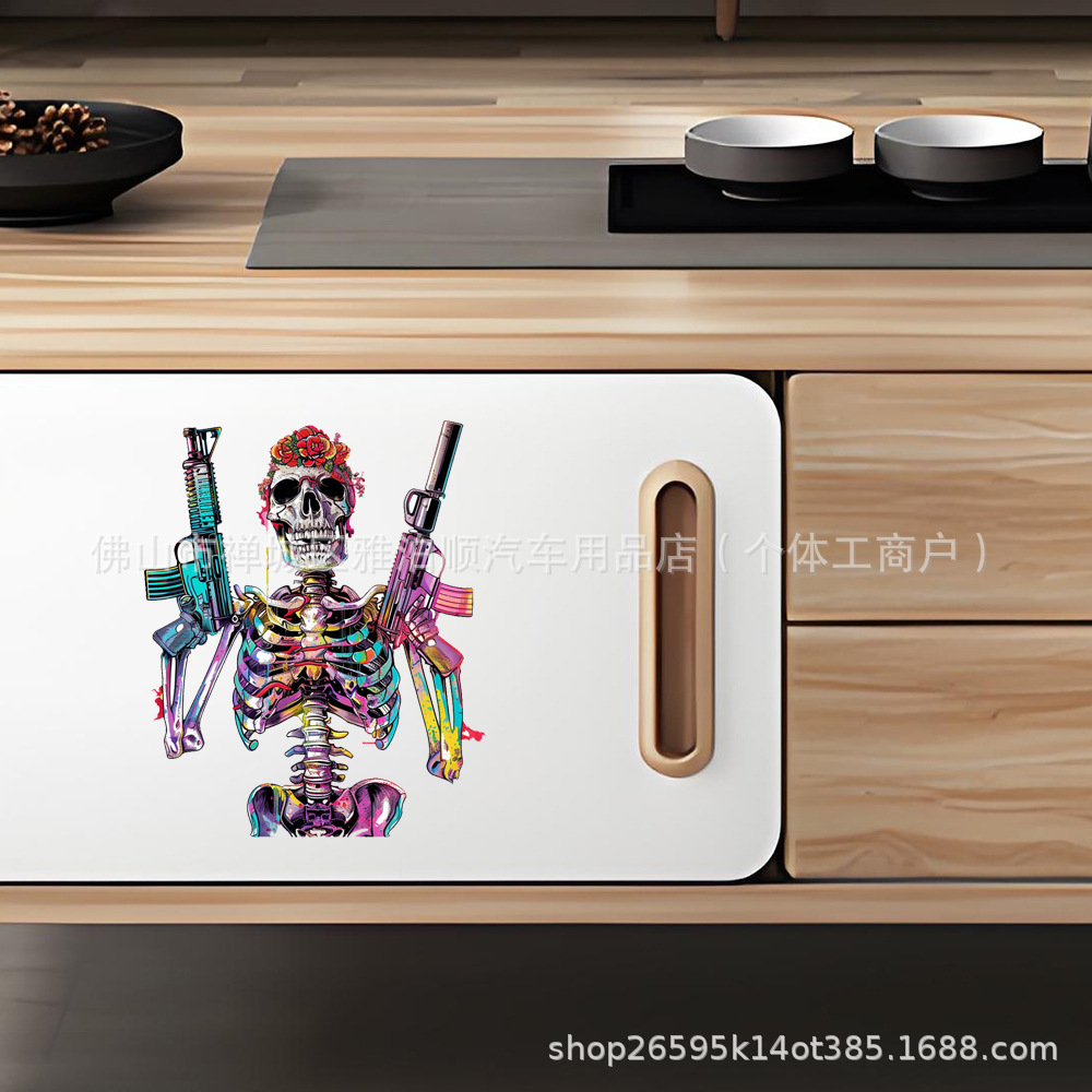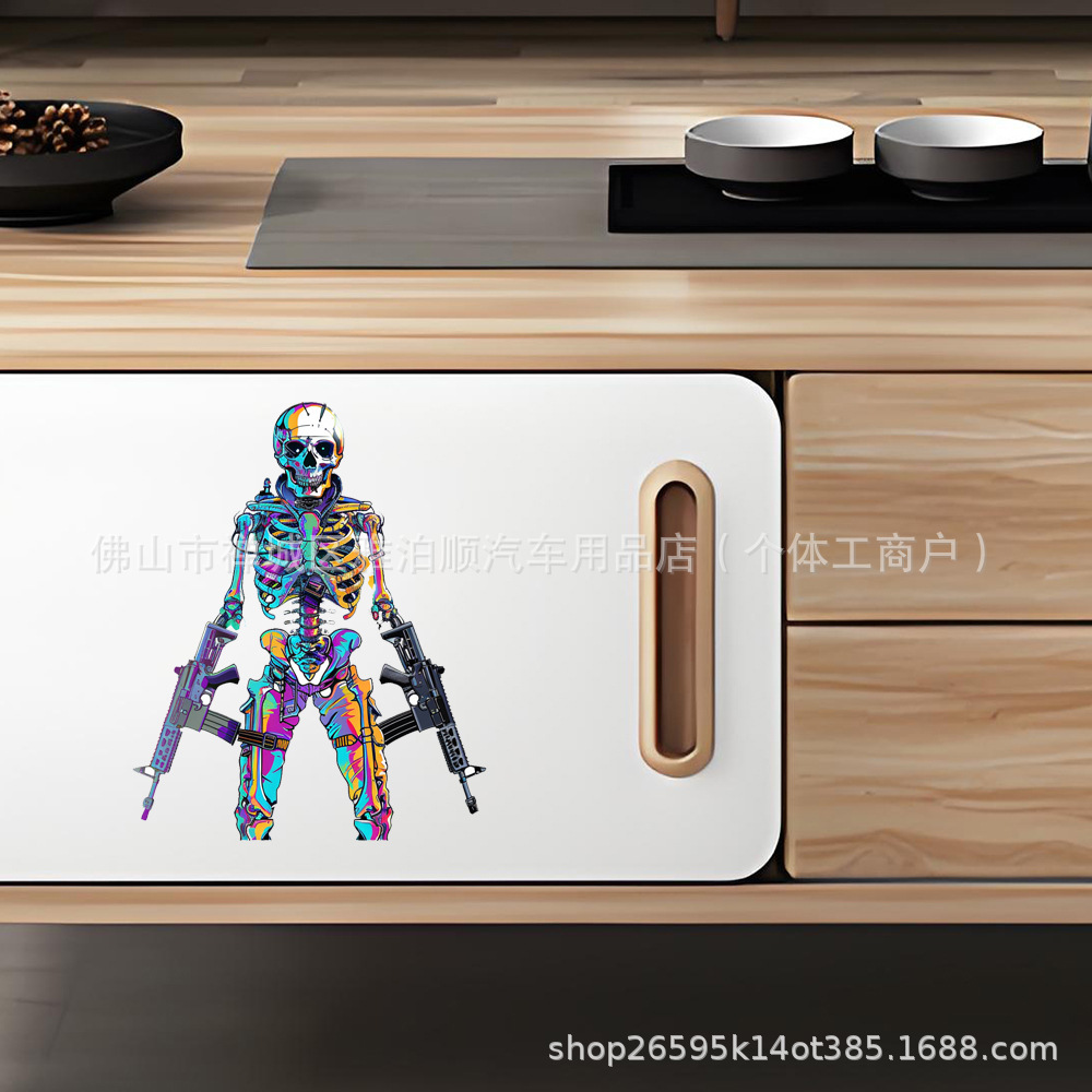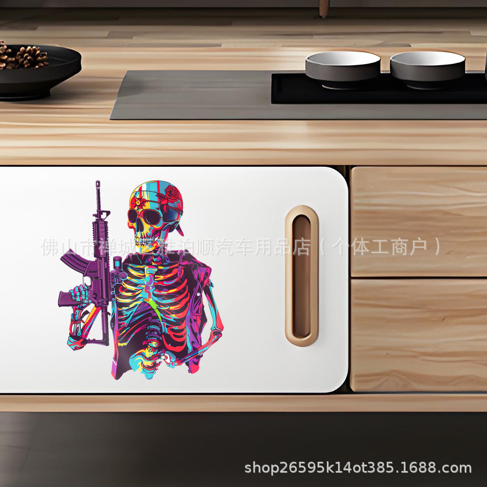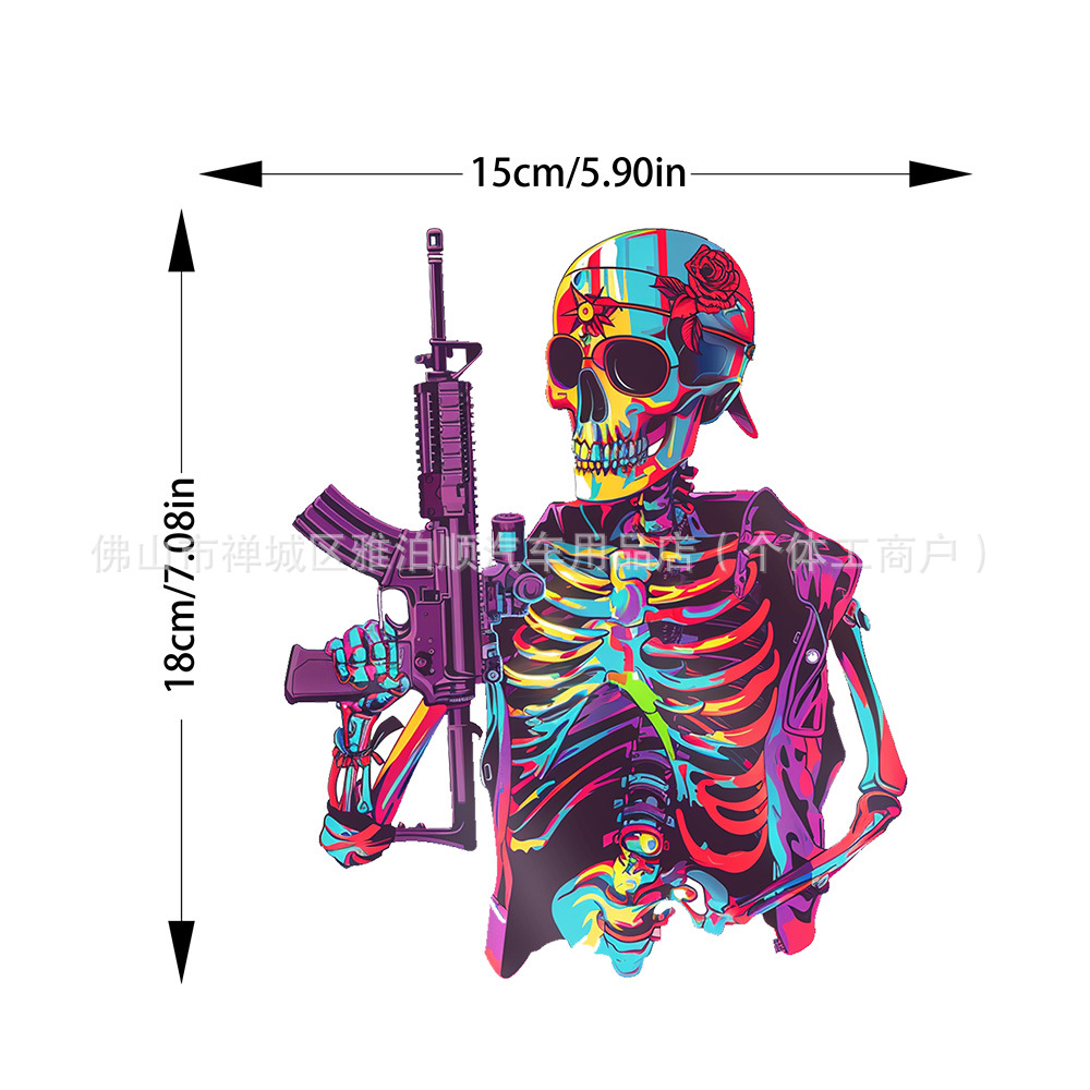 대외 무역 국경 간 제조 업체 도매 크리 에이 티브 맞춤형 자동차 스티커 만화 해골 자동차 스티커 반사 자동차 스티커