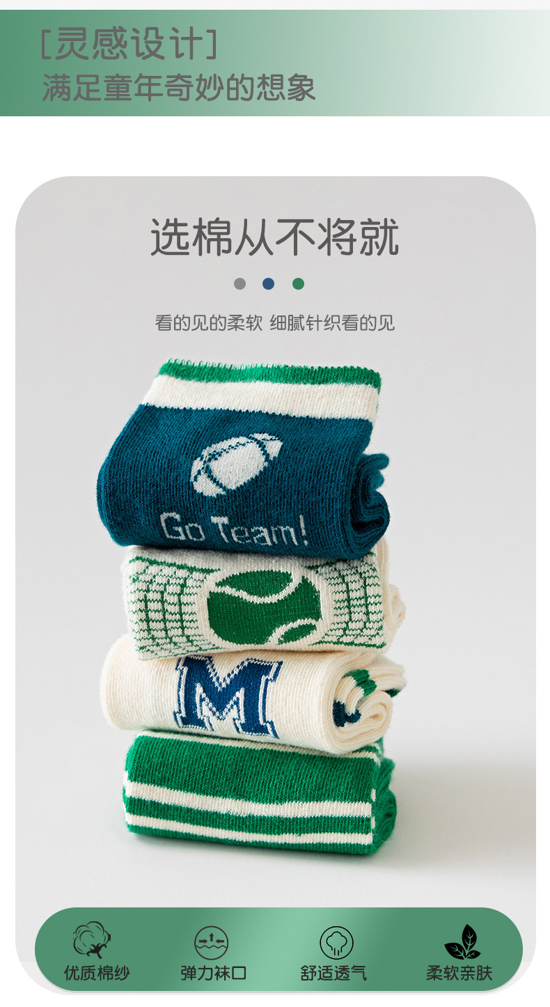 minliu儿童袜子绿色潮流运动袜男女童中筒袜少年字母潮袜秋季棉袜