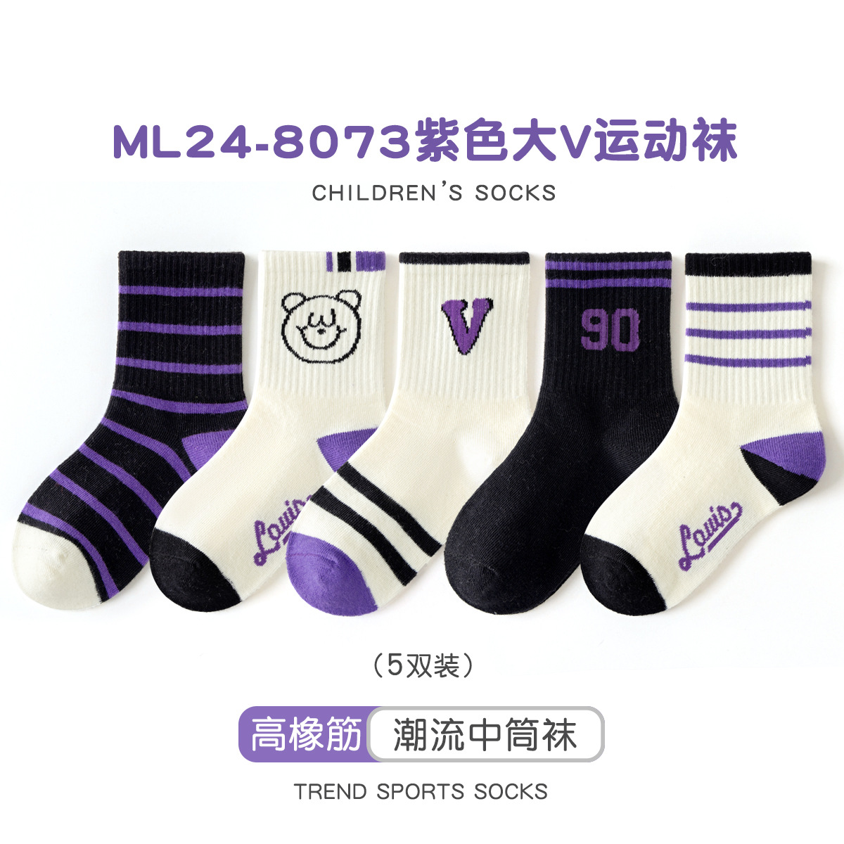 • ML24-8073 보라색 큰 V 스포츠 양말